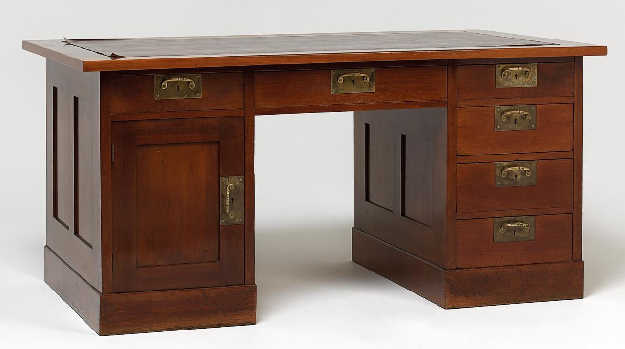 The ‘Chippendale’ chairs and the stamped-leather covered chairs Loos supplied to the Langers came from Friedrich Otto Schmidt, a major Vienna interior decorator.31Established by Carl Friedrich Schmidt (1824–1894) in 1853 as Tapeten-Niederlage ‘F. Schmidt & Sugg’ and claiming to have the ‘largest choice of the newest, most elegant and tasteful wallpapers and decoration from the finest French and German factories’. Schmidt’s sons continued the firm and, trading as Friedrich Otto Schmidt, it became one of the most successful interior design firms of the era in Vienna (Ottillinger, p. 71). F. O. Schmidt was also closely involved with the reform of the applied arts that were being promoted by the Austrian Museum for Art and Industry. The firm exhibited interiors at the museum in 1871 and at the 1873 Vienna World Fair, where they were praised by Jakob von Falke.32Ottillinger, p. 72. Not that F. O. Schmidt’s interiors espoused modernism: like any mainstream decorator of the period, the firm worked primarily in a variety of historical styles, including the popular Rococo and Louis XVI styles. Loos’s connection with F. O. Schmidt developed so that by 1901 when the firm exhibited a modern bedroom at the Museum’s winter exhibition, it was described as ‘à la Loos’. A reviewer, commenting on the comfort and practicality of this interior, neatly summed up Loos’s approach to design: ‘Why should the door of the electric tramcar have a more practical grip than the door of a study’.33Quoted in Ottillinger, p. 77. F. O. Schmidt did not restrict their copies of English furniture to the eighteenth century, and the ‘English’ desk chair (fig. 6) supplied to the Langers, and now in the NGV, was copied from a Collison & Lock chair from the 1880s.34Ottillinger, p. 40, no. 27, illustrates another example of this chair. She also illustrates an example from the F. O. Schmidt catalogue, comparing it with an image of an original Collison & Lock version (Ottillinger, p. 133, nos 172, 173). All four chairs appear identical.