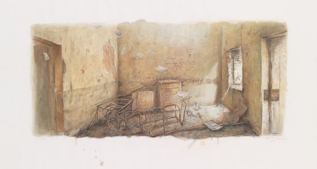 The defensive figure in Memphis Neagle’s Lost reflects intense desperation and the experience of being entrapped and isolated. If you prick us do we not bleed?, 2019, exhibits Lizzie Hall’s passion for literature. Her pen drawing depicts Shylock, Shakespeare’s chief antagonist from The Merchant of Venice. As Hall says, ‘I want my portrait’s raw, unleashed emotion expressed across his [Shylock’s] haggard features to almost confront my audience, probing sympathy for his plight’.