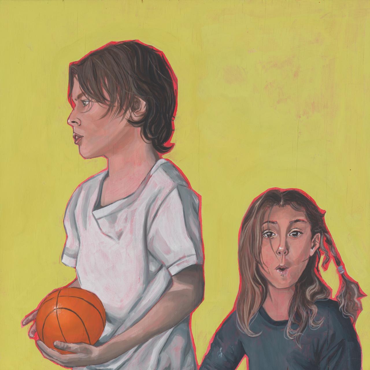 In Home sick, Lily Cockram depicts the tension between siblings stuck at home: one railing against confinement and resenting the loss of freedoms, while the other seeks opportunities for creative fun.