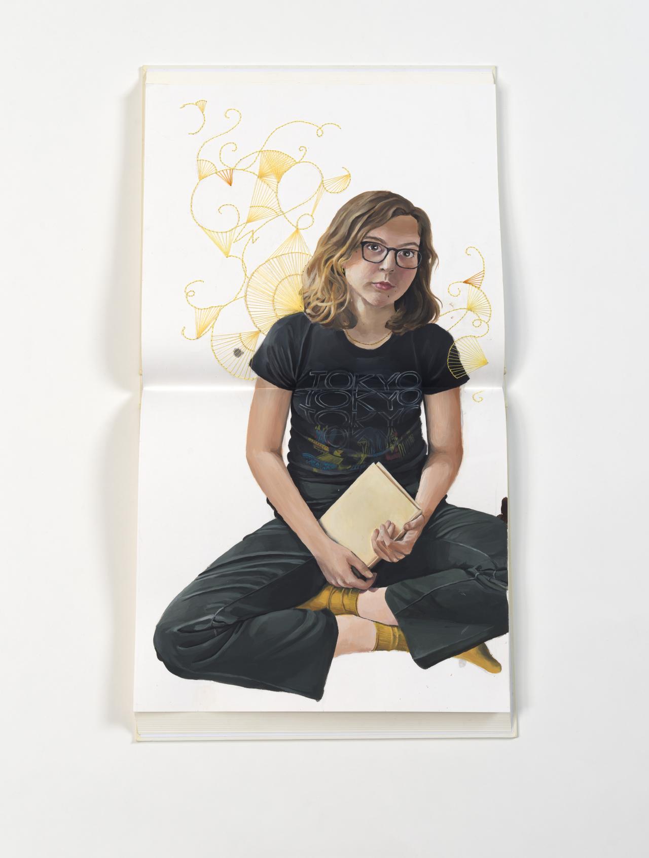 Playing on the phrase ‘you can’t judge a book by its cover’, Milla Freeman’s delicate portraits, All that we cannot see, painted on linen book covers, explore the public and private selves of her friends, suggesting their more elusive aspects through the sections left unpainted.