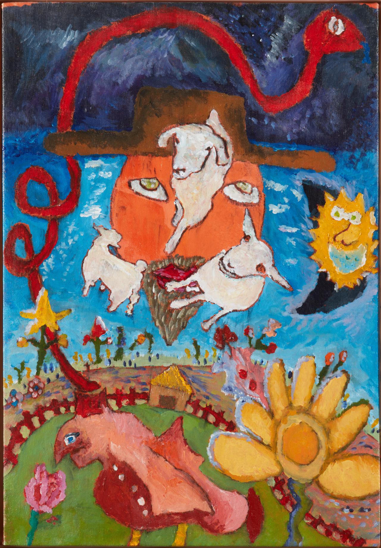 The kaleidoscopic range of paintings in Top Arts 2024 testifies to the enduring popularity of the medium. Some artists enjoy the expressive range of the art form, while others relish its physical qualities. With a contrasting palette of ominous blues and rich flesh tones, Ellisa Rutledge creates an image both luxurious and alarming. Janelle Moss’s Victorian land and seascapes are so thick with paint that they become sculptural, and Gwyneth op’t Hoog’s self-portrait challenges historical depictions of women in art with the use of rough impasto paint to highlight imperfection.