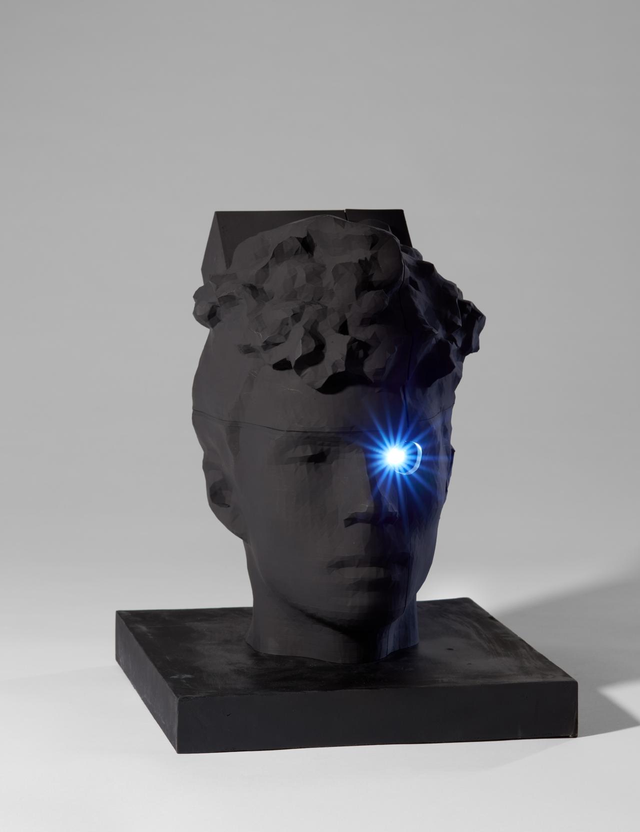 Many of this year’s exhibitors examine the complexities of perception. Chaaya Sharma’s meticulous coloured-pencil drawings express her interest in how our perception of the physical world is distorted by refractions of light. Mataso Chung’s 3D-printed head explores the difference between perception and interpretation: an animation projected from its eye shows an objective reality, while a smaller screen in the back of the head reveals a skewed interpretation.