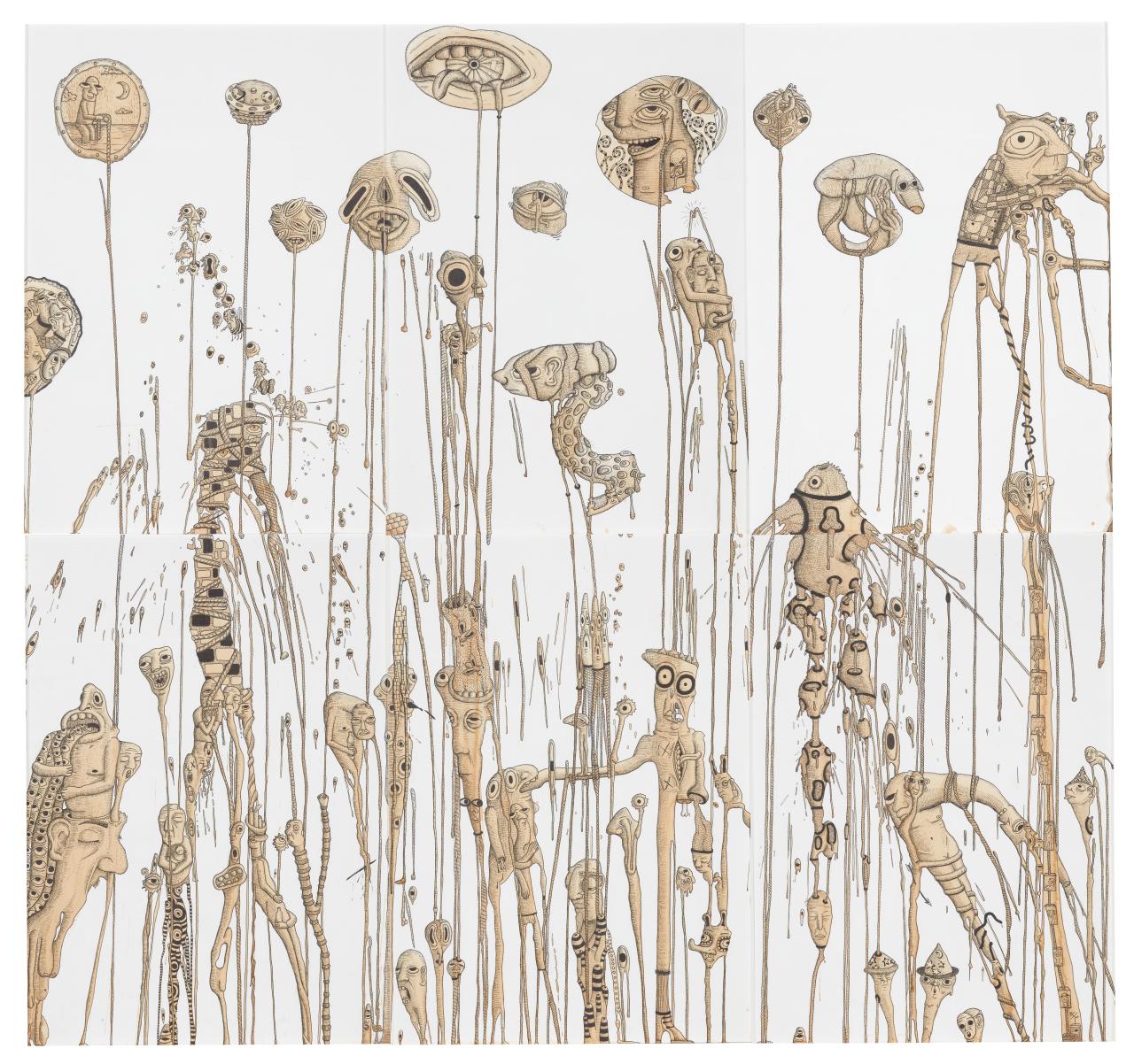 These possibilities are explored by exhibitors as they inhabit the space between chaos and order. Timothy Yap navigates the narrow path between spontaneity and planning; accident and intention, to produce a series of transformed ceramic vessels imbued with the complexities of emotional expression. Jasper Cali takes a Surrealist approach, using coffee drippings to create linking characters that reflect the disorder of human emotions.