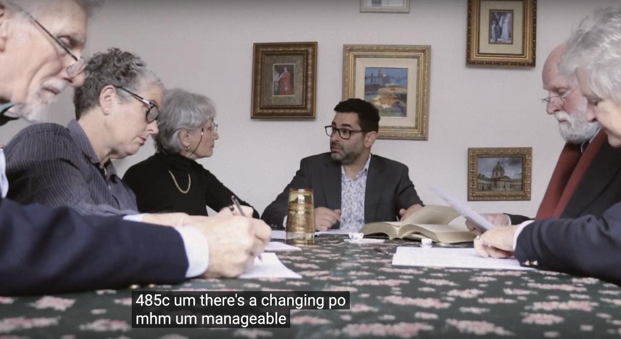 Others ask what we might do when chaos overwhelms us and meaning breaks down. Hector Hennessey leans on humour, inventing a mascot for nihilism who walks the street at night ruminating on its feelings. In Alia Ferdowsian’s short film, language itself degrades into a chaotic yet strangely recognisable gibberish.