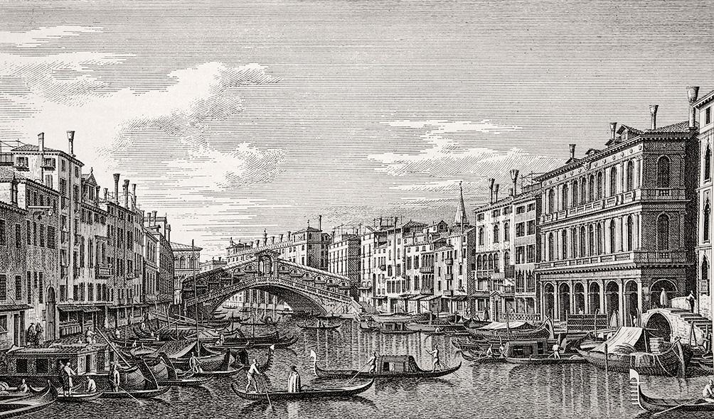 19 The sky proportions were determined by taking a measurement from the nearer flagpole at the top of the Fondaco dei Tedeschi to the top of the canvas and measuring it against the height of the painting. The other paintings measured this way were the versions in the Wallace Collection, the ex-Trotti Collection, the Visentini drawing and the Musée Jacquemart-André. The version sold at Sotheby’s, London, in 1997 (formerly in the Bisgood Collection) has a similar proportion of sky to the Melbourne Grand Canal view (see n. 22 below).