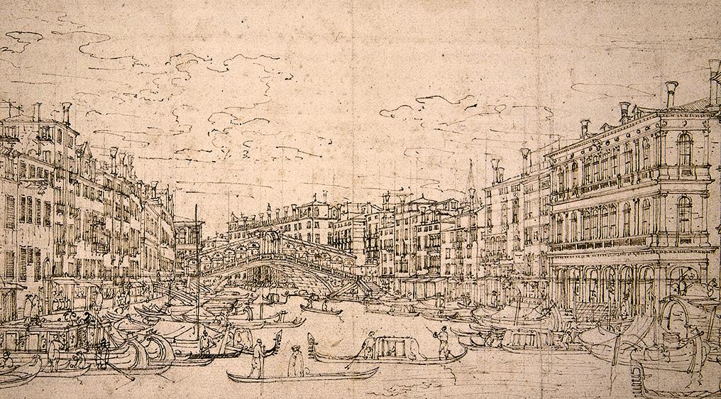 Bellotto’s connection with Canaletto’s original has been established by two preparatory drawings that closely replicate the Trotti and Jacquemart-André versions of this view, right down to the positioning of the boats on the Grand Canal (fig. 6).16 One of these preparatory drawings, in the Rijksmuseum in Amsterdam, was identified by Stefan Kozakiewicz in 1972, and a nearly identical drawing, thought to be slightly earlier, was identified by Kowalczyk and auctioned at Christie’s in London on 4 July 1995. It is now in a private collection. Kowalczyk has dated both drawings to 1740. Bozena Anna Kowalczyk, in an article written in 1996, anticipated the existence of a version painted by Bellotto of this view based on these two preparatory drawings.17 See Kowalczyk, Arte Veneta, 48, 1996, pp. 87–9. Curious about the closeness of Bellotto’s drawings to the Jacquemart-André version, she examined the Paris painting, datable to around 1740, and found it was attributable not to Bellotto but to Canaletto, leaving open the idea that there must yet be a Bellotto version in existence.18 The present author first discussed the NGV painting with Bozena Anna Kowalczyk in March 2005. She has since confirmed the attribution of the view to Bellotto: ‘I am completely happy to confirm the notion of Bellotto’s authorship also of the view of the Grand Canal with the Palazzo Dolfin-Manin’ (trans.). Email message to the author, Apr. 2006. NGV curatorial files. See also Kowalczyk (ed.), Turin, 2008, p. 68.