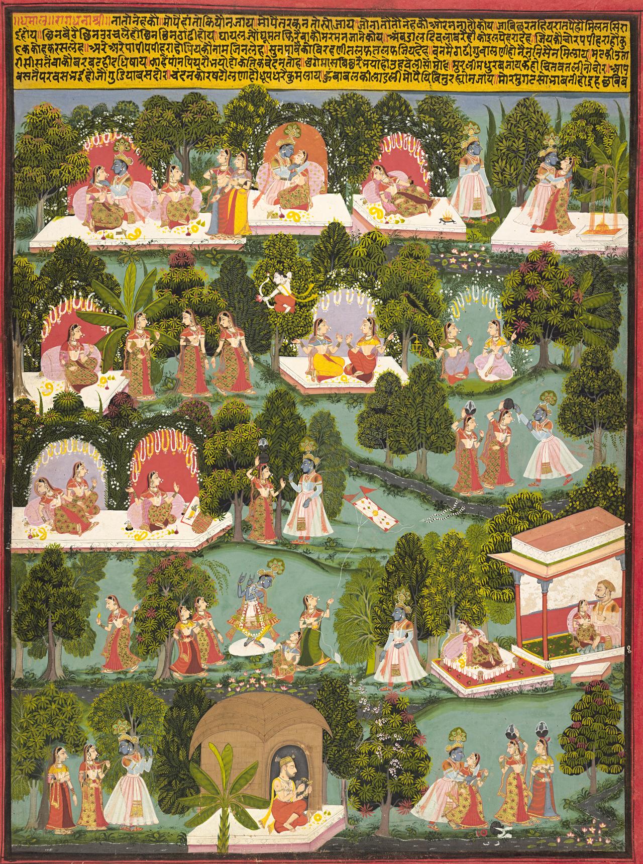 20 Topsfield, Paintings from Rajasthan, no. 62, cf. e.g. W. Spink, Krishnamandala, Ann Arbor, 1971, fig. 104 and other illus., and illus. in K. Vatsyayan, The Dance in Indian Painting, New Delhi, 1982, e.g. figs 119, 120, etc.