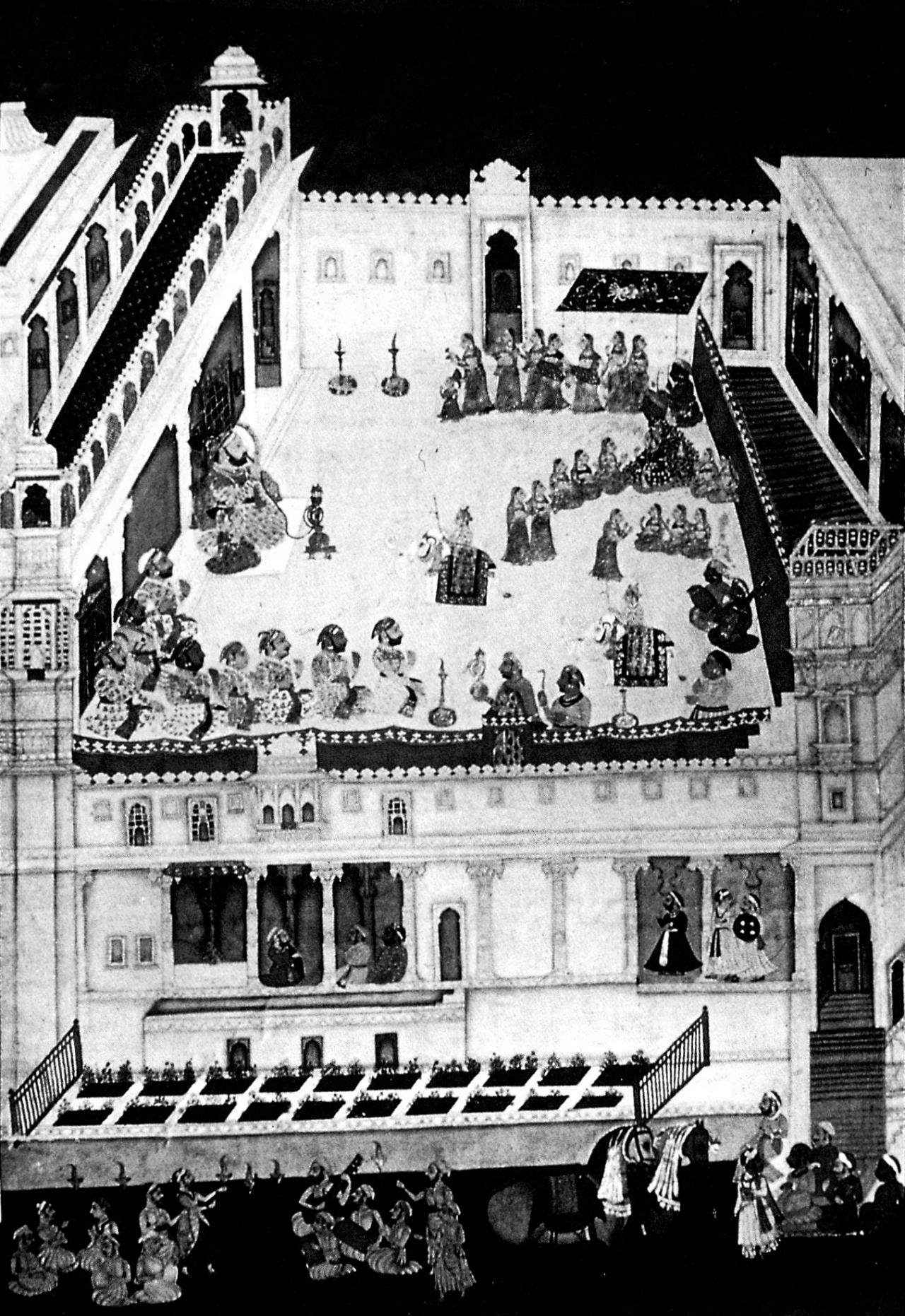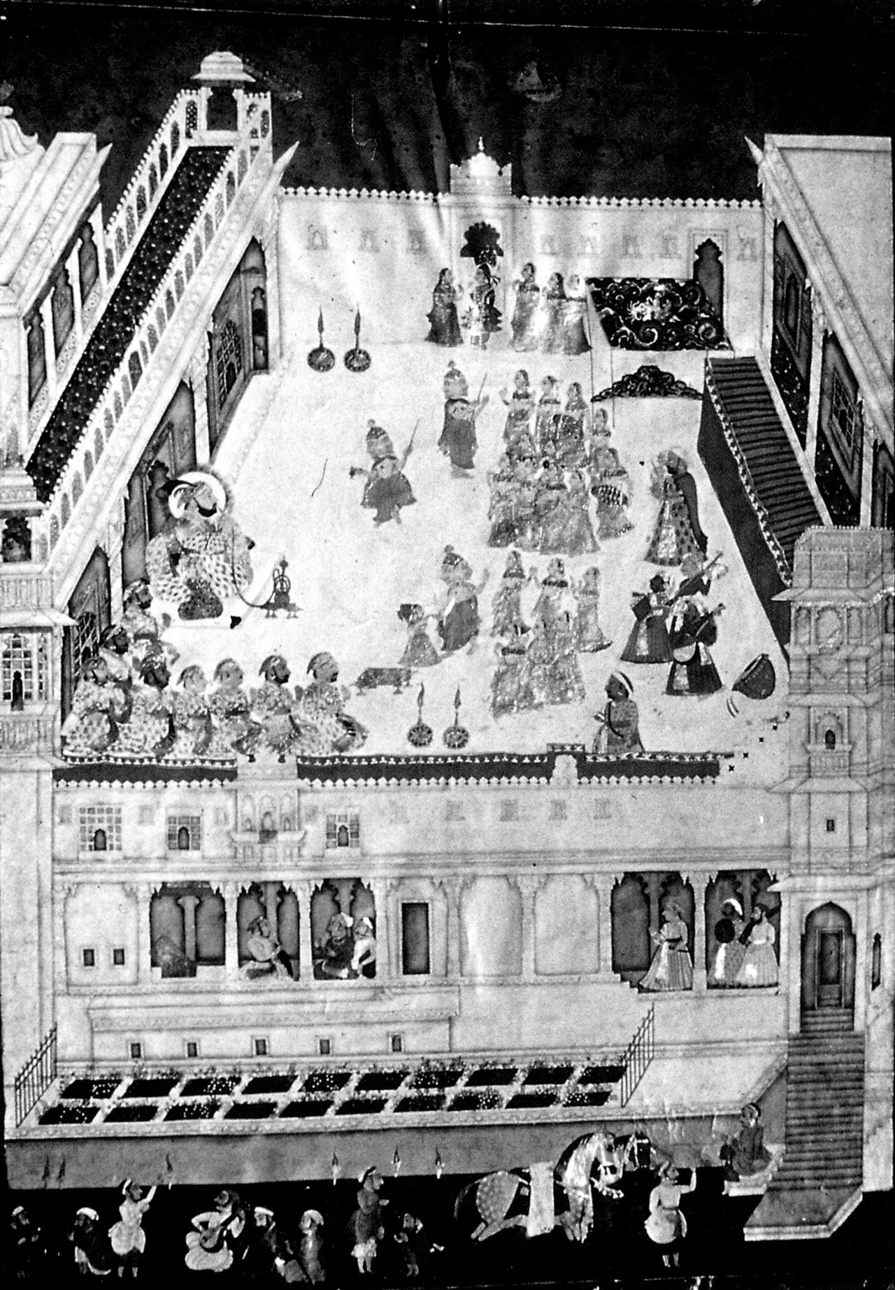 16 A. Topsfield, ‘Scenes of Court Life from Udaipur’, The Ashmolean, no. 8, Autumn 1985, p. 18; G. H. R. Tillotson, The Rajput Palaces, New Haven, 1987, pl. 4.