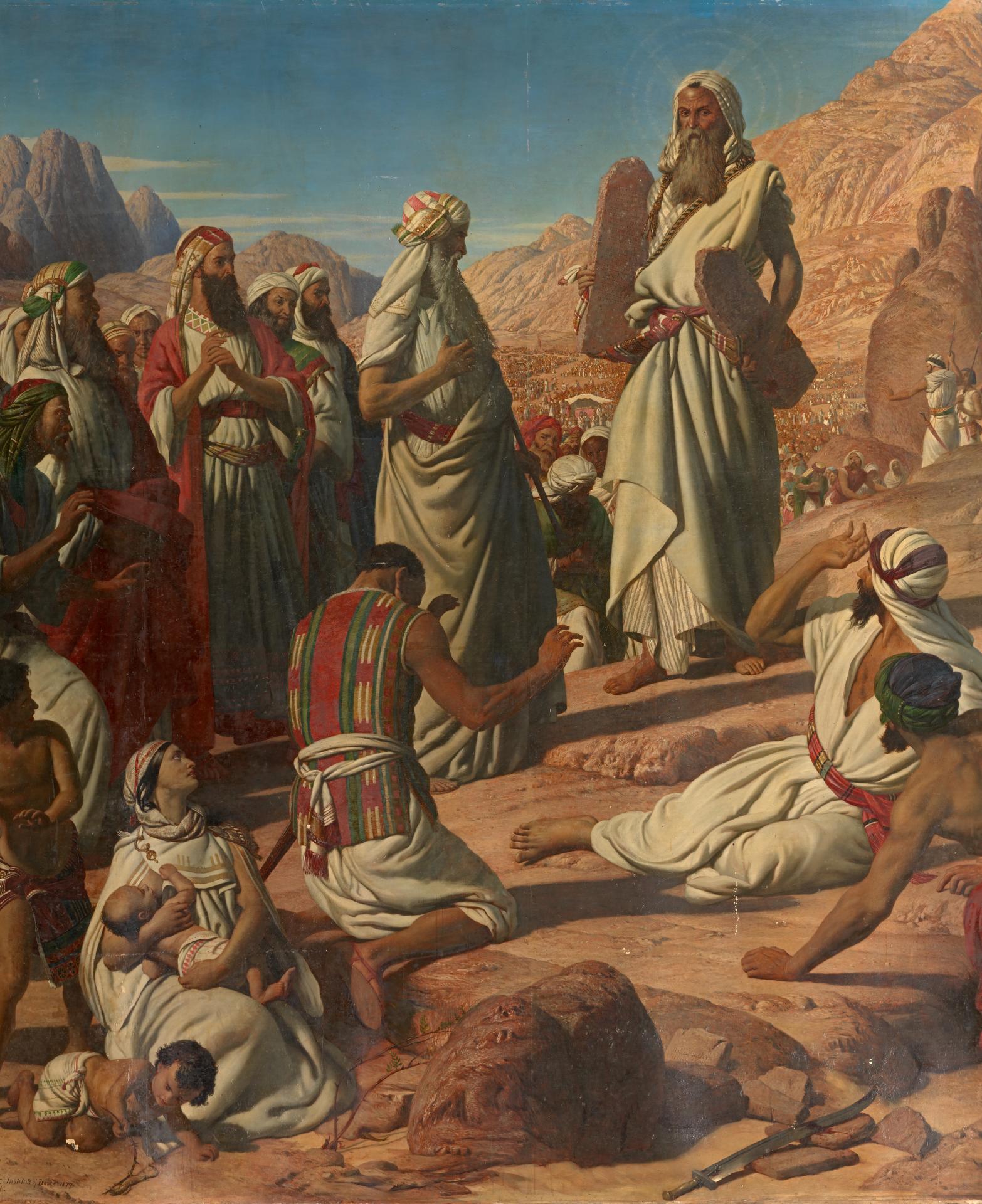 The whole composition is full of reminders of the real purpose of the Mosaic law, its meaning for a nineteenth-century audience, and above all, the character of God. These are mostly conveyed through the figures and their individual reactions to Moses and, through him, the divine.