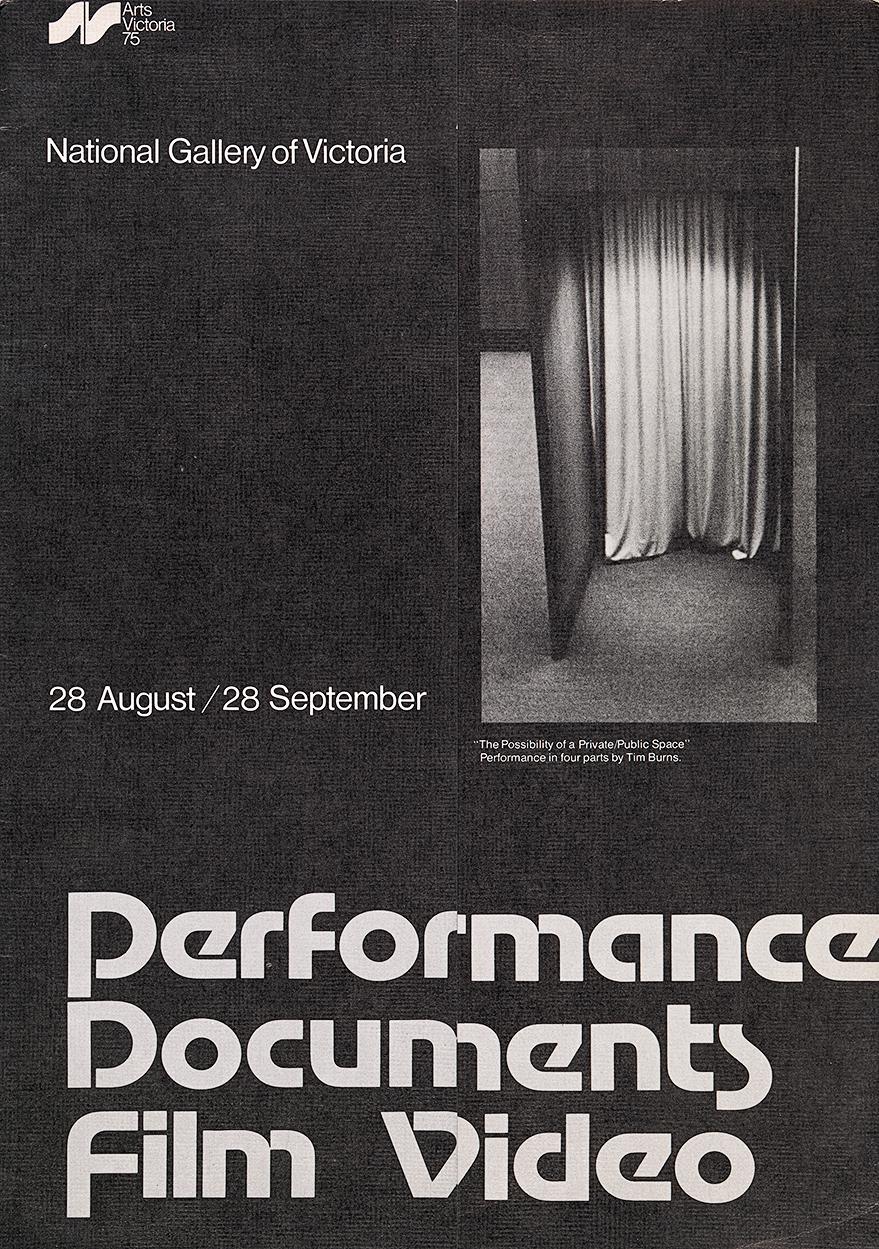 32 Geoff Burke & Jennifer Phipps (curators), Performance, Documents, Film, Video, National Gallery of Victoria, 28 Aug. – 28 Sept. 1975.