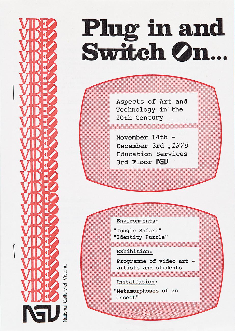 The following year (1978) at the NGV, the Gallery’s Education Services department and external curator Robert Newton, of the Centre for the Study of Educational Communication and Media at La Trobe University, presented Plug in and Switch on (fig. 8), a three-week season of Australian video environments and videotapes.40Plug in and Switch on, National Gallery of Victoria 14 Nov. – 3 Dec. 1978. The show was intended to bring the public to a greater