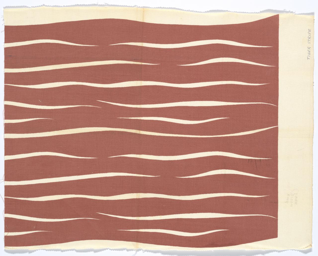 Frances Burke, leading designer of fabrics in Australia, is Burke’s Tiger Stripe design, seen here on curtains in a house designed by Geoffrey Mewton in Black Rock, Melbourne, was one woman where we should have thousands; for Australia is woefully backward in original designing … If only we could find more women willing to blaze the trail for us in this and kindred matters, Australia might become one of the great nations of the far east.11As Housewife, Home and Family noted, page 1, c. 1960.
