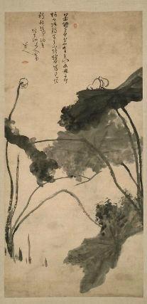 An inscription below the poem indicates that Zhu Da was emulating the late Ming painter Xu Wei (1521–93) who also had a tragic life, evidenced by the fact that in a deranged fit he drove a nail into his own ears and cracked his skull with an axe, whilst on another occasion he stabbed his third wife to death. The Lotus echoes Xu Wei’s ink painting, Flowers in Four Seasons which creates a sombre mood with splashes of black ink and is inscribed with a poem revealing a stinging political criticism: