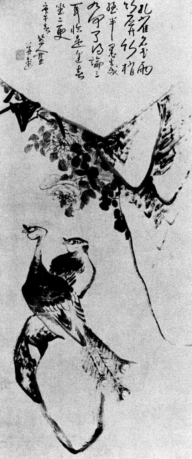 Zhu Da adopts the same biting tone in a poem inscribed on a painting of peacocks and rocks, dated 1690 (fig.3):31 Illustrated in Xie Zhiliu, p1.3.