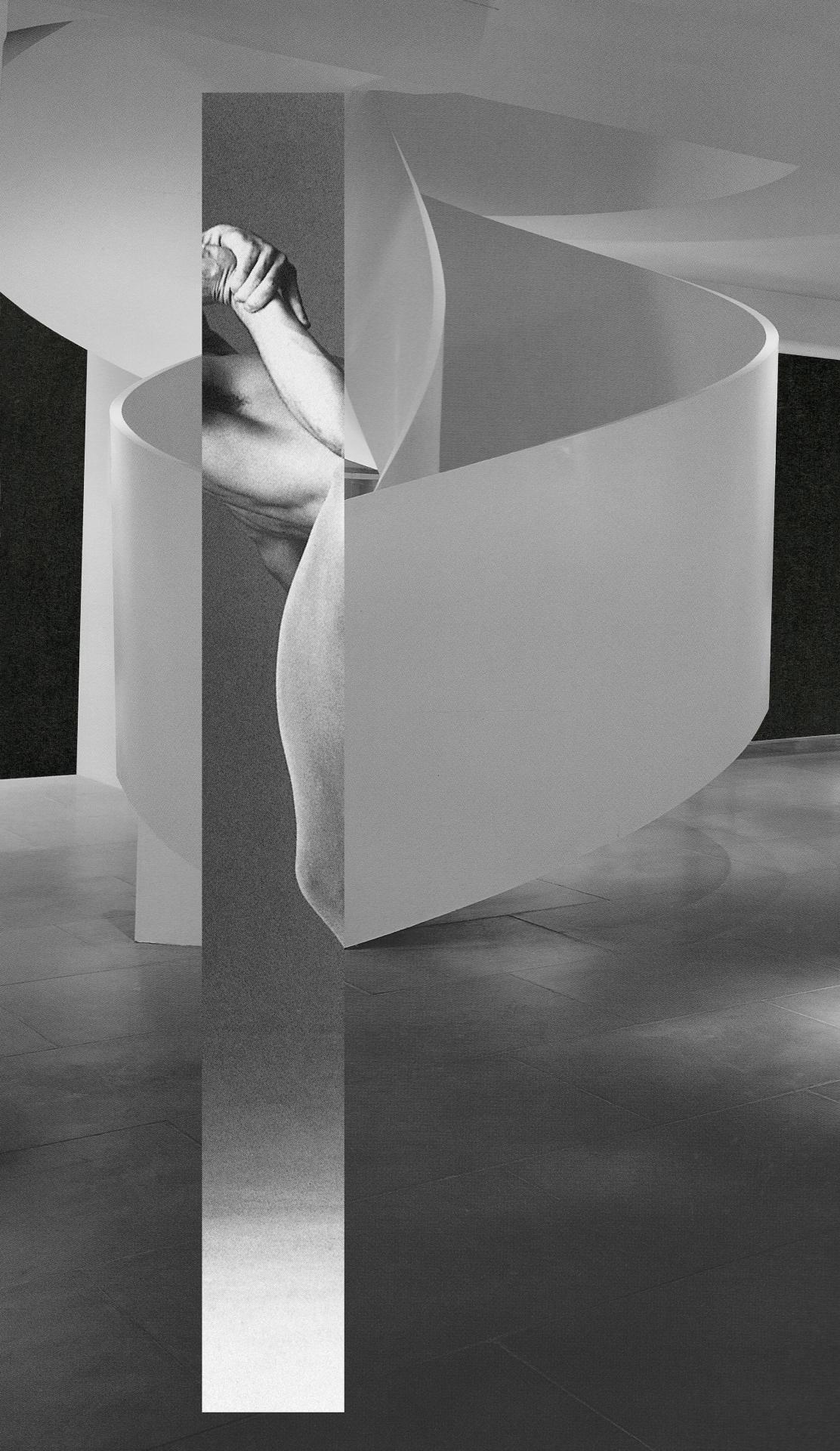 The inversion and collision of figure and landscape reduces the body and its environment to classically architectonic forms, questioning our agency within our environment. My work poises the human form and its built environment as precise equals – the body no longer occupying space and space no longer determining the body, but each existing only in relation to the other, completed by the other.