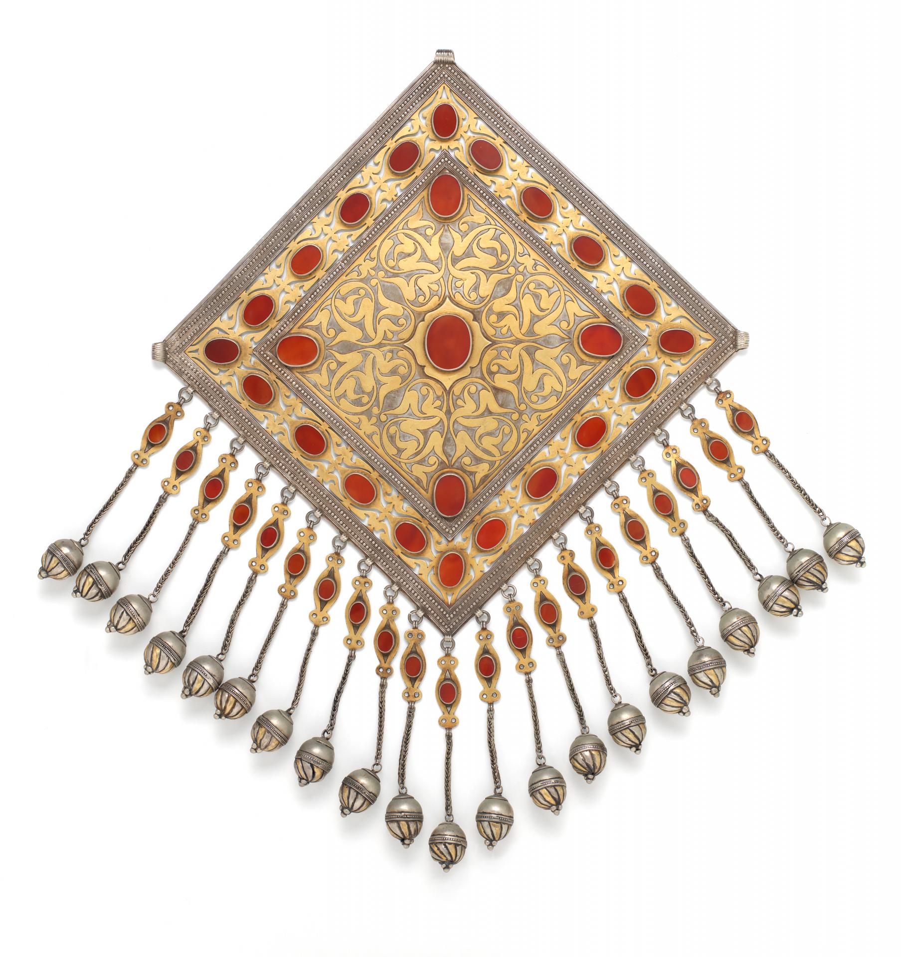 Adorned: Textiles and Jewellery from Central Asia draws on the collection of the National Gallery of Victoria to present a window into the magnificent sartorial traditions of the vast Central Asian region stretching from China in the east to the Caspian Sea in the west, and between Russia in the north and Pakistan in the south. The exhibition, comprising over sixty works, explores textiles and jewellery from Central Asia through the distinctive traditions of two of the largest cultural groups of the region, the Uzbek and Turkmen peoples. Urban Uzbek mercantile communities were based in market towns along the Silk Road, and the nomadic Turkmen peoples lived on the steppes of Central Asia. Their textile skills, including dyeing, weaving and embroidery, and the distinctive styles and motifs of their garments are presented with jewellery from each culture.