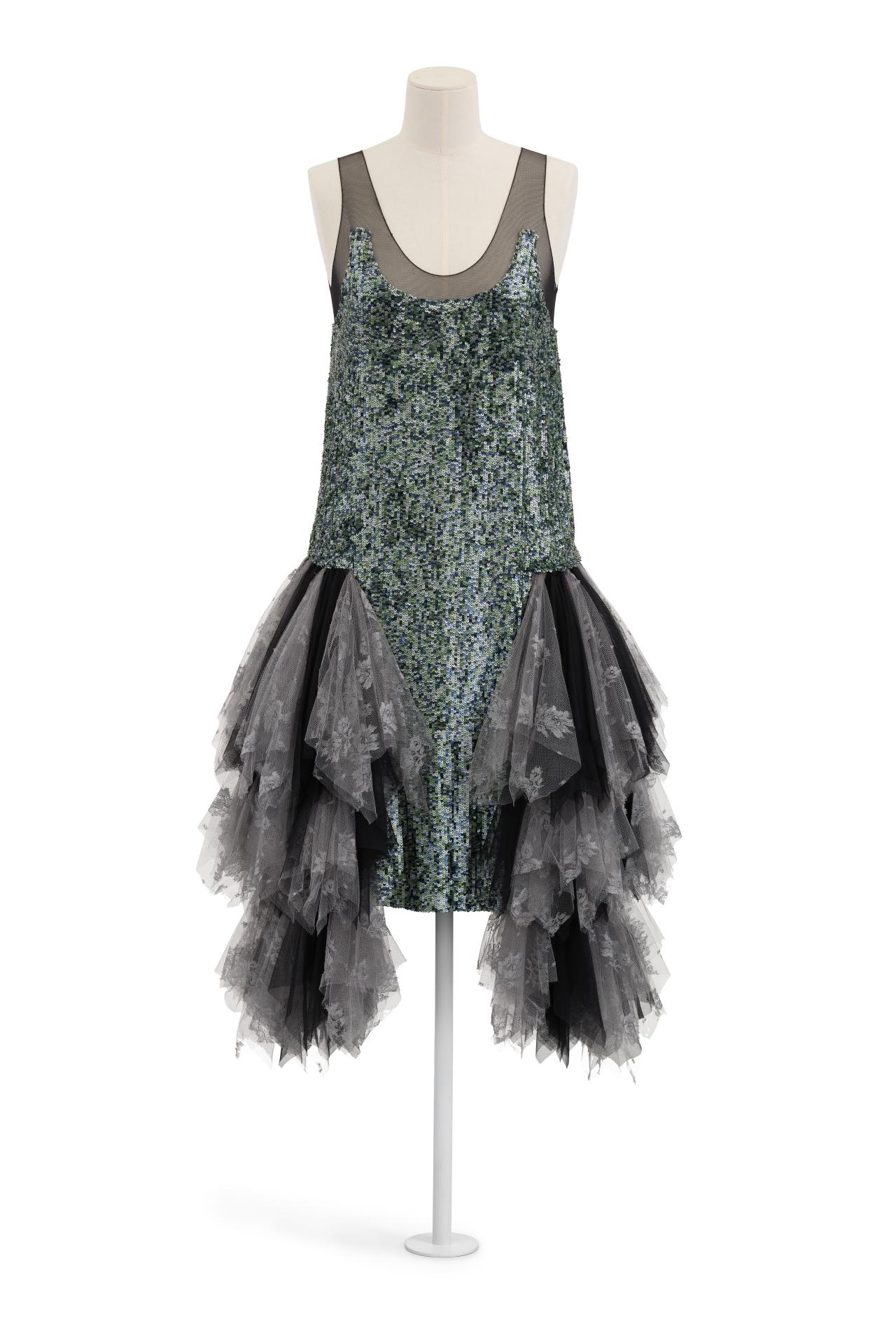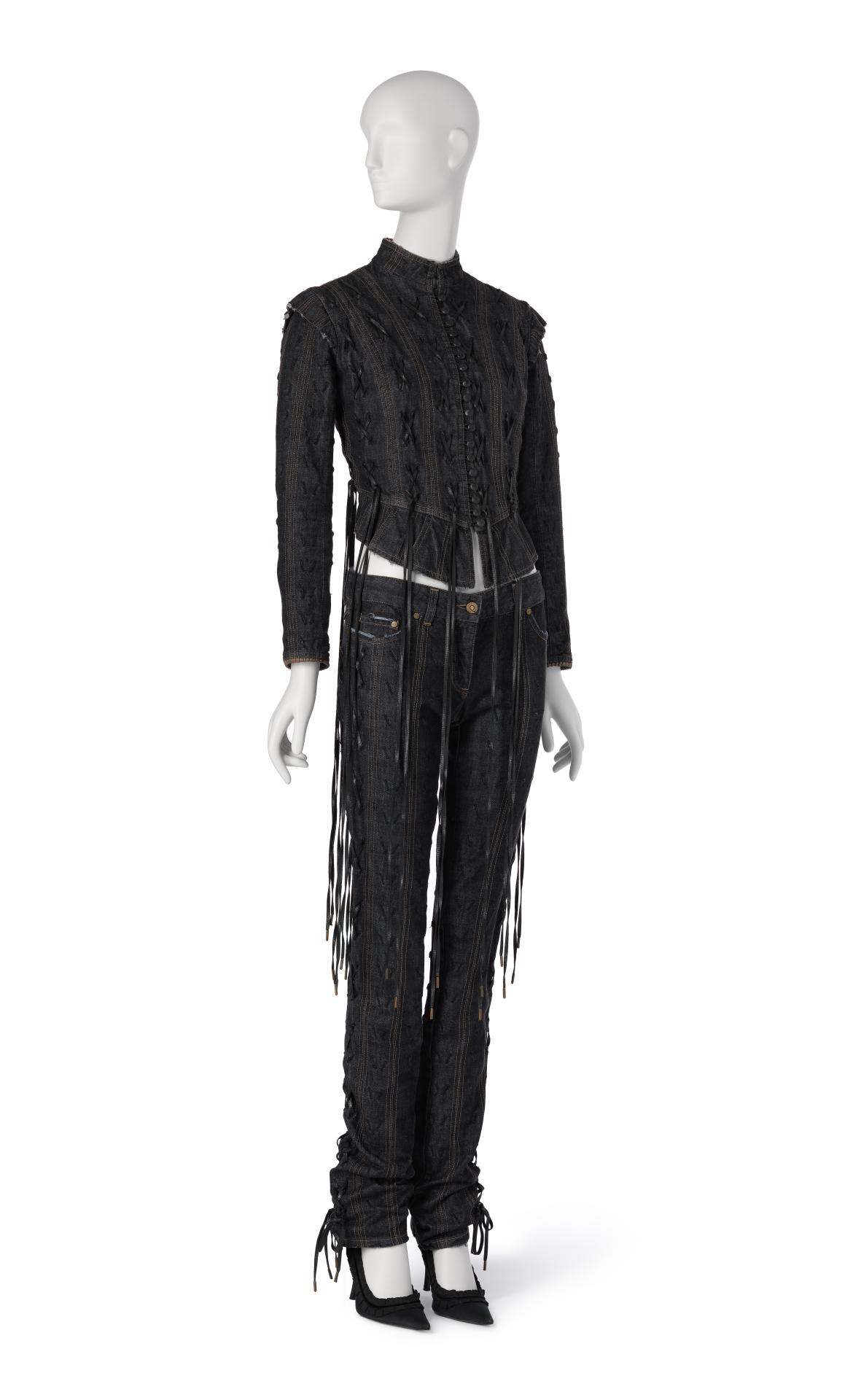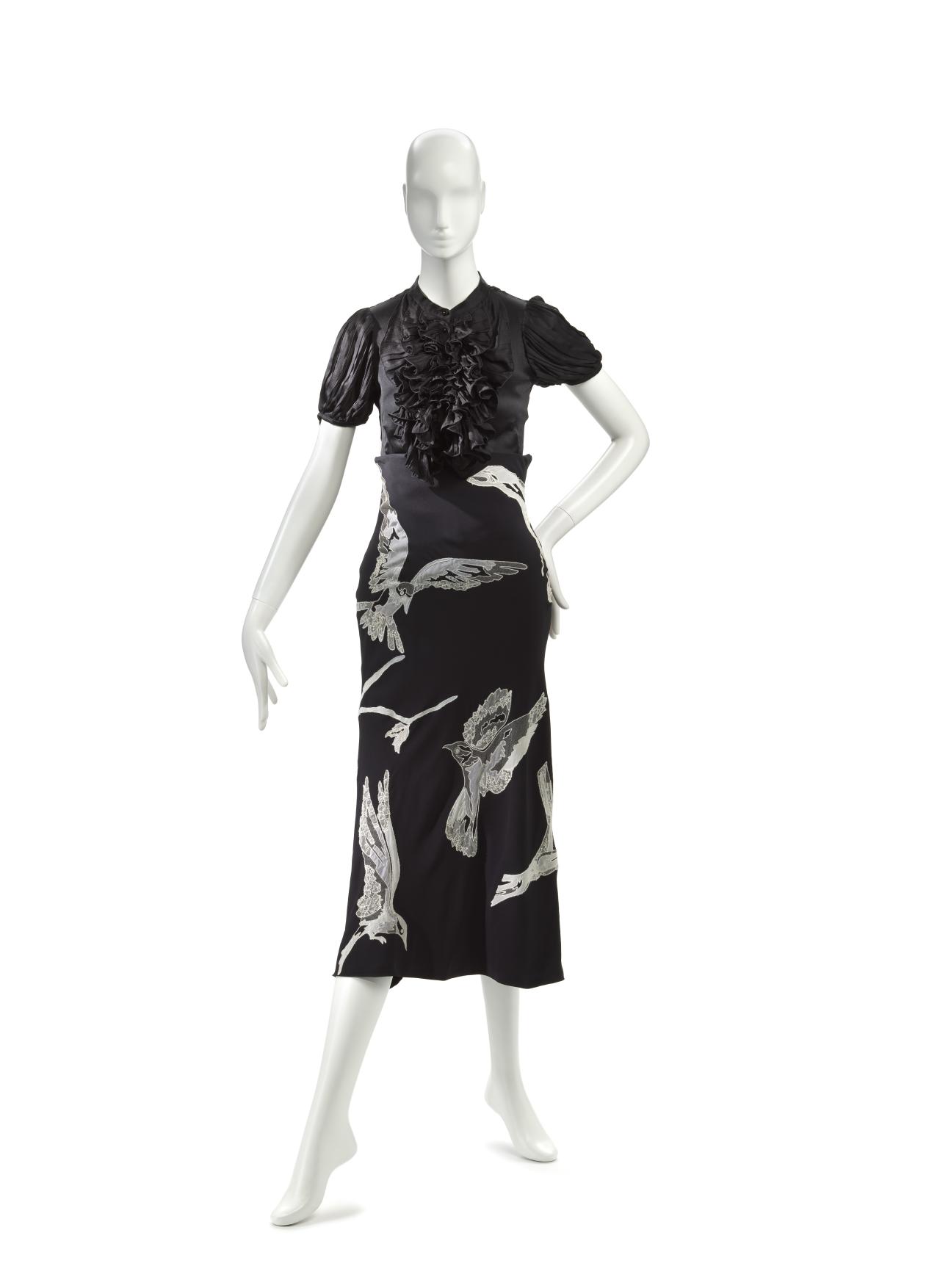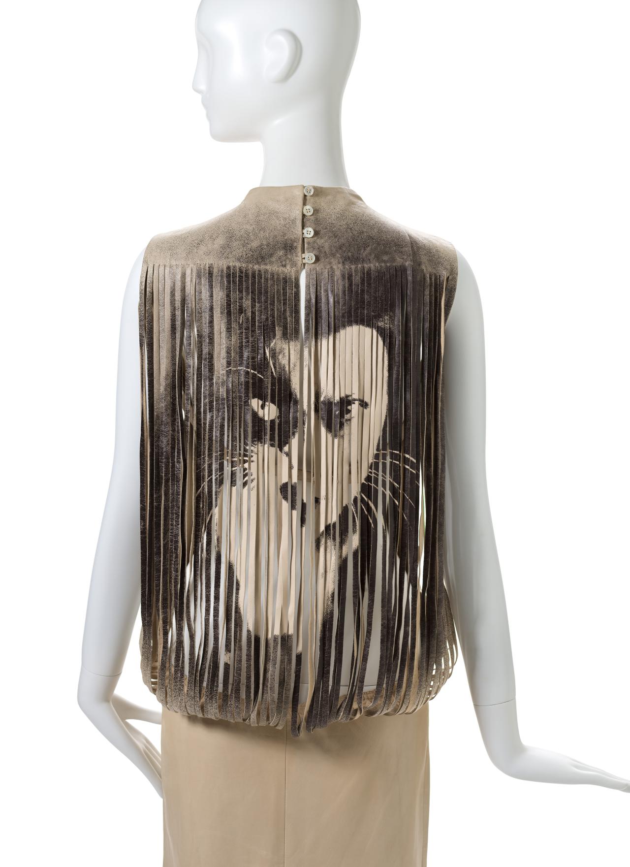 The collection’s posthumously attributed title derives from tweets McQueen posted just before his death (‘Hells Angels + Prolific Demons’) less than one month before the premiere of the collection in Paris on 10 March 2010. The exploration of heavenly and fallen angels has been interpreted as a reflection of McQueen’s mental health struggles. However, conflict, religion and finding meaning in ambiguity were themes that characterised his practice throughout his career.