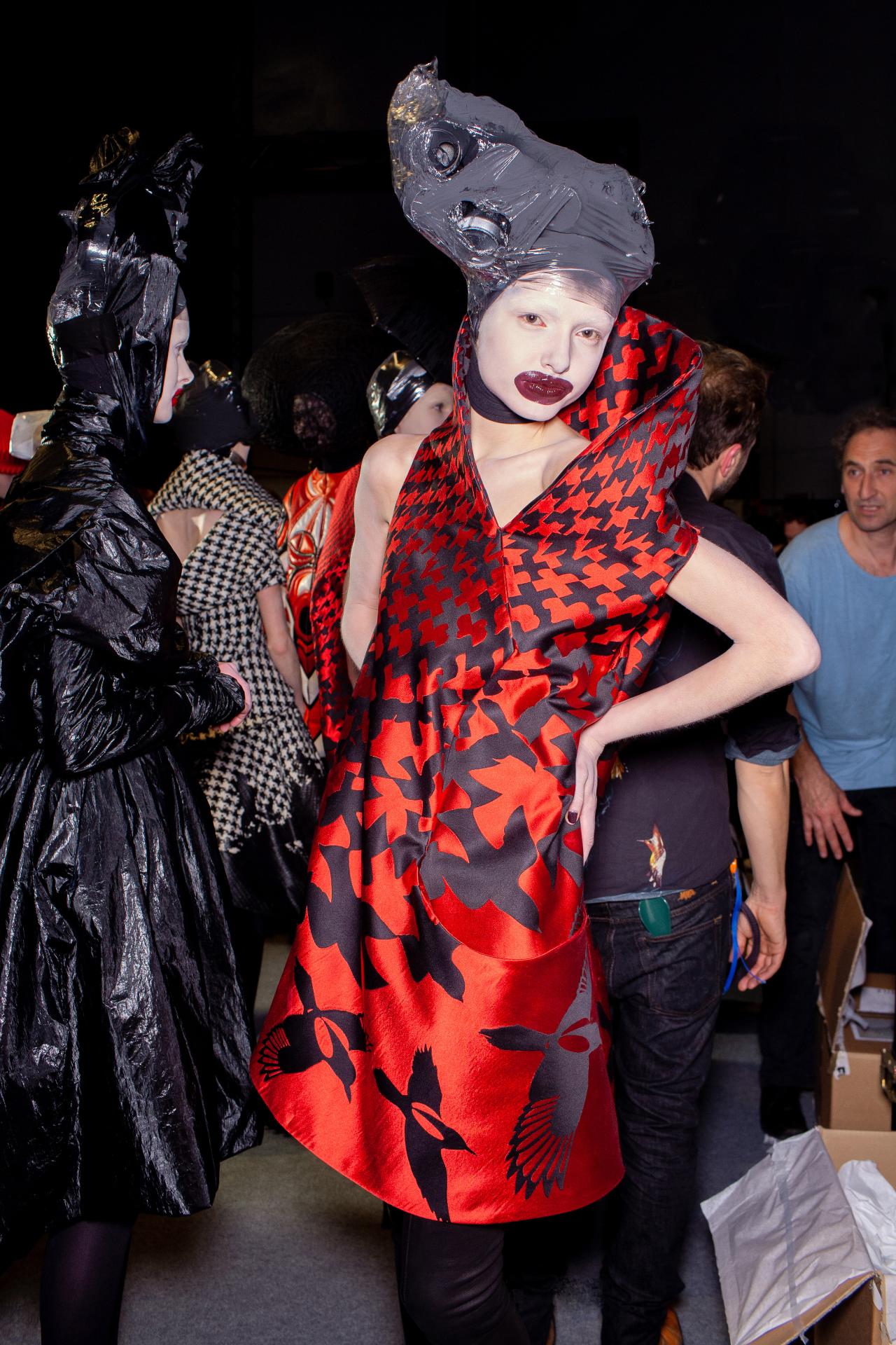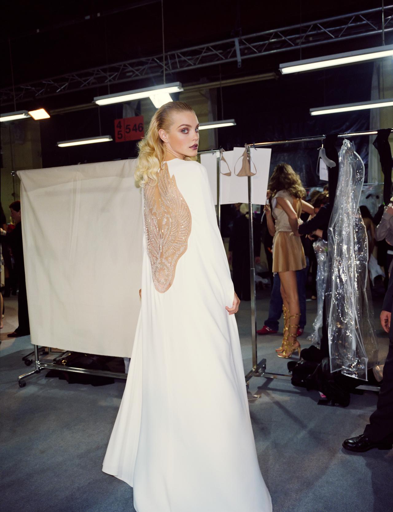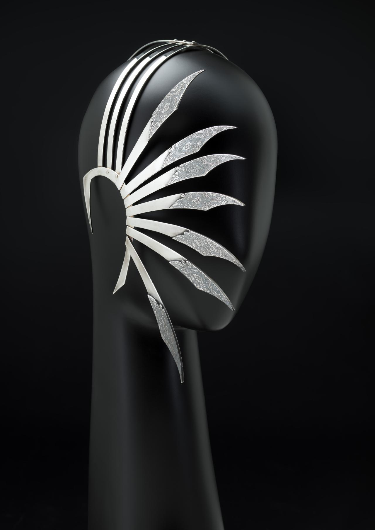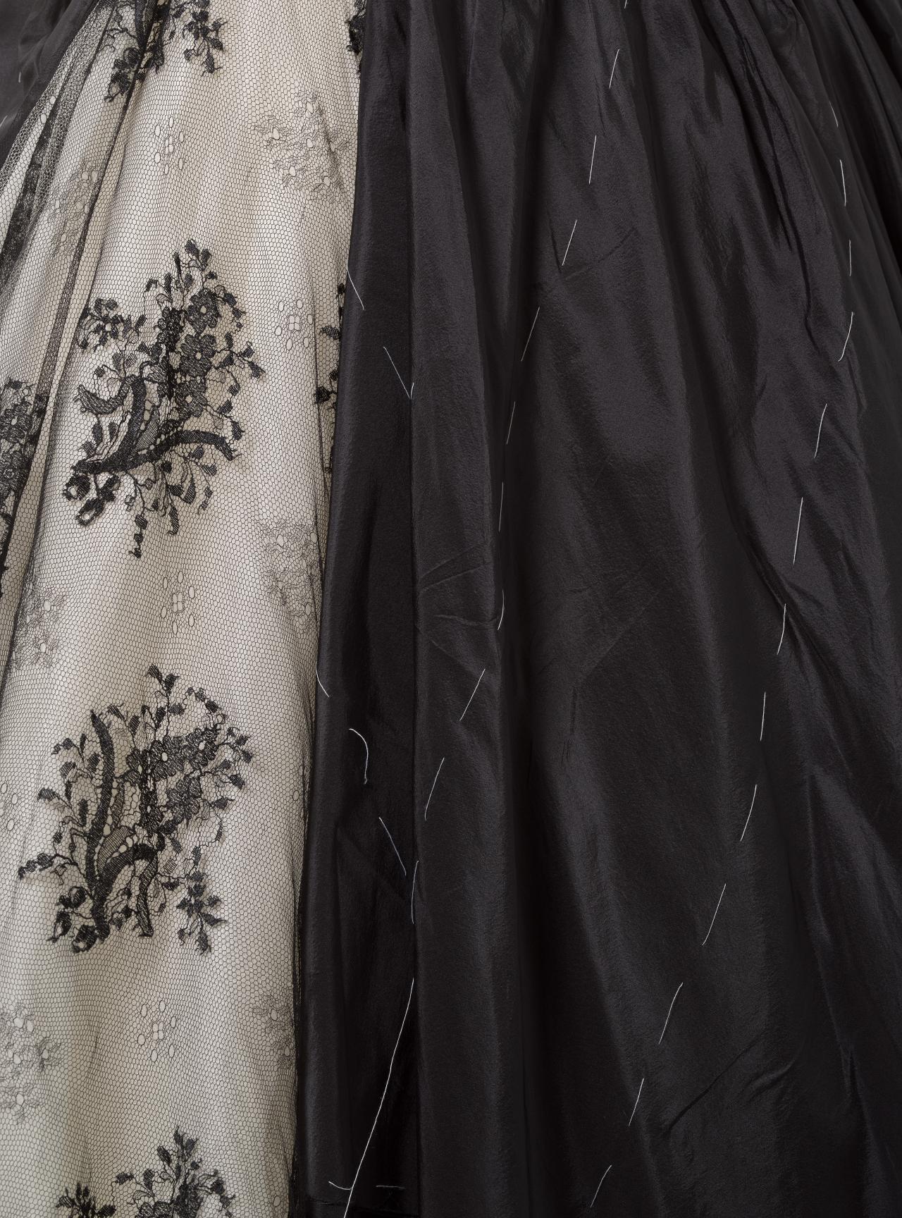 The collection’s posthumously attributed title derives from tweets McQueen posted just before his death (‘Hells Angels + Prolific Demons’) less than one month before the premiere of the collection in Paris on 10 March 2010. The exploration of heavenly and fallen angels has been interpreted as a reflection of McQueen’s mental health struggles. However, conflict, religion and finding meaning in ambiguity were themes that characterised his practice throughout his career.