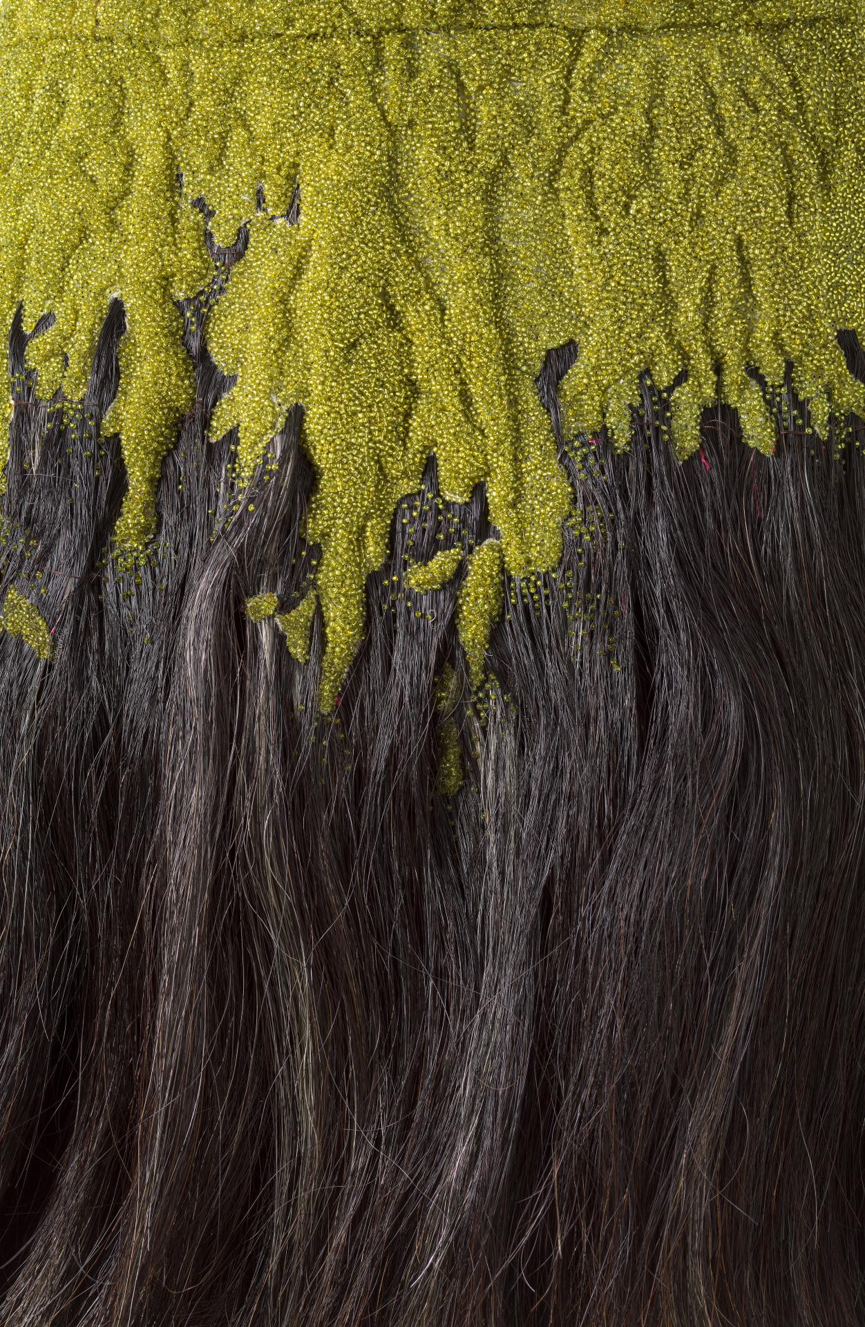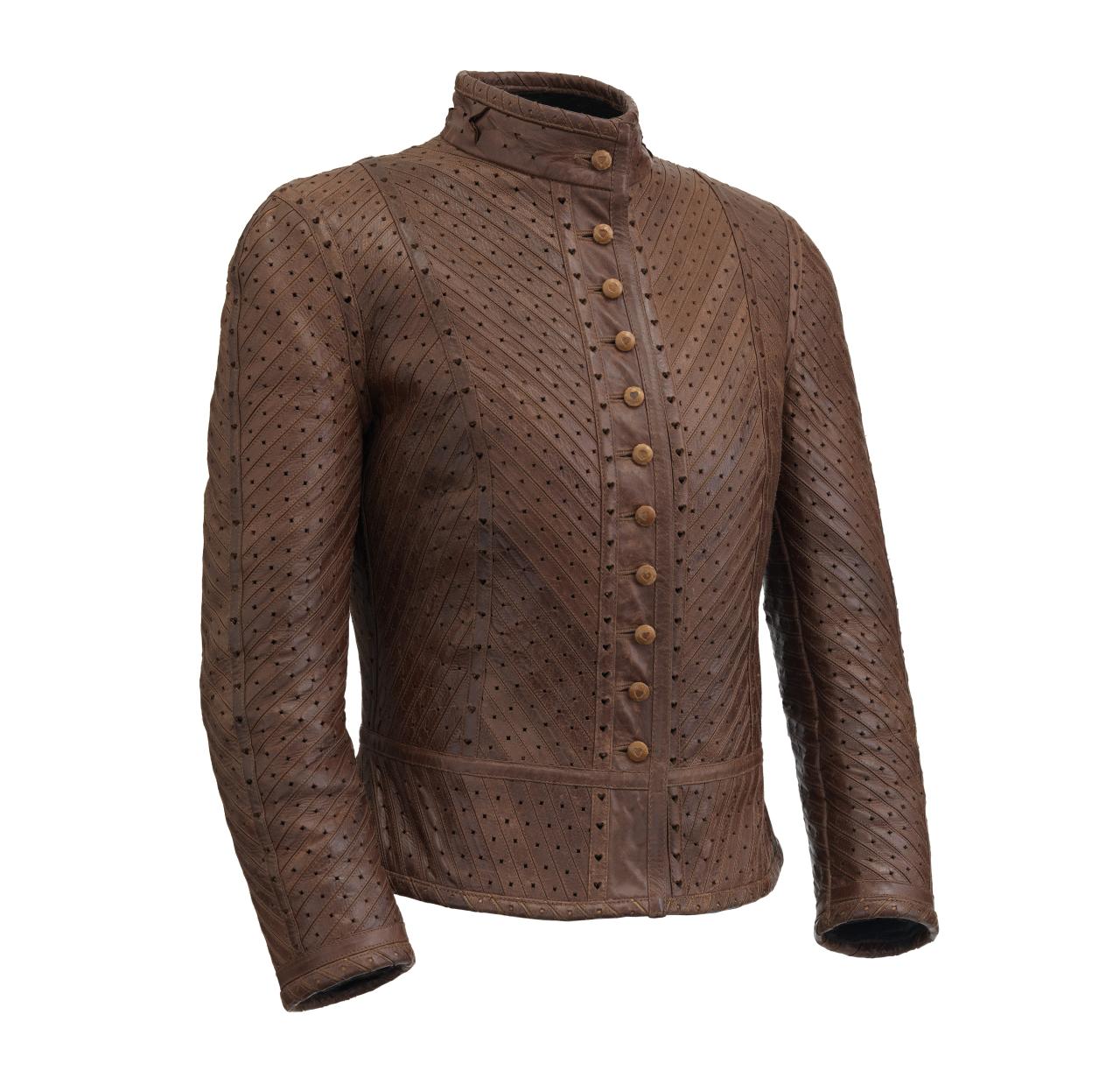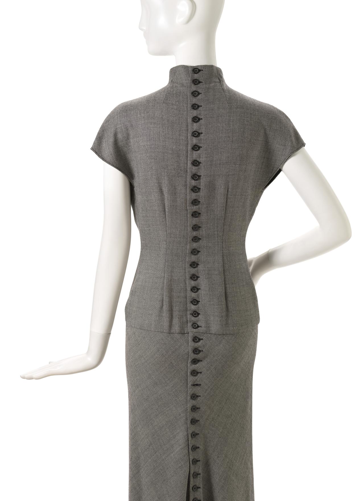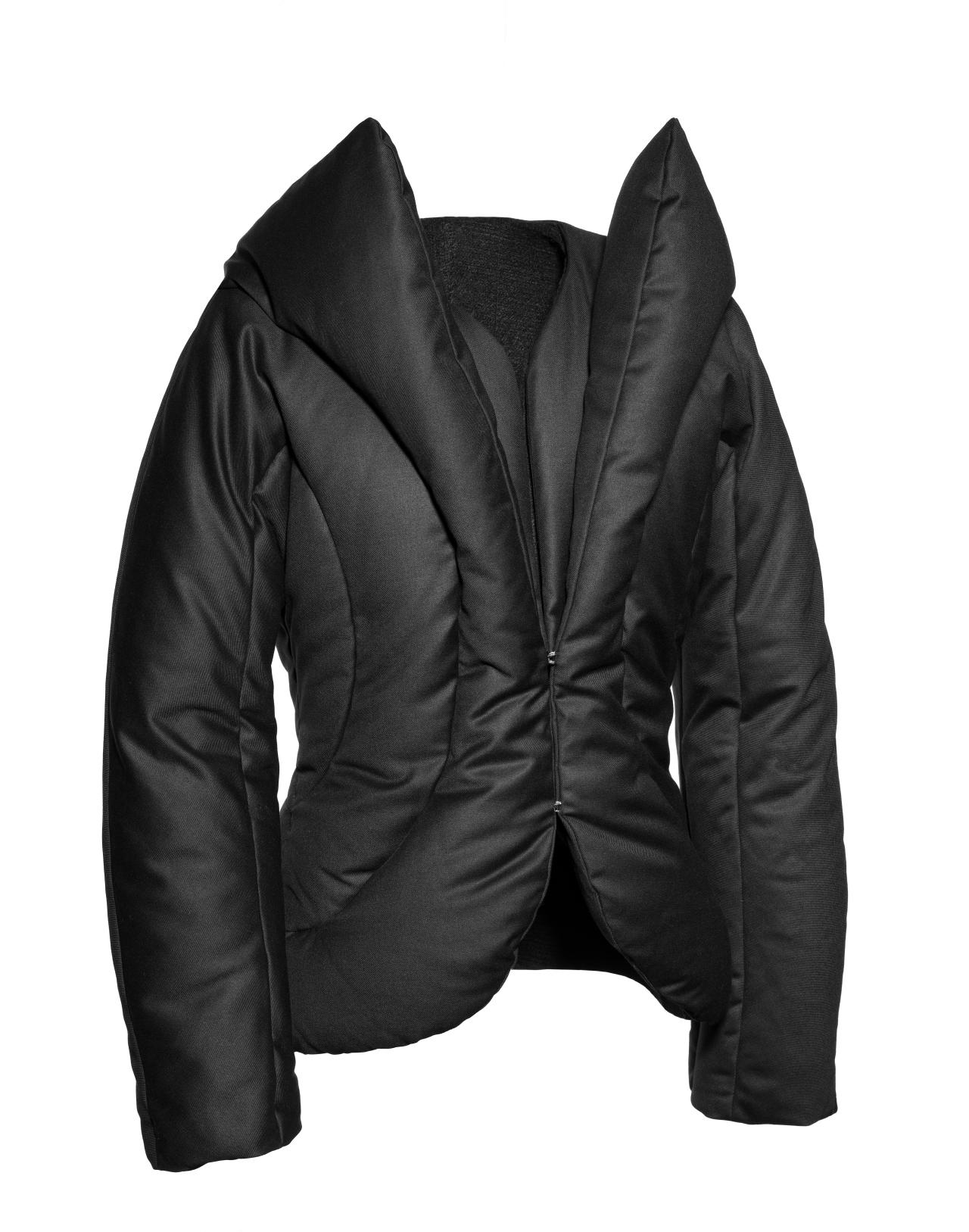 The collection’s posthumously attributed title derives from tweets McQueen posted just before his death (‘Hells Angels + Prolific Demons’) less than one month before the premiere of the collection in Paris on 10 March 2010. The exploration of heavenly and fallen angels has been interpreted as a reflection of McQueen’s mental health struggles. However, conflict, religion and finding meaning in ambiguity were themes that characterised his practice throughout his career.