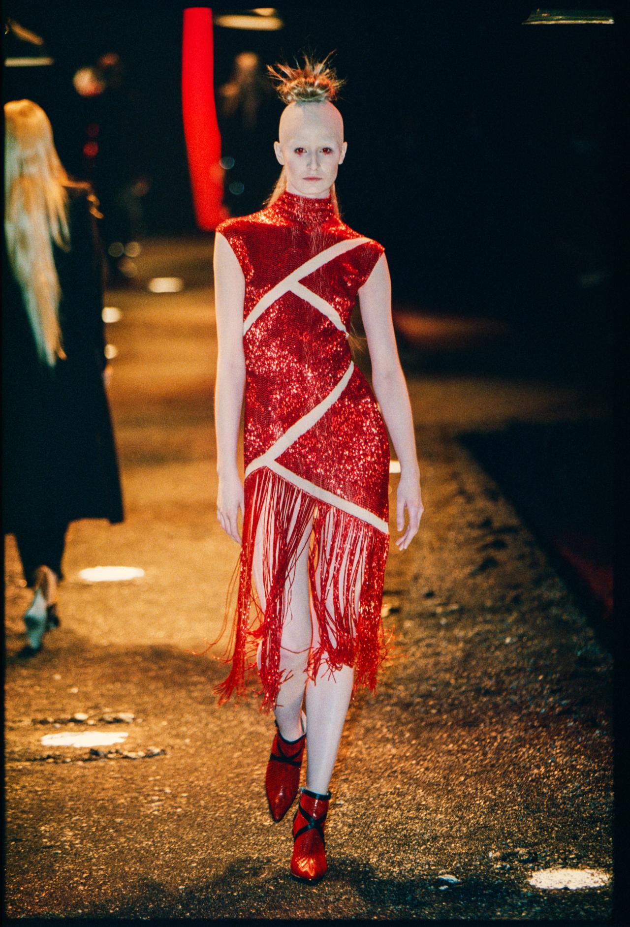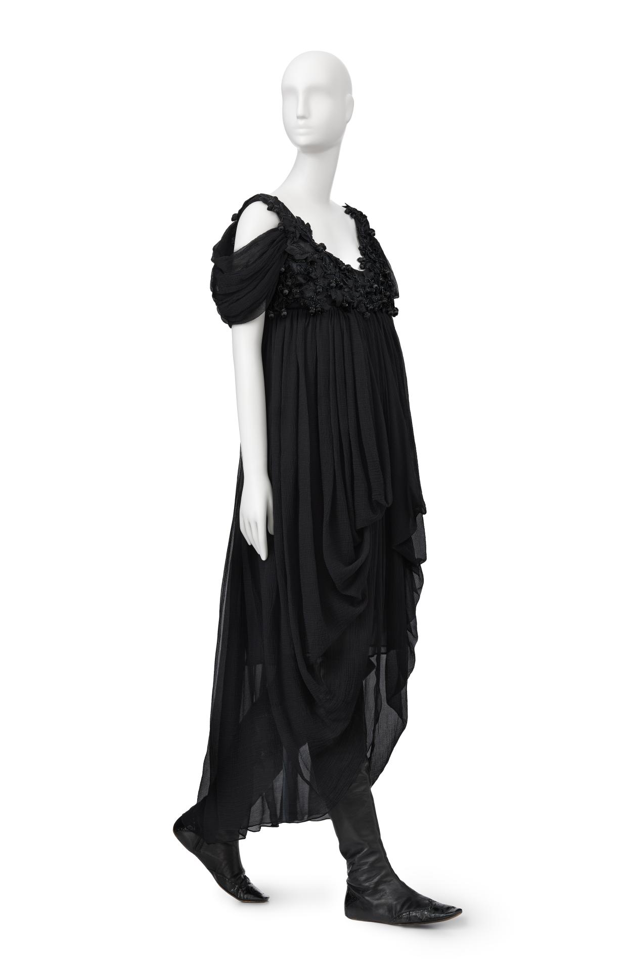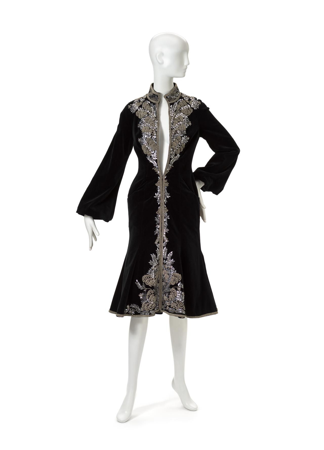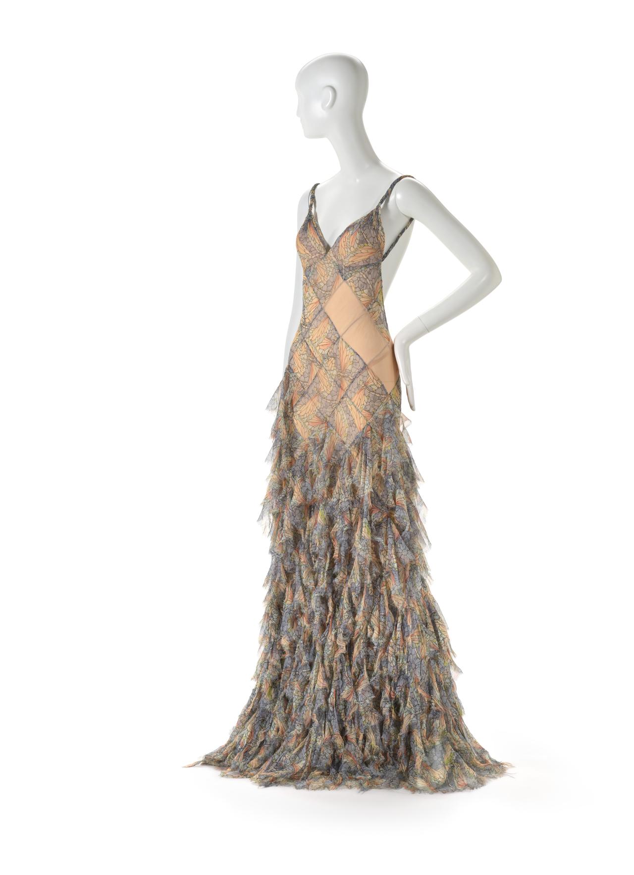 The untitled collection, autumn–winter 2010–11, posthumously called Angels and Demons, references Christian iconography from the Byzantine Empire as well as the northern and Italian Renaissance. Through the collection, the existential dualities of heaven and hell, sin and redemption, and damnation and salvation are explored. Neptune, McQueen’s spring–summer 2006 collection, looks to ancient Greece and Rome to recast contemporary women as powerful and empowered warriors or goddesses, while Eye, spring–summer 2000, combines Western fashion with interpretations of dress and textiles traditionally associated with the Ottoman Empire (late thirteenth century to 1923).