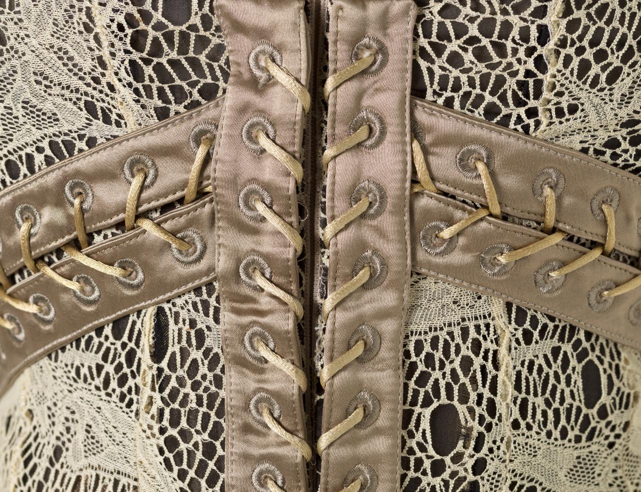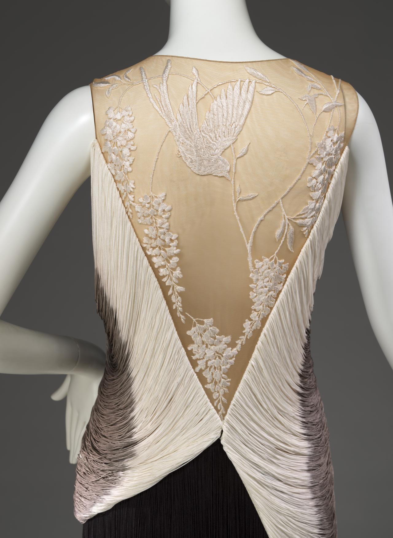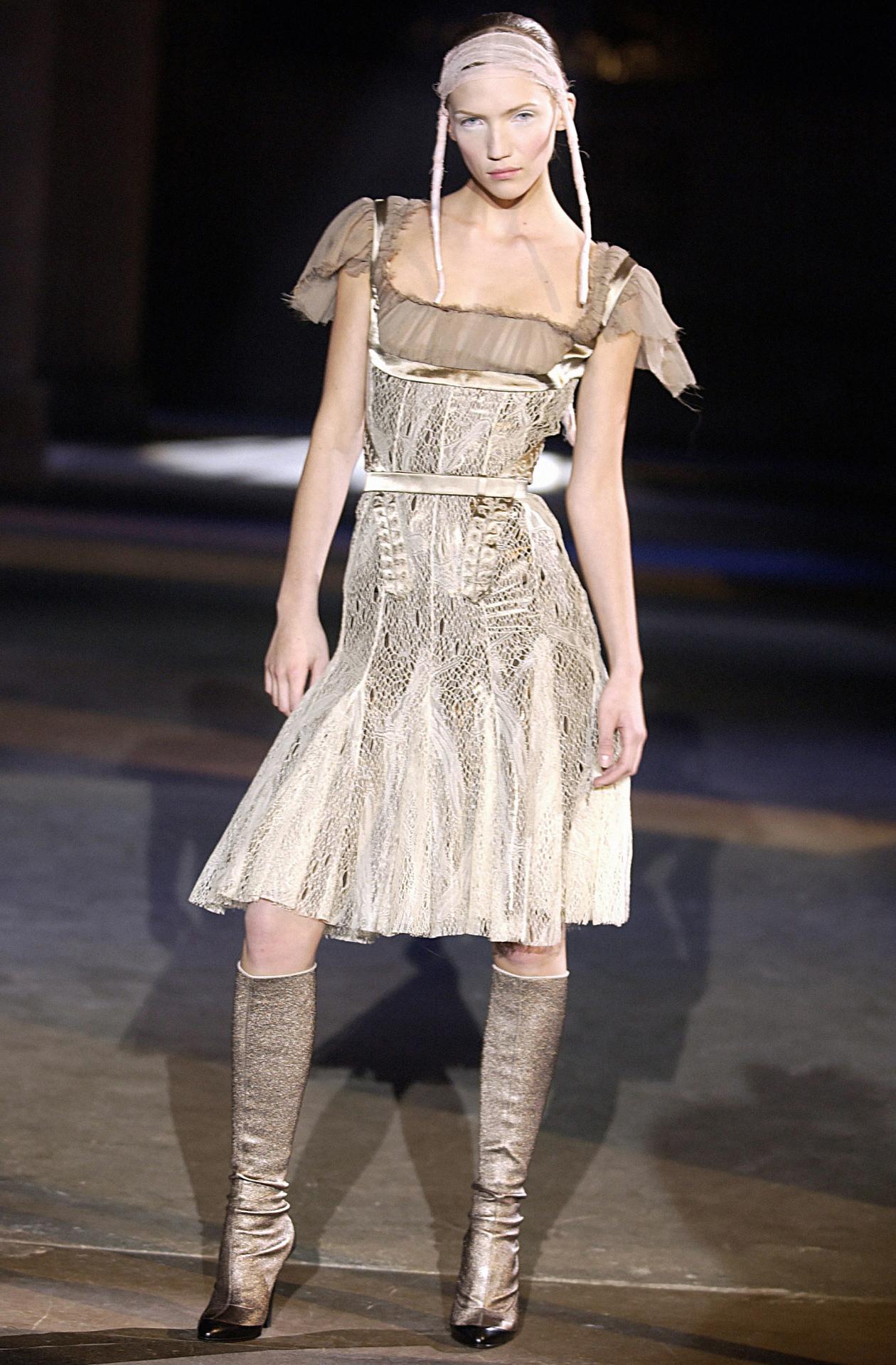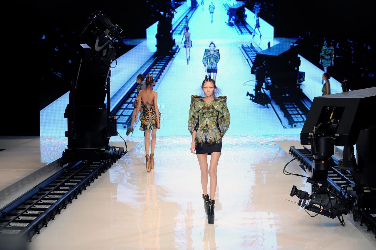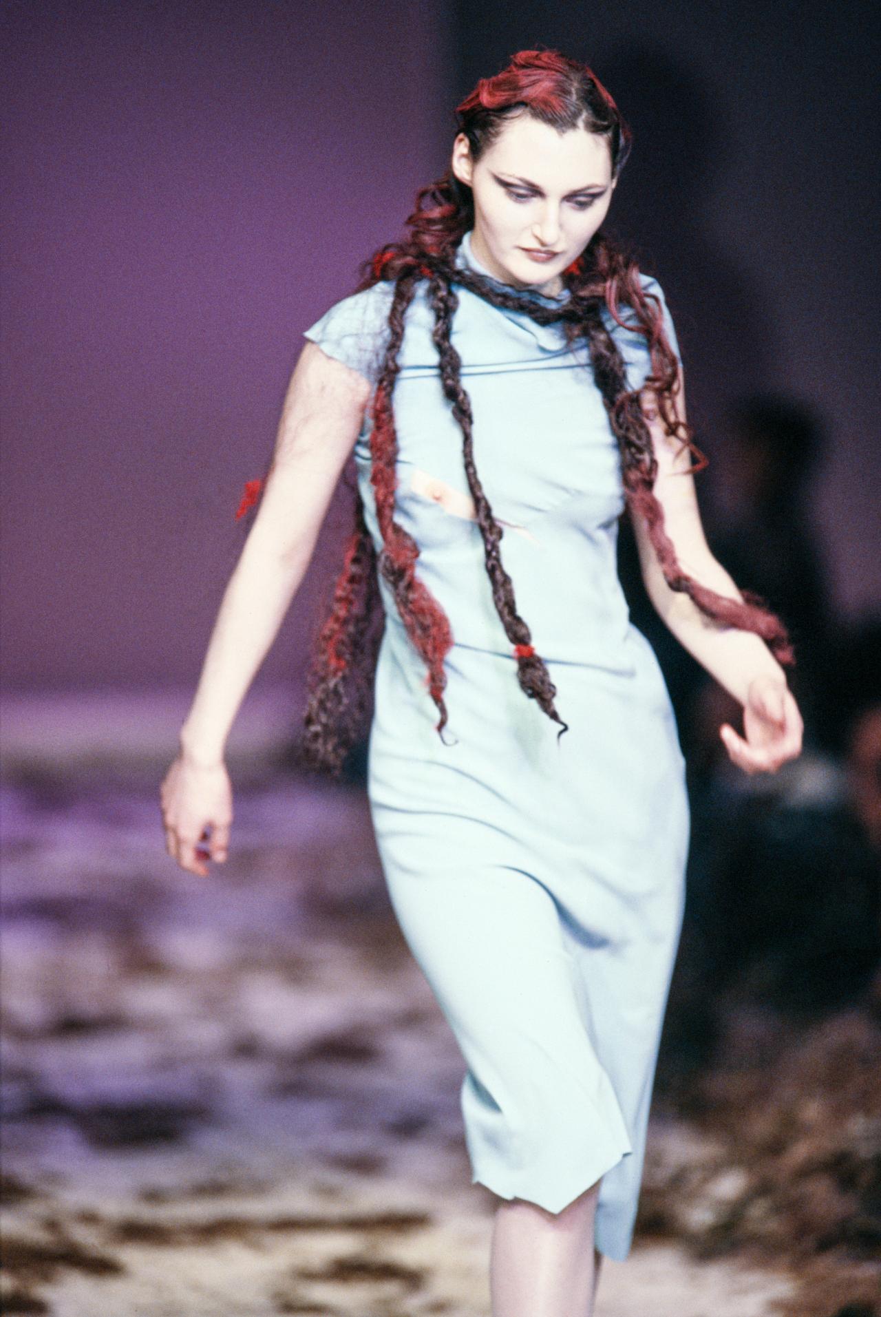 The untitled collection, autumn–winter 2010–11, posthumously called Angels and Demons, references Christian iconography from the Byzantine Empire as well as the northern and Italian Renaissance. Through the collection, the existential dualities of heaven and hell, sin and redemption, and damnation and salvation are explored. Neptune, McQueen’s spring–summer 2006 collection, looks to ancient Greece and Rome to recast contemporary women as powerful and empowered warriors or goddesses, while Eye, spring–summer 2000, combines Western fashion with interpretations of dress and textiles traditionally associated with the Ottoman Empire (late thirteenth century to 1923).
