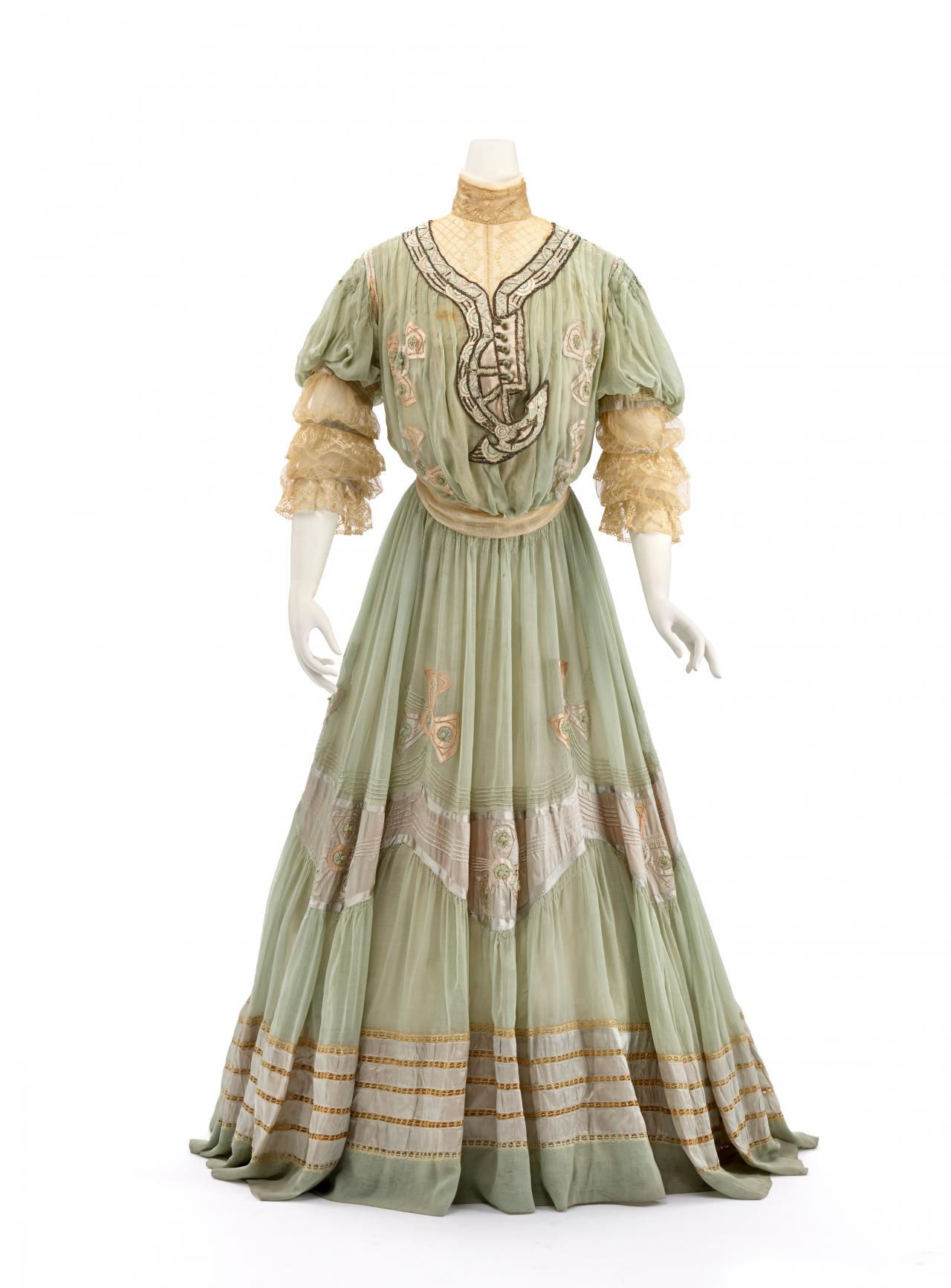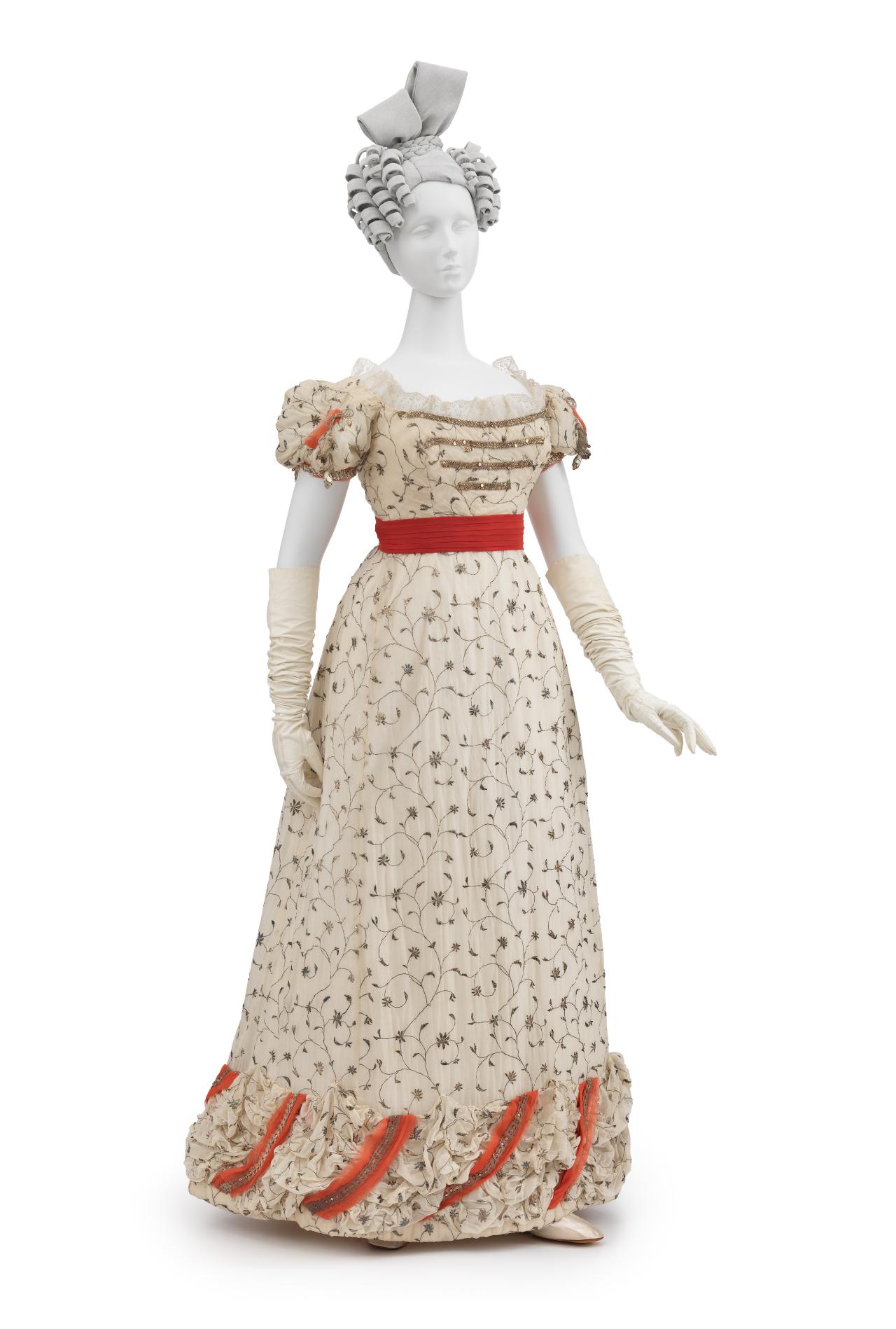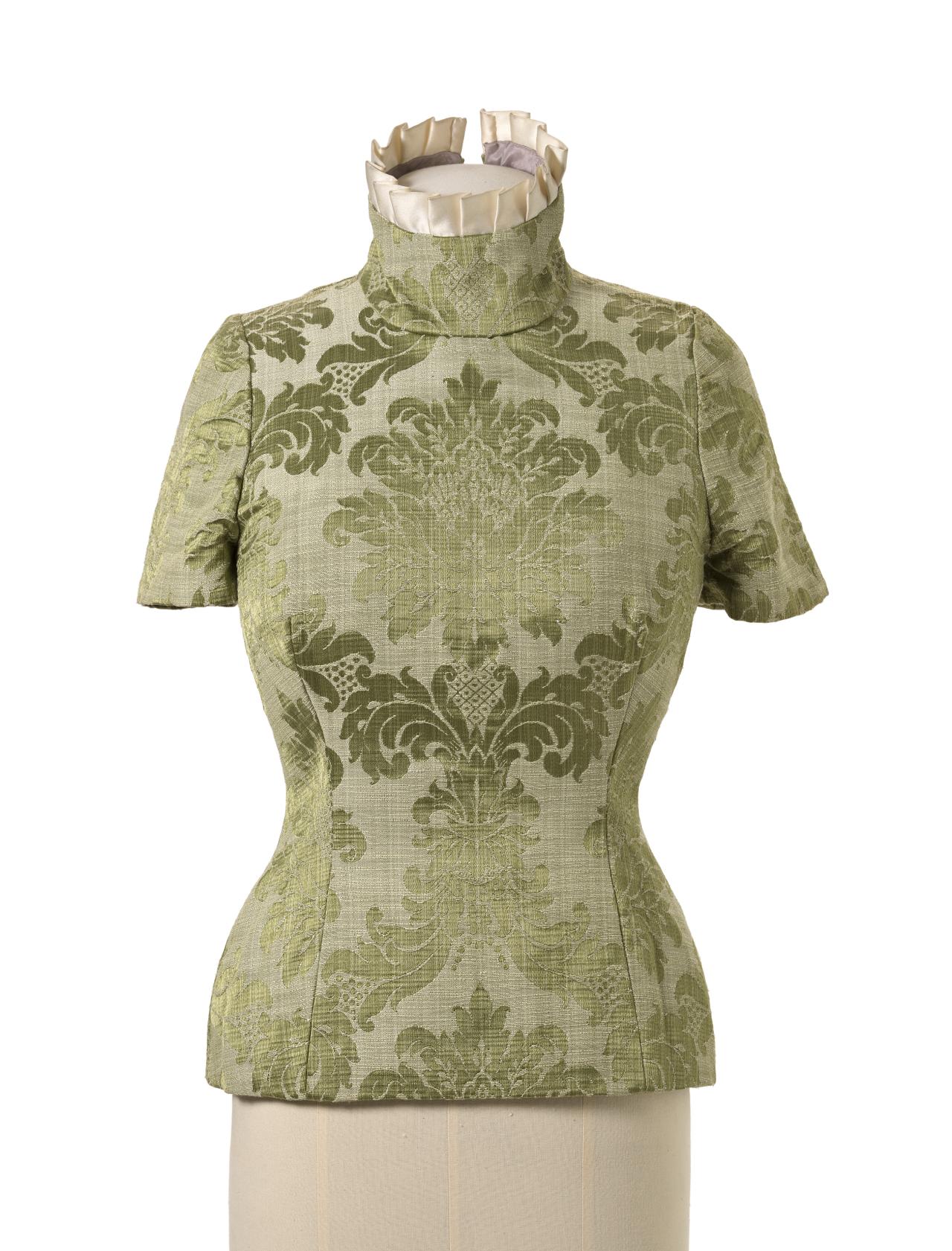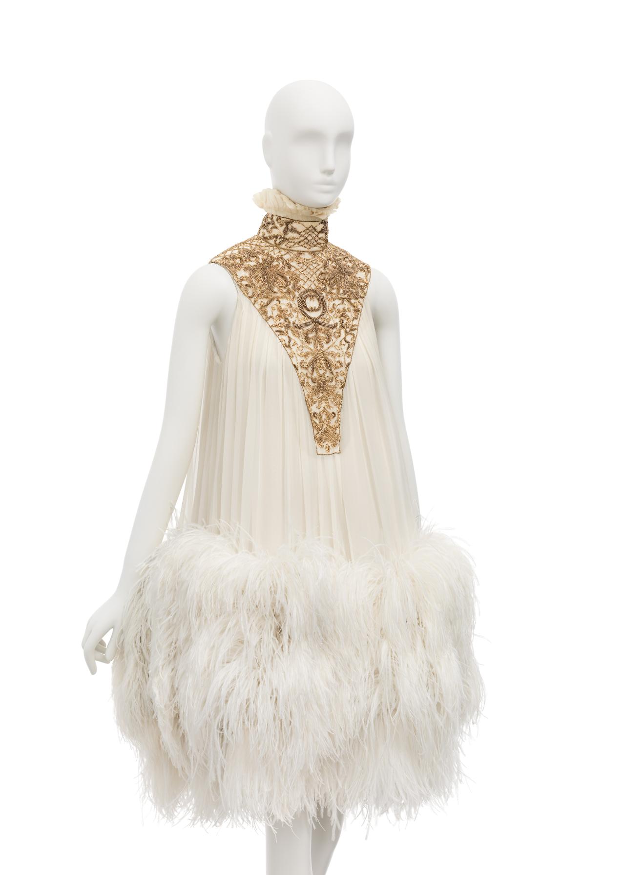 The untitled collection, autumn–winter 2010–11, posthumously called Angels and Demons, references Christian iconography from the Byzantine Empire as well as the northern and Italian Renaissance. Through the collection, the existential dualities of heaven and hell, sin and redemption, and damnation and salvation are explored. Neptune, McQueen’s spring–summer 2006 collection, looks to ancient Greece and Rome to recast contemporary women as powerful and empowered warriors or goddesses, while Eye, spring–summer 2000, combines Western fashion with interpretations of dress and textiles traditionally associated with the Ottoman Empire (late thirteenth century to 1923).