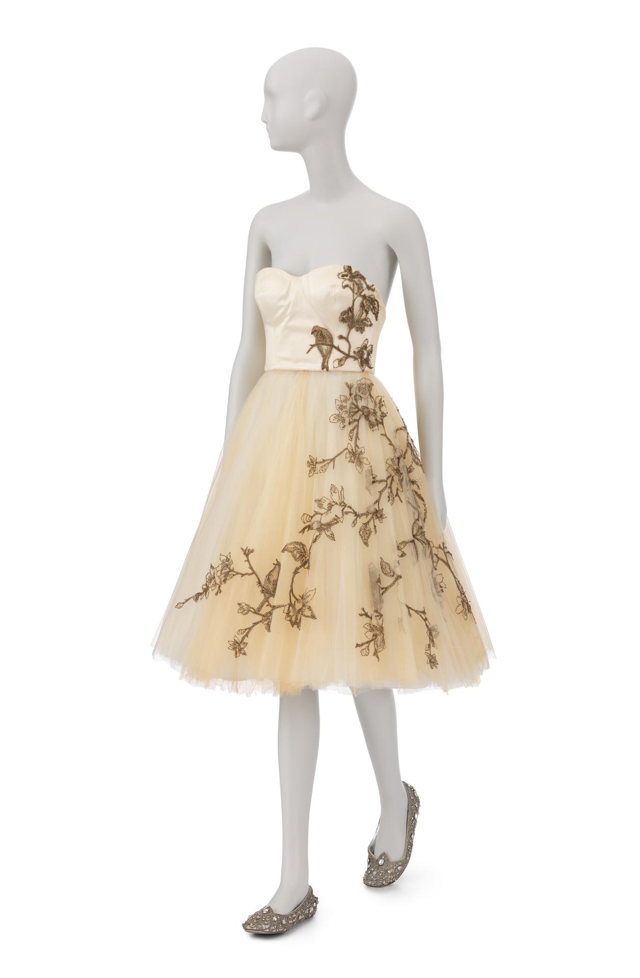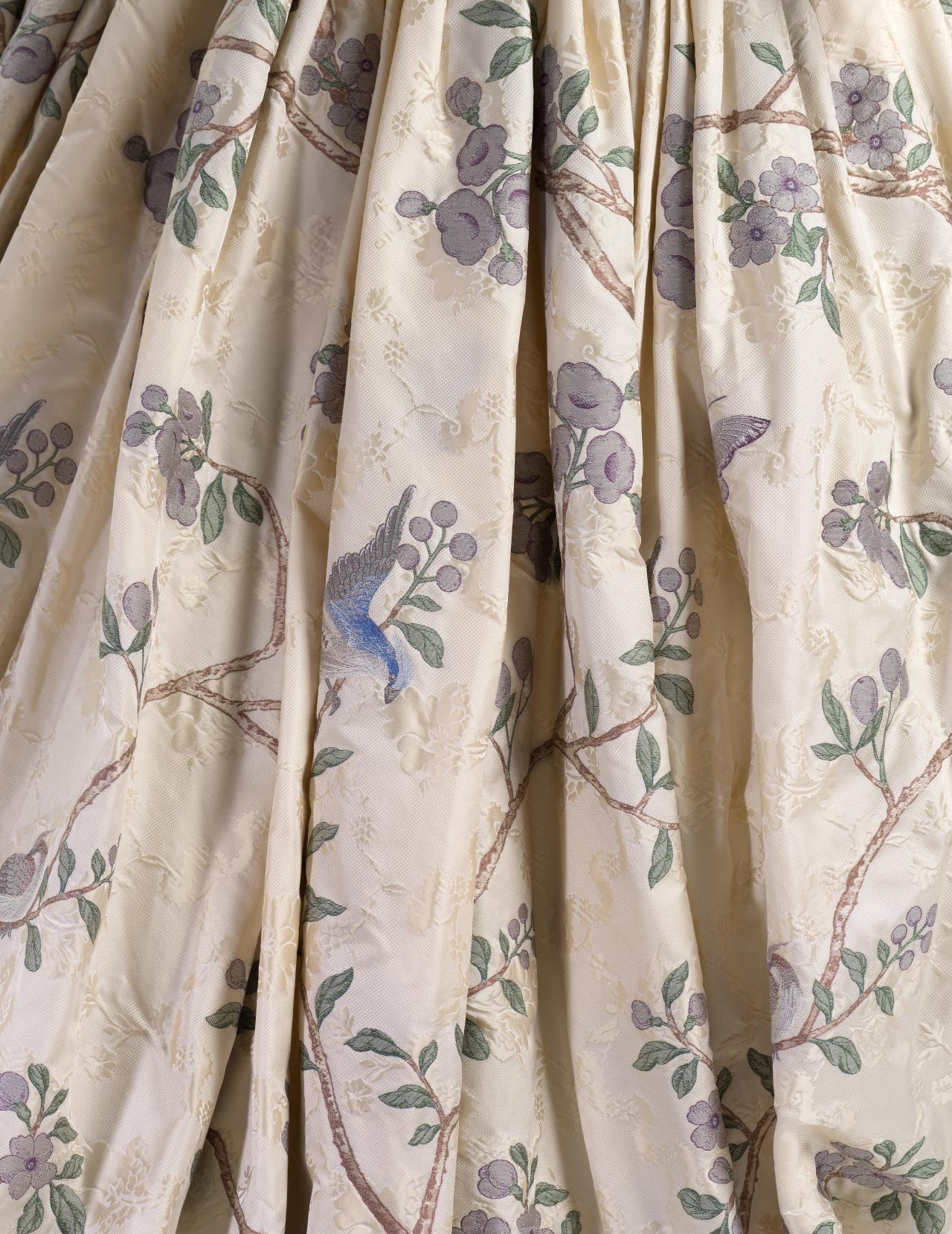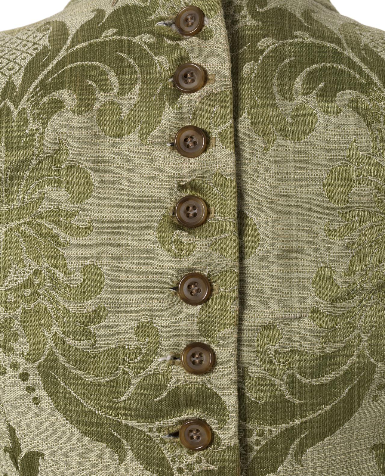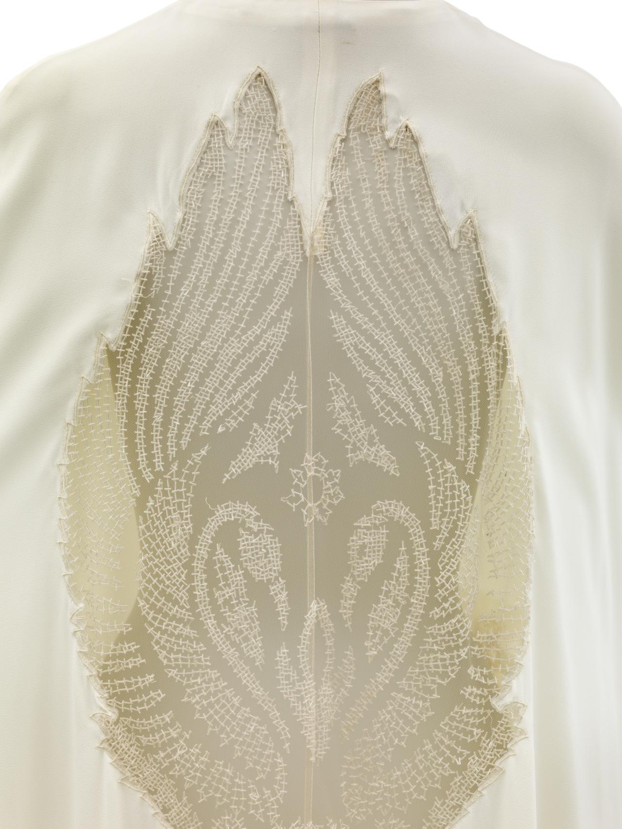With Angels and Demons, McQueen looked to the past ‘to find light and beauty’. Three-dimensional gilt embroideries and inventive Jacquard textiles borrow from Italian and northern Renaissance art, as well as Classical sculpture.