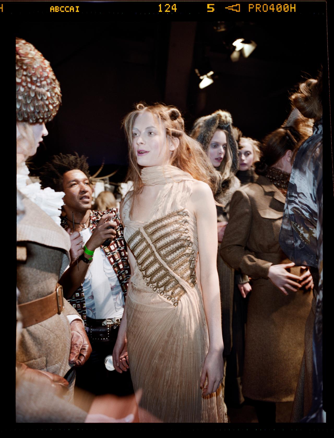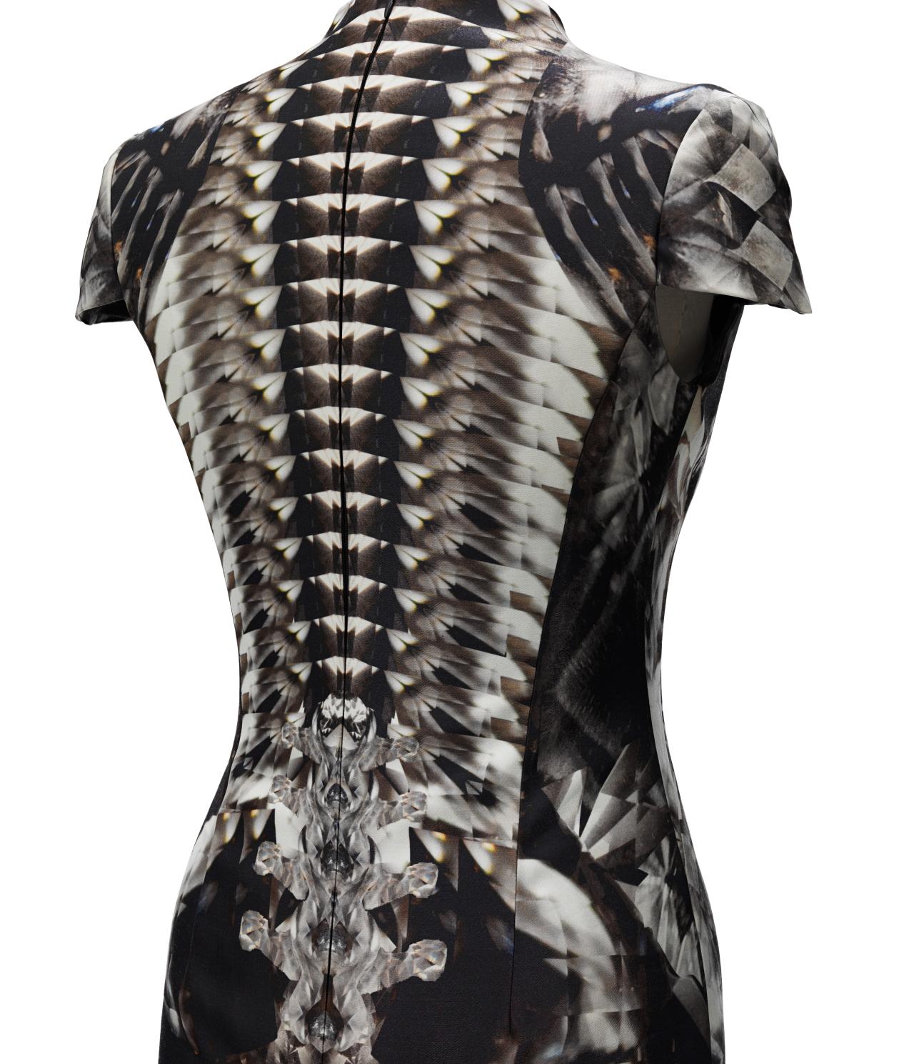 A celebration of craftsmanship, concept and beauty, the small collection was completed by McQueen’s womenswear studio – led by Sarah Burton, now the label’s creative director – and masterfully blends hightech elements with ancient history.