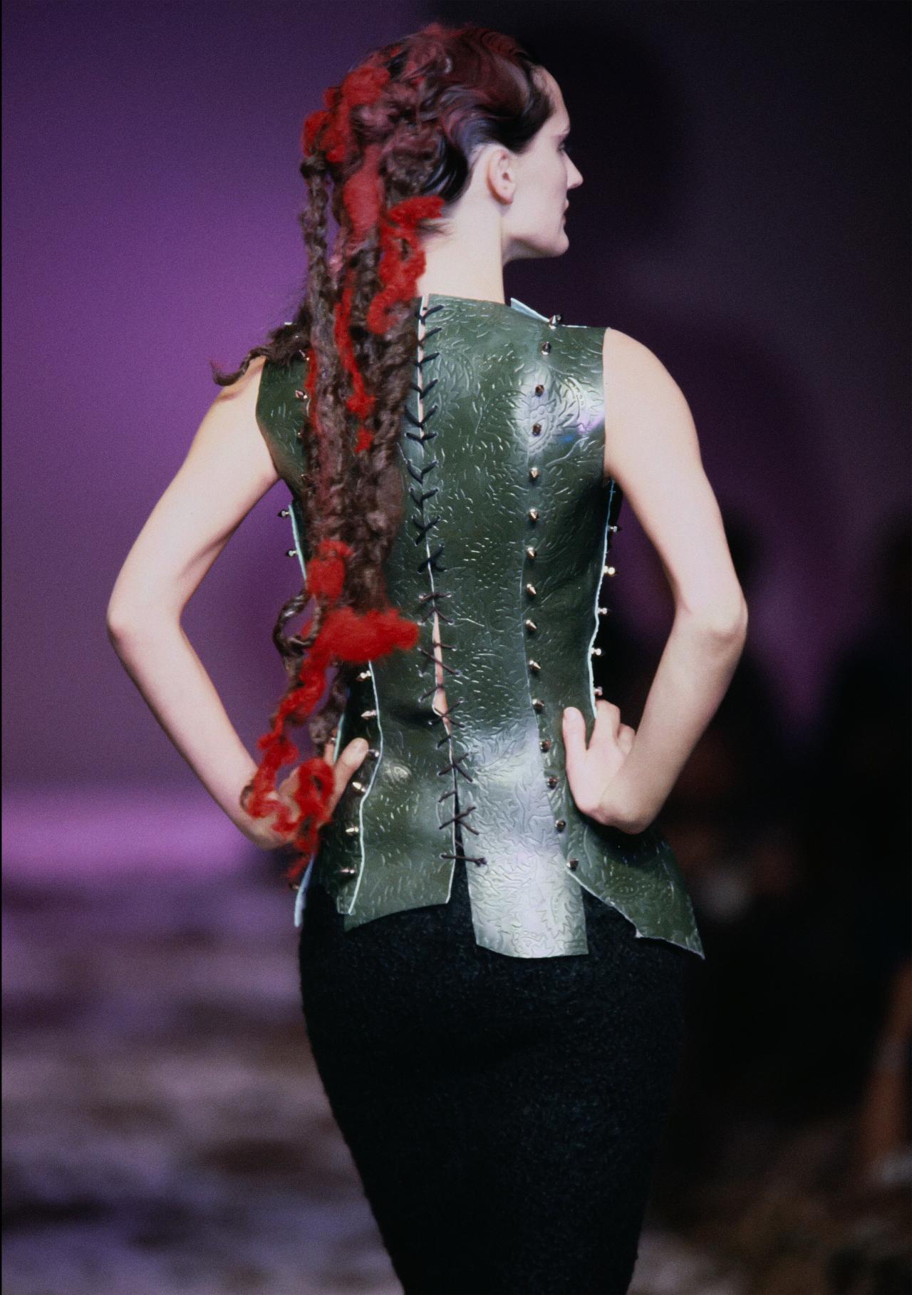 By fusing religious symbols and silhouettes, historical secular dress and contemporary fashion, and costume and artistic traditions drawn from various cultures, McQueen developed a multifaceted vision.