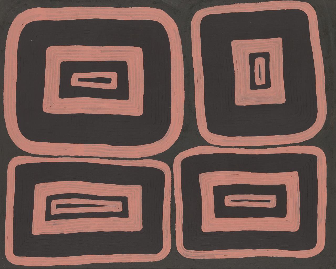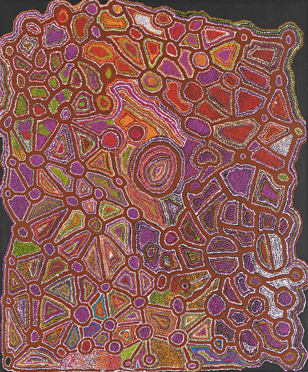 Since 2002, David and Anita Angel have gifted to the NGV over 100 contemporary Indigenous works, which are displayed together for the first time in Artist’s Hand: Collectors’ Eye: The Angel Gift. The works by senior male and female artists from the Western Desert, the Kimberley and the Tiwi Islands, date from 1990 to now. This period has witnessed immense change in Indigenous art practice, notably the emergence of Indigenous women as artists of consequence and invention, as seen in work of Wakartu Cory Surprise, Jean Baptiste Apuatimi and Naata Nungurrayi. Also notable has been the forging of pared down forms of expression that has enabled Pintupi male artists, such as Mick Namarari Tjapaltjarri and Turkey Tolson Tjupurrula to distil the specificity of place. The hand and vision of individual masters is a mark of this exhibition that attests to the power and spiritual aura of Indigenous art and affirms the importance of benefaction to the NGV Collection of Indigenous art.