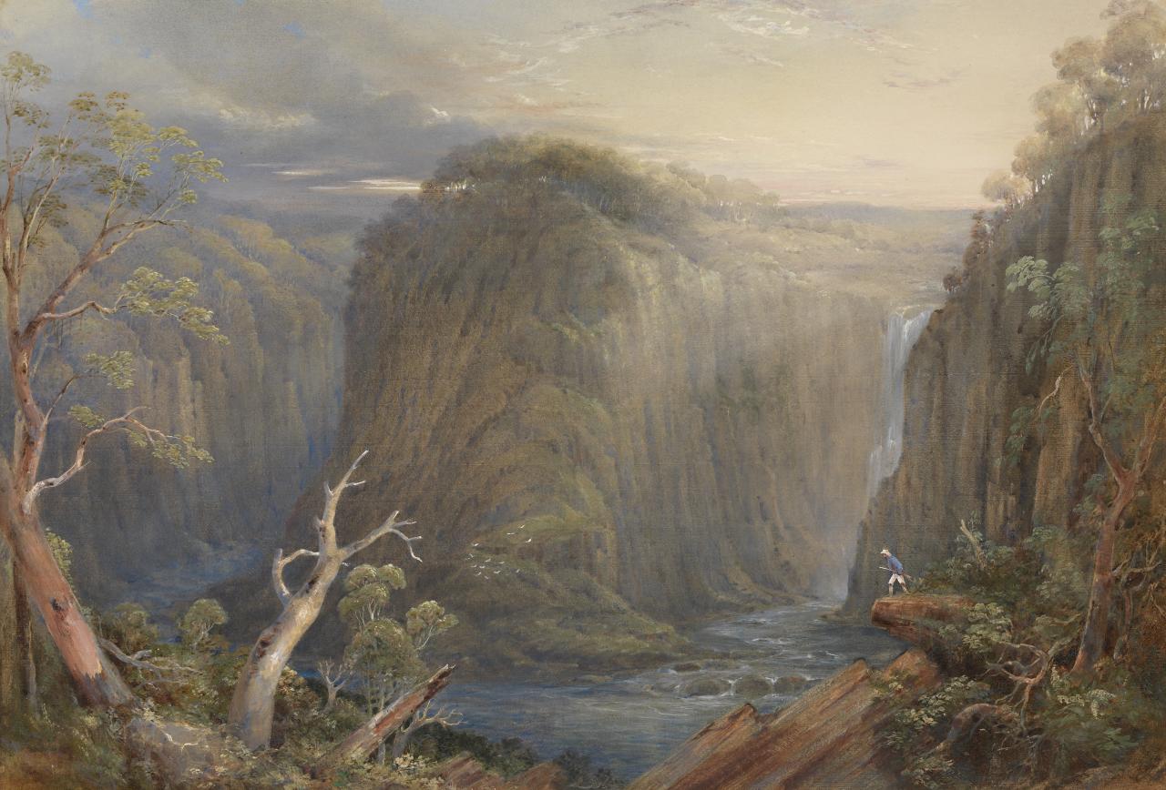 Within this exhibition, among the paintings three artists are represented who have become familiar figures in the history of Australian art: Louis Buvelot, Eugene von Guérard and W. C. Piguenit. Whether it be the sometimes exalted romanticism of von Guérard, the more intimate expression of Australian landscape by Buvelot or the often atmospheric interpretation by the Australian born Piguenit, each has made a considerable contribution to Australian landscape and exists in his own right irrespective of period. In this exhibition, however, their work takes its place in the background of the 1870s.