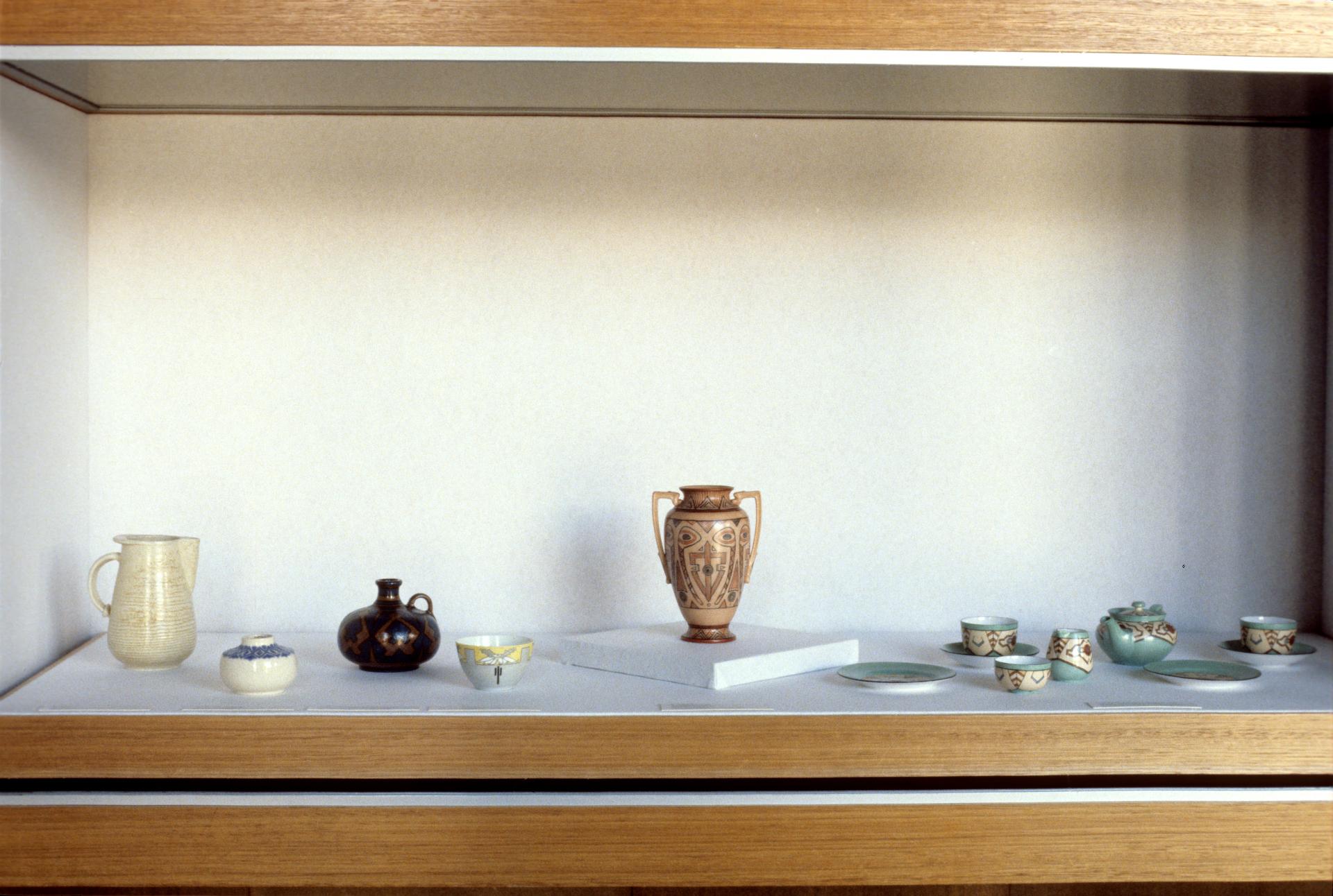 The exhibition highlighted the burgeoning interest in a uniquely Australian approach to pottery, spearheaded by work coming out of the Arthur Merric Boyd Pottery studio in Murrumbeena. Potters began incorporating Australian flora and fauna into their work in the first half of the twentieth century, creating a uniquely Australian style of collectible pottery for postwar homes.