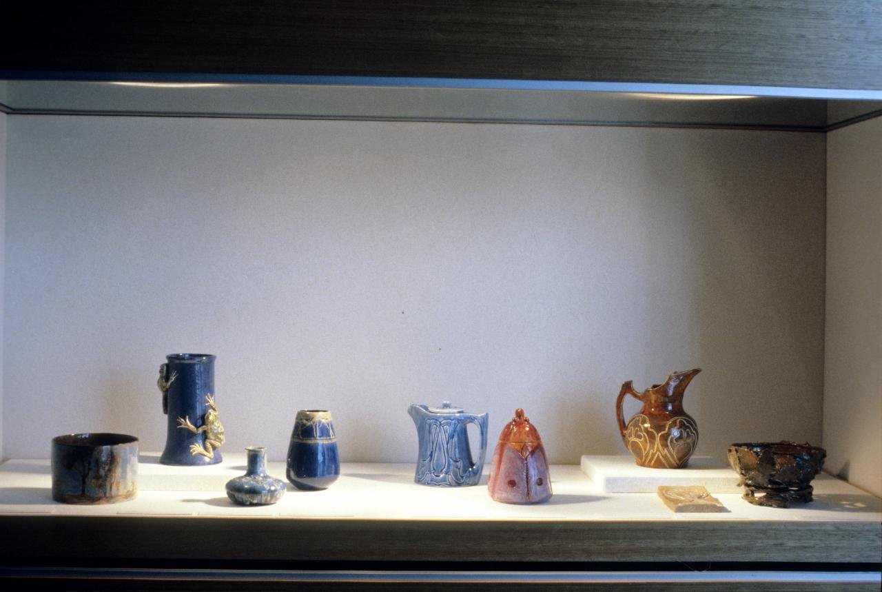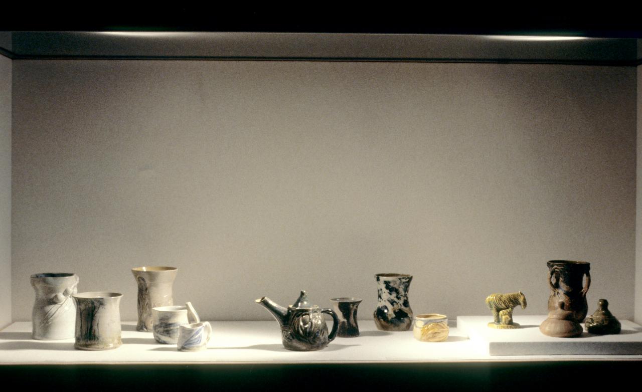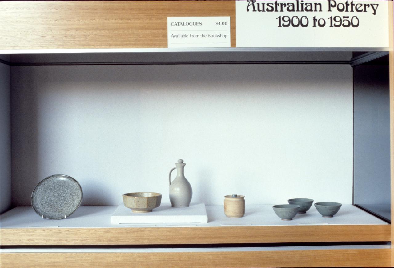 Prepared by the Shepparton Arts Centre, this exhibition looking at fifty years of Australian pottery featured work by various members of the Boyd family (Arthur, Merric, Lucy, David and Hermia), as well as John Perceval, Margaret Preston, Marguerite Mahood, Klytie Pate, Gladys Reyell, William Ricketts and more.