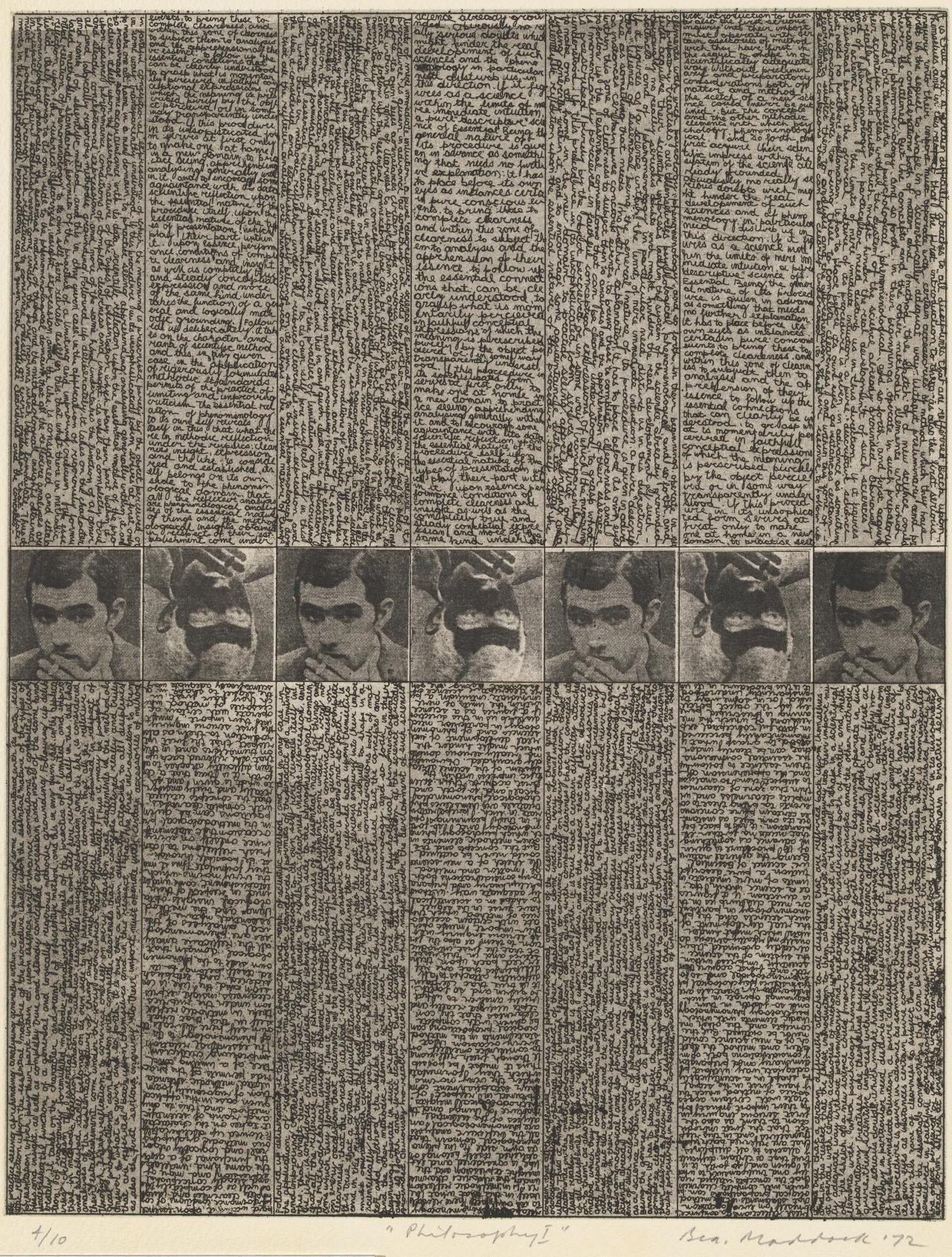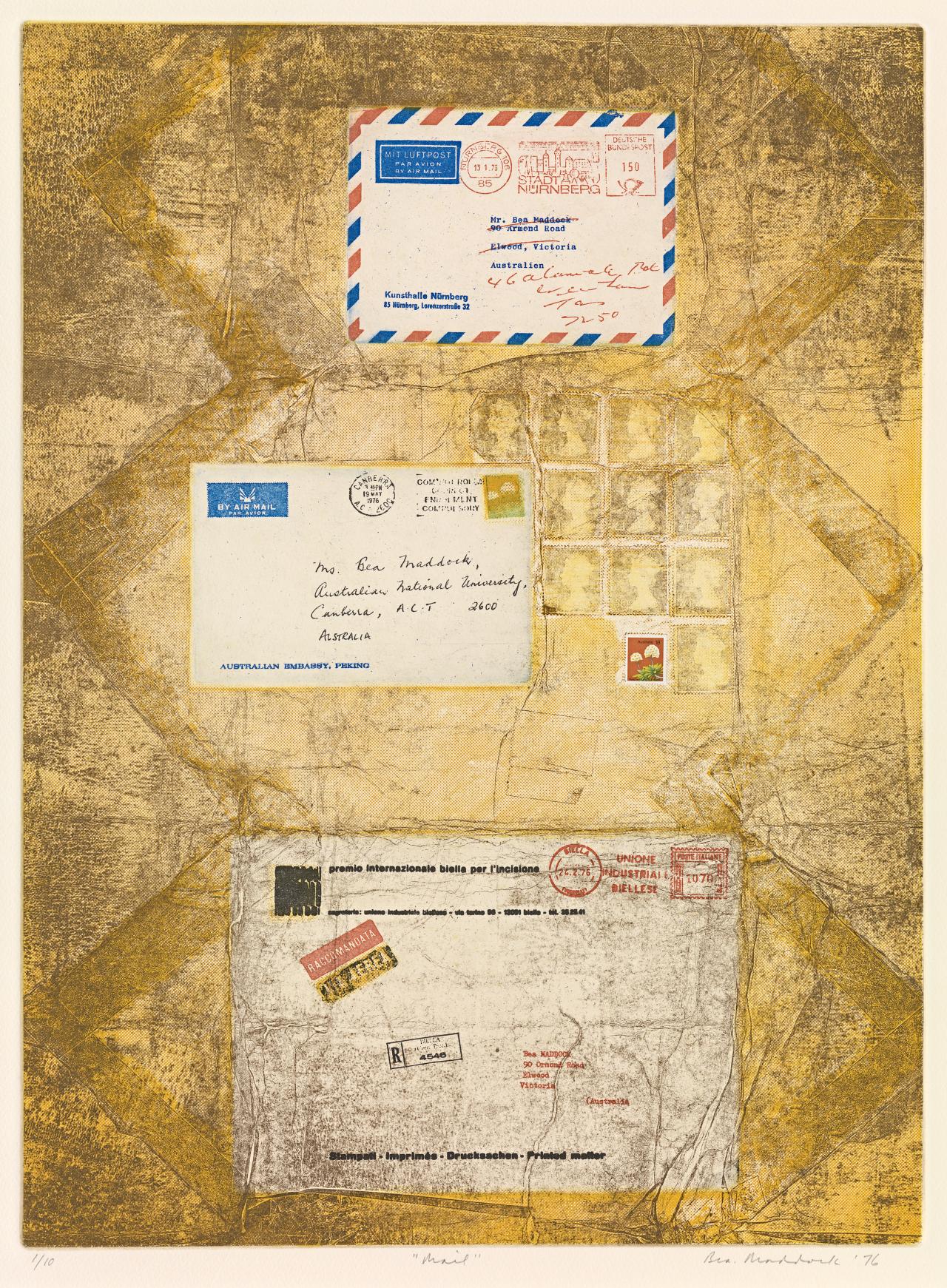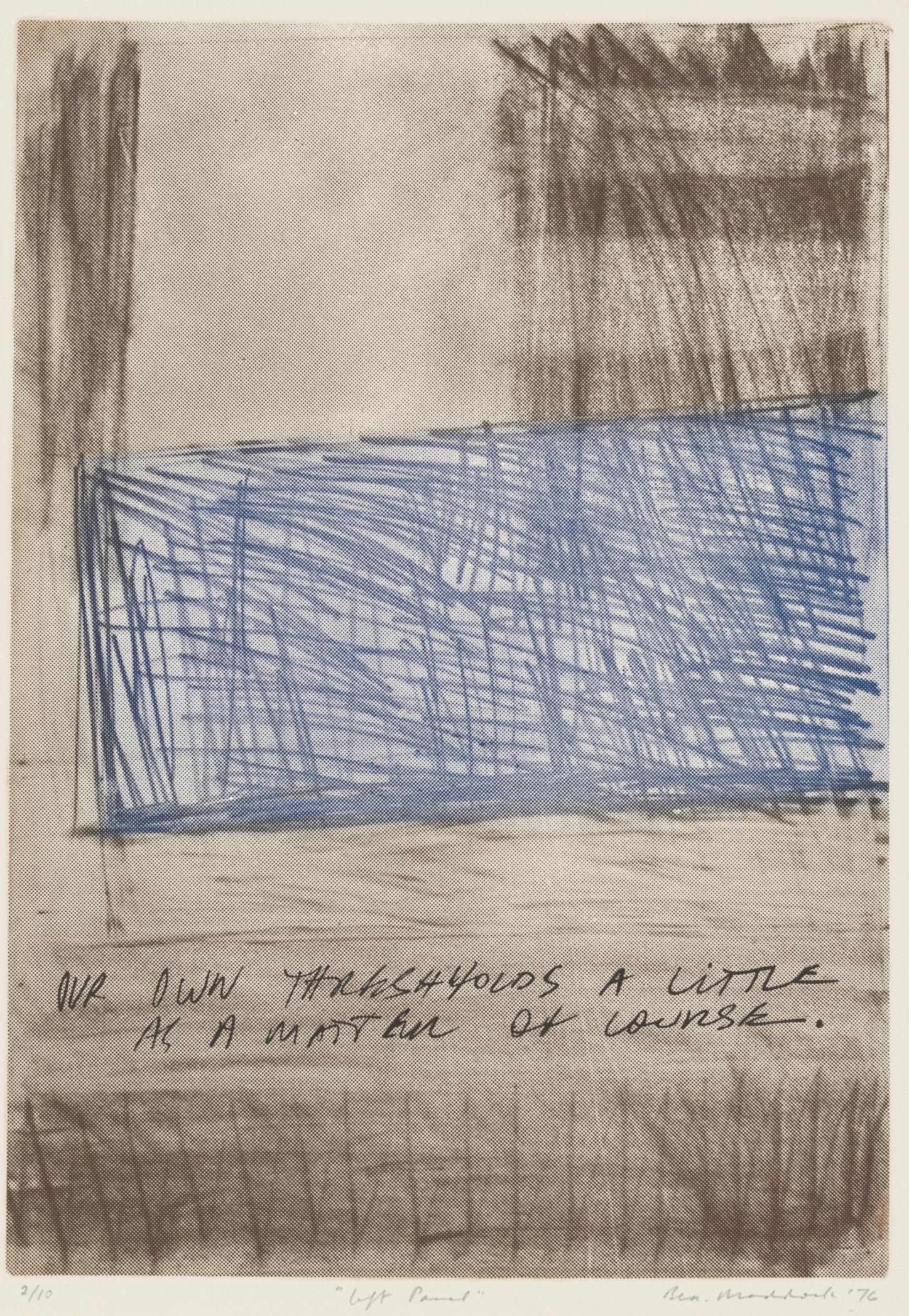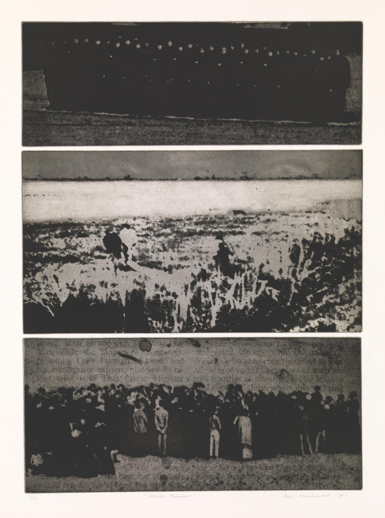 Bea Maddock is one of Australia’s most acclaimed artists, recognised in particular for her innovative and evocative prints. This exhibition examines her long career through works selected from the National Gallery of Victoria’s strong holdings, spanning her early prints of the 1960s, the incorporation of photo-etching and mass-media imagery in the 1970s, and her profound explorations of existentialism, humanism and Australia’s contested histories, in particular her masterpiece, the panoramic drawing TERRA SPIRITUS … with a darker shade of pale (1993–98).