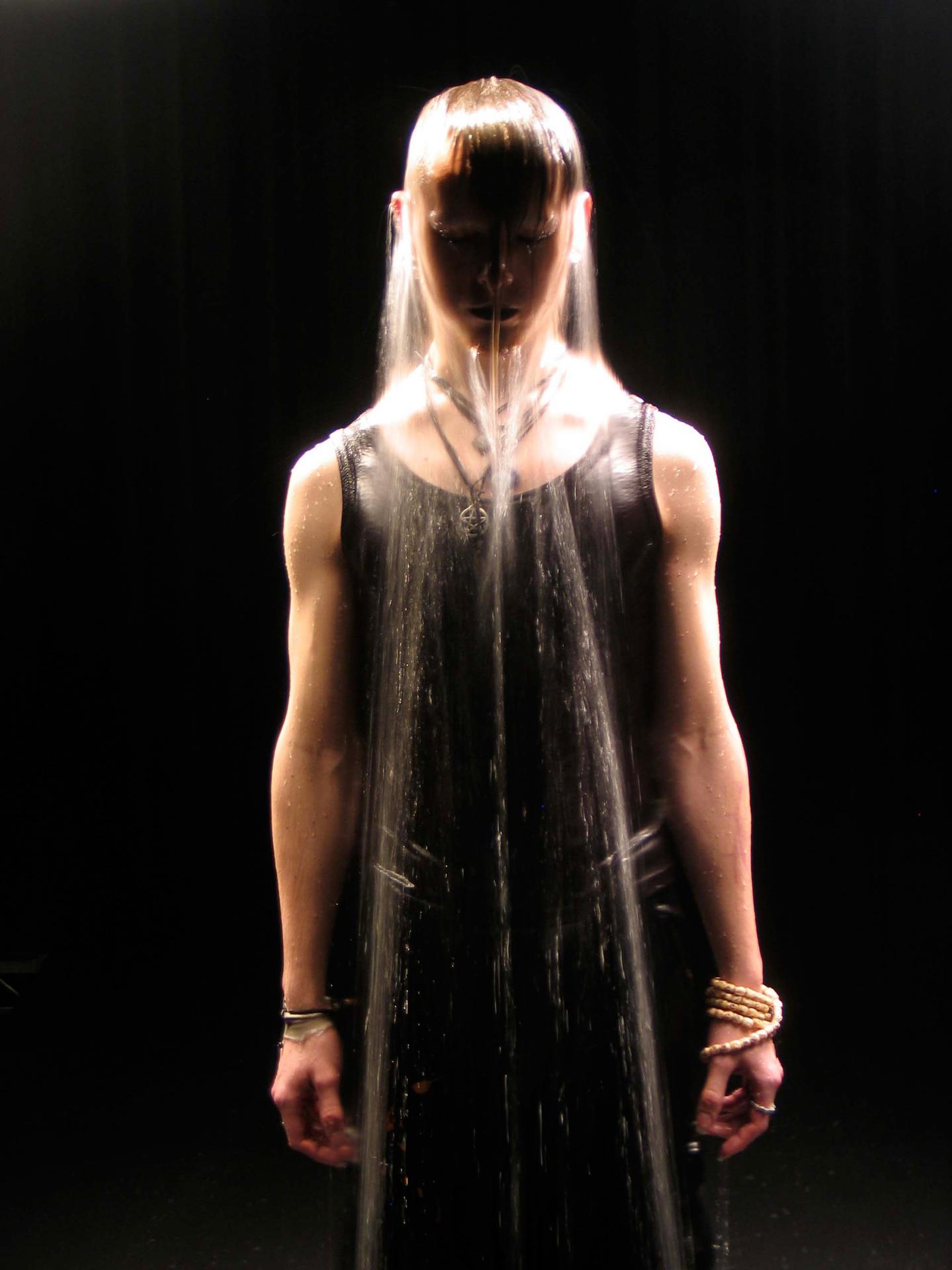 Bill Viola’s Ocean without a shore, which takes its title from the Andalucian Sufi mystic Ibn Arabi (1165–1240), explores the threshold between life and death, or as the artist has stated, ‘the presence of the dead in our lives’. The installation is emblematic of Viola’s considered attention to human beings undergoing various states of transformation and renewal. In the installation, three video screens become surfaces for the manifestation of images of the dead attempting to re-enter our world. The physical threshold through which the figures pass is not a digital effect, but actually a ‘sheet’ of cascading water.