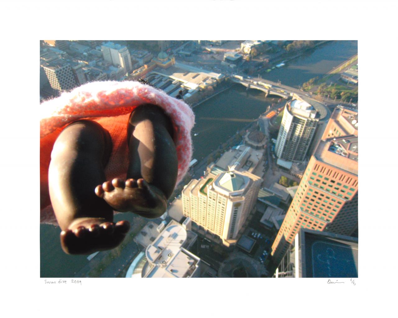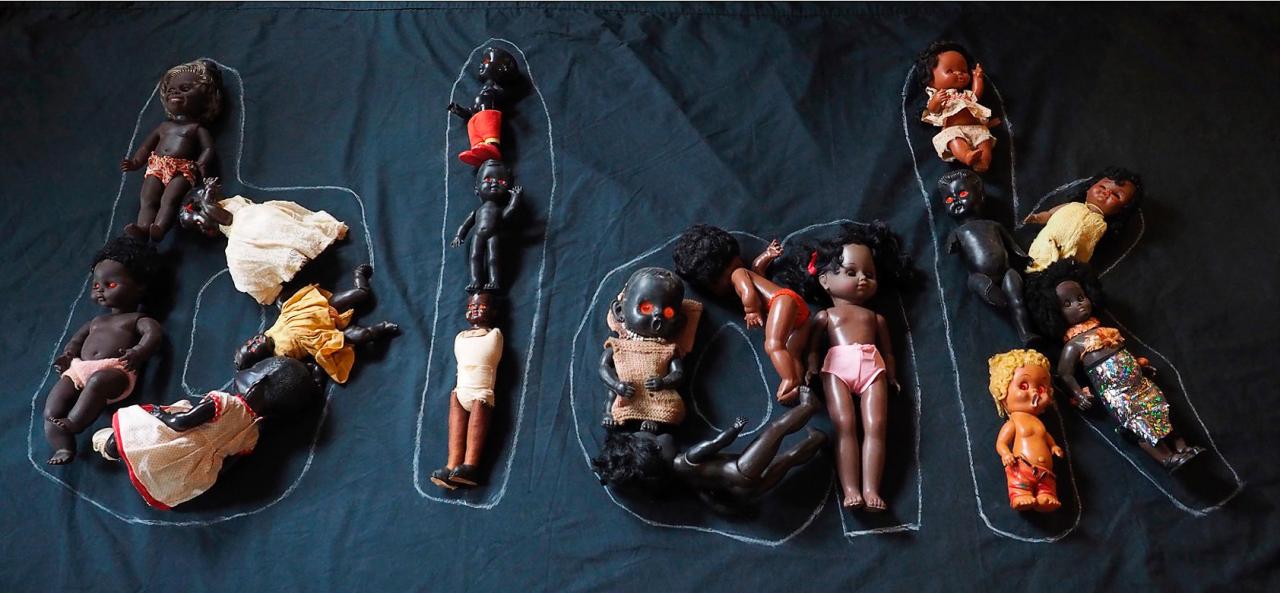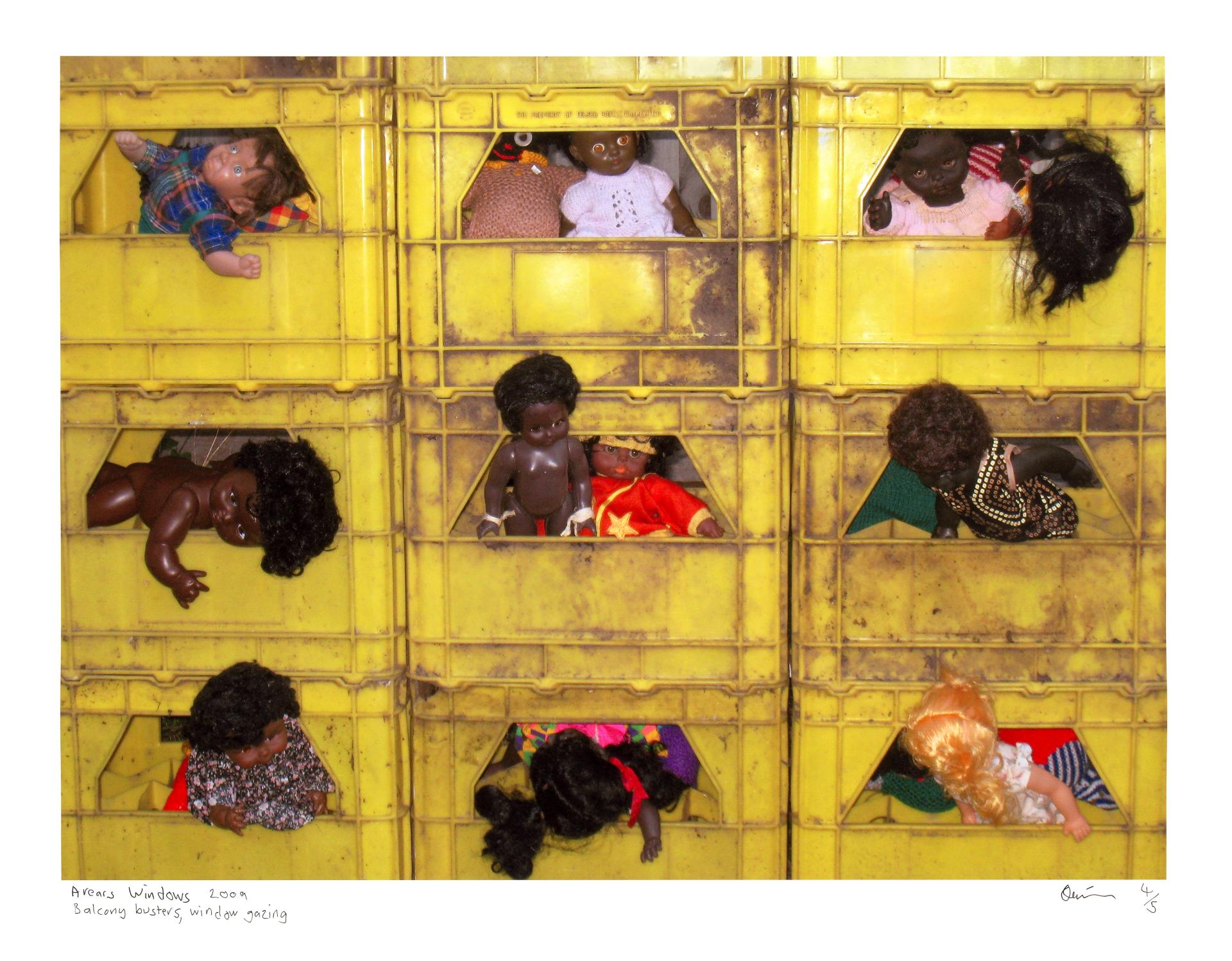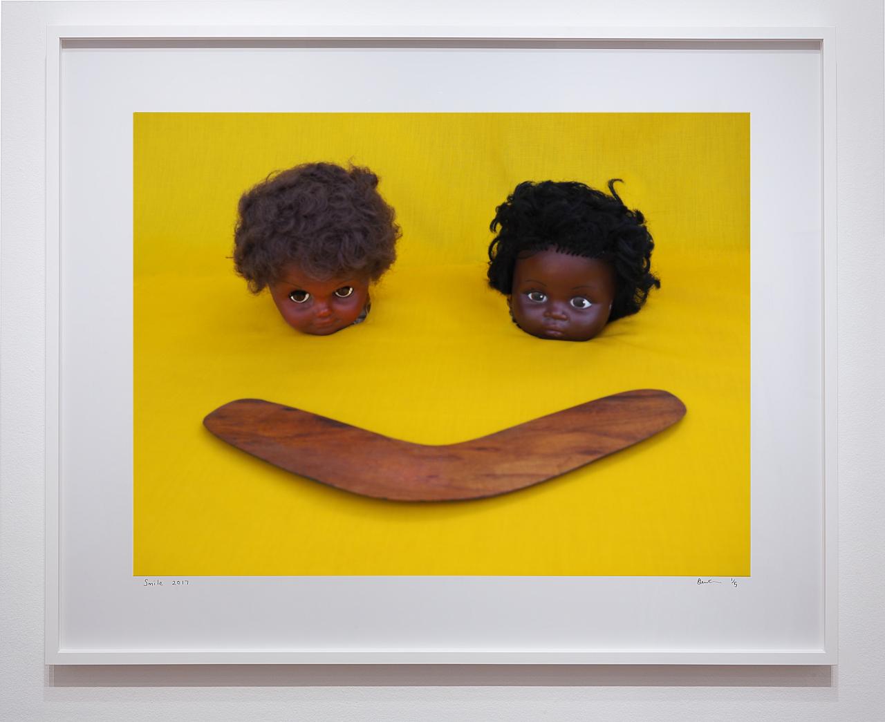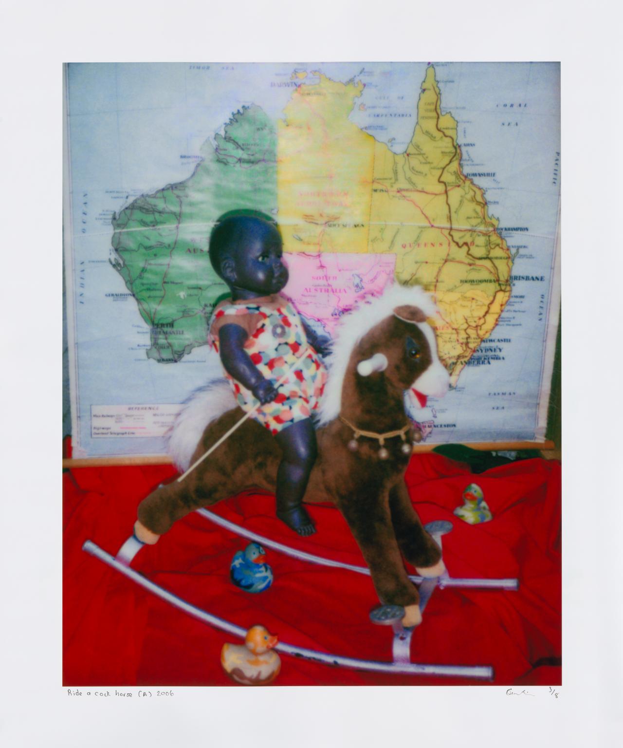 In 1991, Deacon first exhibited Blak lik mi, a photographic triptych that marked the beginning of her journey to reclaiming and redefining her identity. This work features Polaroid images of an Aboriginal girl and references Axel Poignant’s misappropriated 1957 photograph from the book Piccaninny Walkabout, which was later reproduced as kitsch decoration. Deacon’s work exposed dualities central to her experience, often featuring dolls and family in surreal scenes that metaphorically comment on real-world violence.