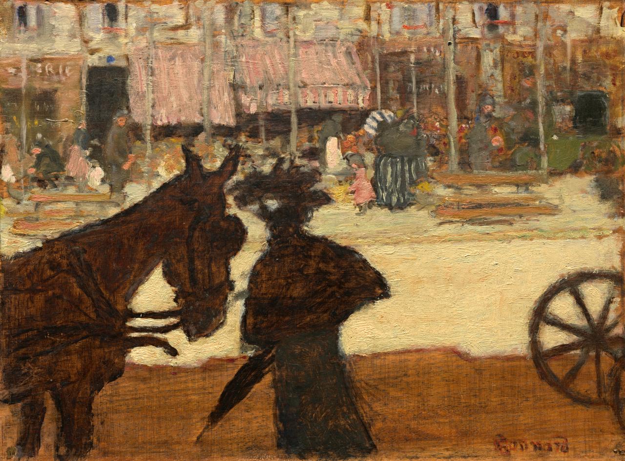 The first sections of the exhibition explore Bonnard’s central role within the Nabi circle of artists, as well as his interaction with the contemporary worlds of music and theatre. Calling themselves the Nabis, the young artists Pierre Bonnard, Maurice Denis, Édouard Vuillard, Paul Ranson, Paul Sérusier and Félix Vallotton banded together in the early 1890s, and saw themselves as the Prophets of a new art that they envisaged encompassing every sphere of modern life – interior design, furniture, fans and textiles, stained glass, and commercial illustration and advertising. Paintings by Vuillard and Vallotton will be shown alongside prints by Denis.