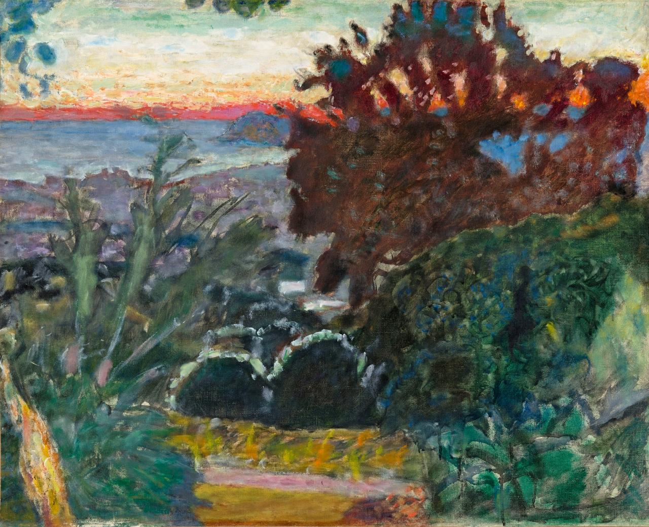 Bonnard’s meeting with Maria Boursin (who chose to be called Marthe de Méligny) in 1893 led to his own domestic intimacy, culminating in a remarkable series of nude studies, both lithographs and paintings. As Bonnard and de Méligny shared their life together, this led to longer periods spent in the countryside for the latter’s health. Alongside his intimate studies of their domestic life, Bonnard undertook campaigns of landscape painting, engaging with the legacy of French Impressionism. Visits to the south of France from 1909 onwards brought a new intensity of colour to Bonnard’s art, ‘this colour that drives one wild’ as he put it. A rich selection of the warm and vibrant interior scenes and still lifes recorded by Bonnard following his move to the south of France form an important part of the exhibition. In the last decades of his working life, Bonnard created works of poignant introspection – self portraits and scenes of his daily life – and others of majestic scale and joyous colour, celebrating the luminous landscapes around Le Cannet, the town near Cannes on the French Riviera where he and de Méligny lived.