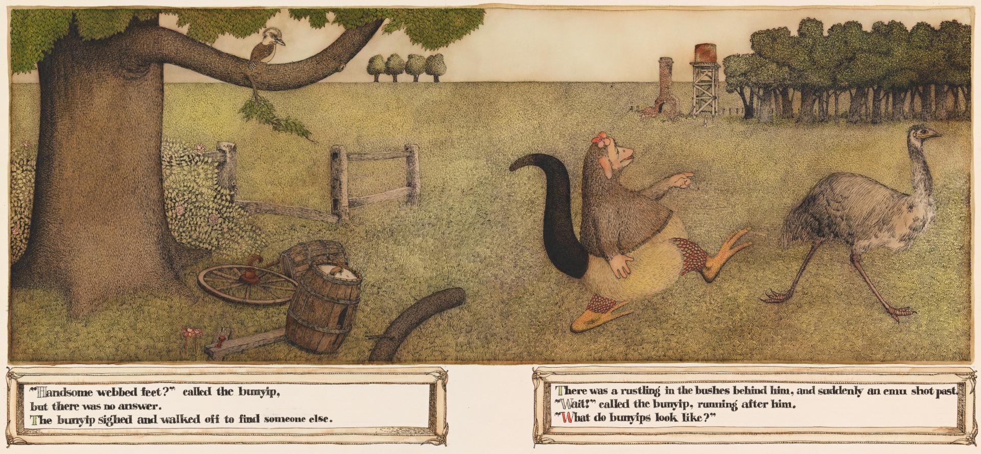 Bunyips and Dragons is drawn from a collection of Australian children’s book illustrations, donated to the NGV by Albert Ullin OAM. This exhibition of over 60 original illustrations presents an overview of children’s picture books produced over the past 40 years. In the 1970s and 1980s the art of illustration rapidly developed, and a new generation of illustrators emerged who helped shape a dynamic and diverse profession. Works from this period include classics such as Ron Brooks’s The Bunyip of Berkeley’s Creek, Peter Pavey’s One Dragon’s Dream and Graeme Base’s The Eleventh Hour, which are represented here. With more than 60 artists, the exhibition covers a great range of subjects and styles, which shows the wonderful visual imagination of Australian illustrators. Bunyips and Dragons will appeal to both children and adults, and will be accompanied by drawing and reading activities.