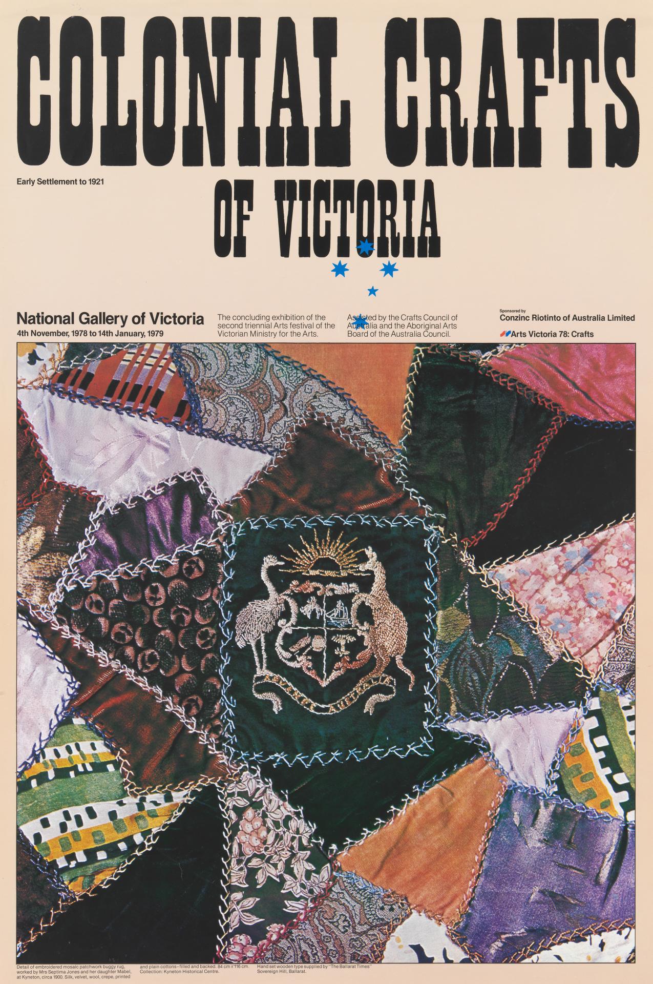The Colonial Crafts of Victoria Exhibition, sponsored by Conzinc Riotinto of Australia Ltd., opens on November 4 at the Temporary Exhibitions Hall of the National Gallery of Victoria. It runs until January 14, 1979. It includes the crafts of the Aborigines, gold diggers, pioneers and town and metropolitan craftsmen from early settlement to 1921. The works cover the broad areas of trade, domestic and recreational crafts. Many disappearing crafts such as coopering, blacksmithing and tinsmithing will be represented, giving a rare opportunity of seeing these vanishing skills.