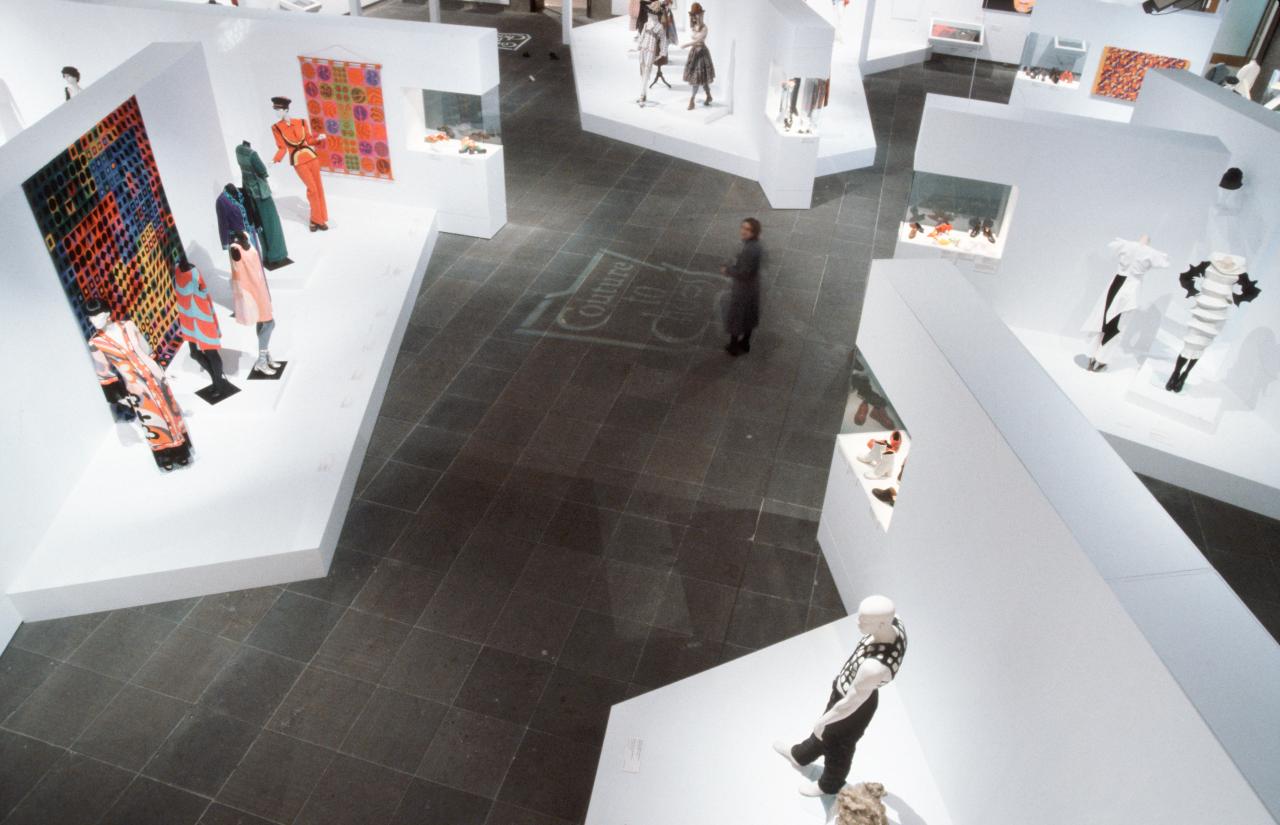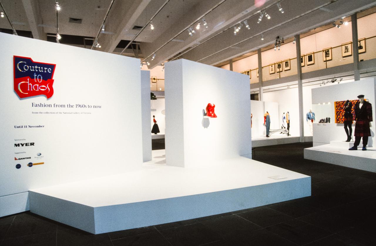 The nature of world fashion has changed radically since the 1960s. The exhibition Couture to chaos, drawn from the fashion collection of the National Gallery of Victoria, focuses on aspects of fashion design, and examines some of the new and stimulating directions that have occurred since 1960.
