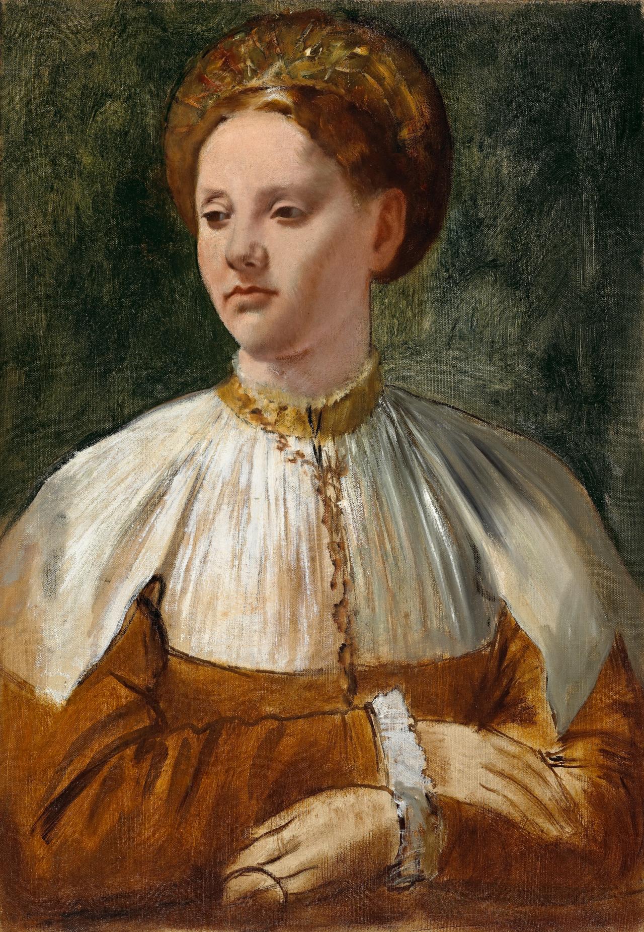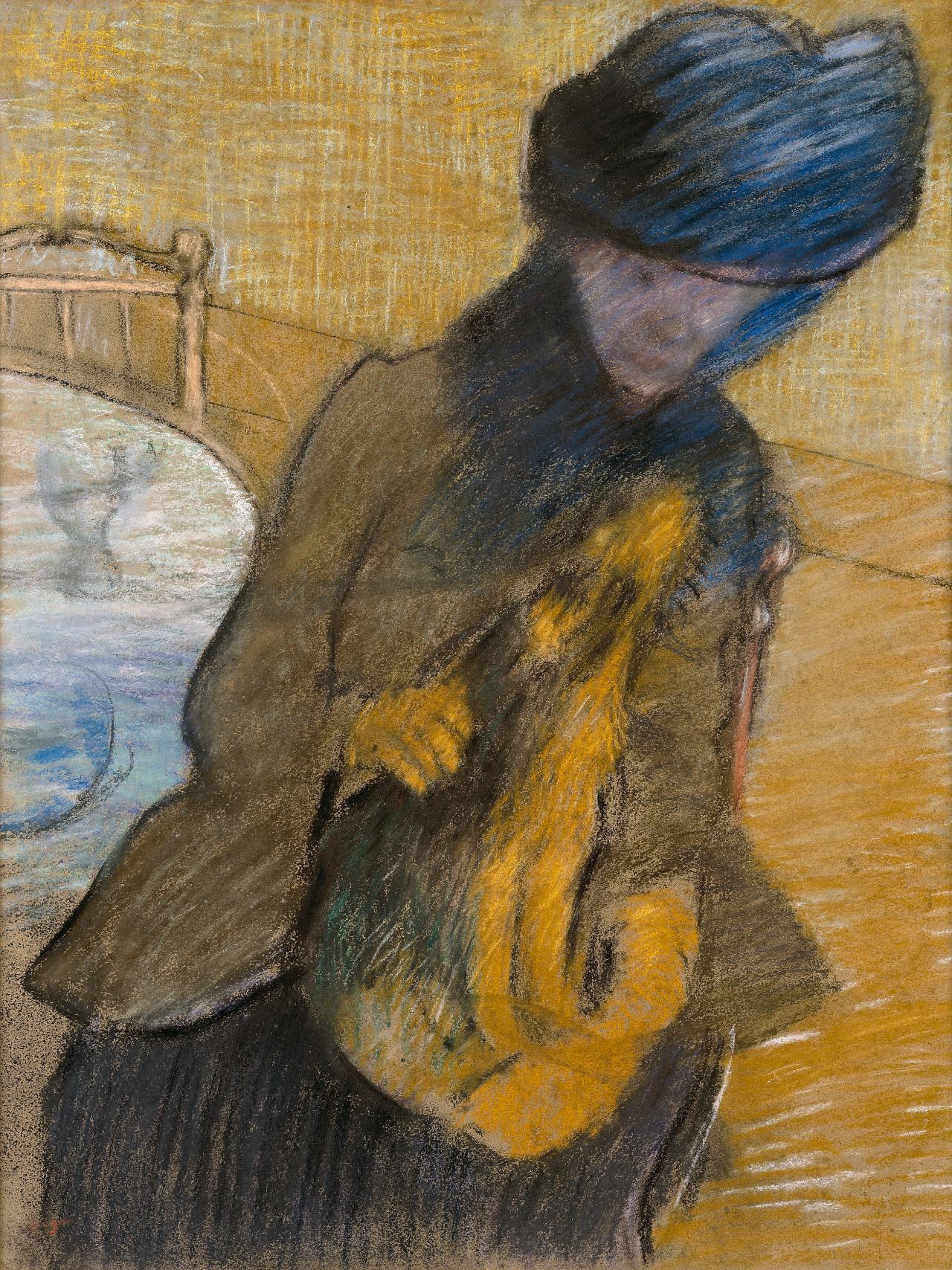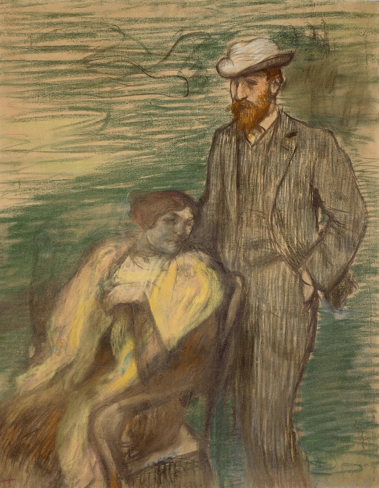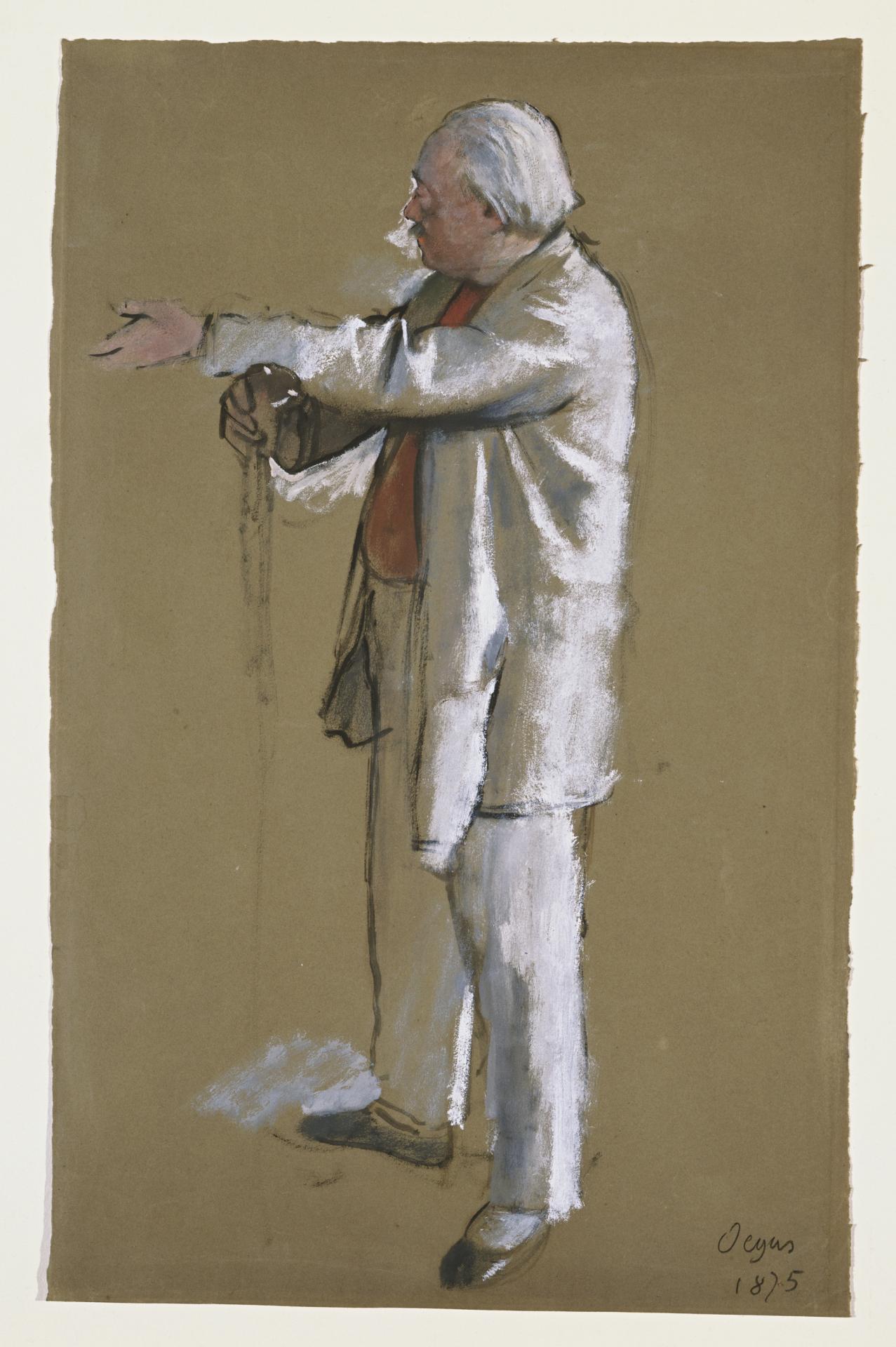 From his earliest days as an artist, Edgar Degas (1834–1917) experimented with a wide range of media. In the 1860s he sought to reconcile the teachings of both Jean-Auguste-Dominique Ingres and Eugène Delacroix to reinvent history painting and to illuminate, in the words of his art critic friend Edmond Duranty, ‘the fire of contemporary life’. Degas was preoccupied with subjects drawn from everyday life before these were taken up by Édouard Manet: horseracing, dance classes, laundry workers, the elegant night-life of the café-concert, and prostitution. He sought to add meaning to his portraits by placing his sitters in settings that indicated their professions and outlooks.