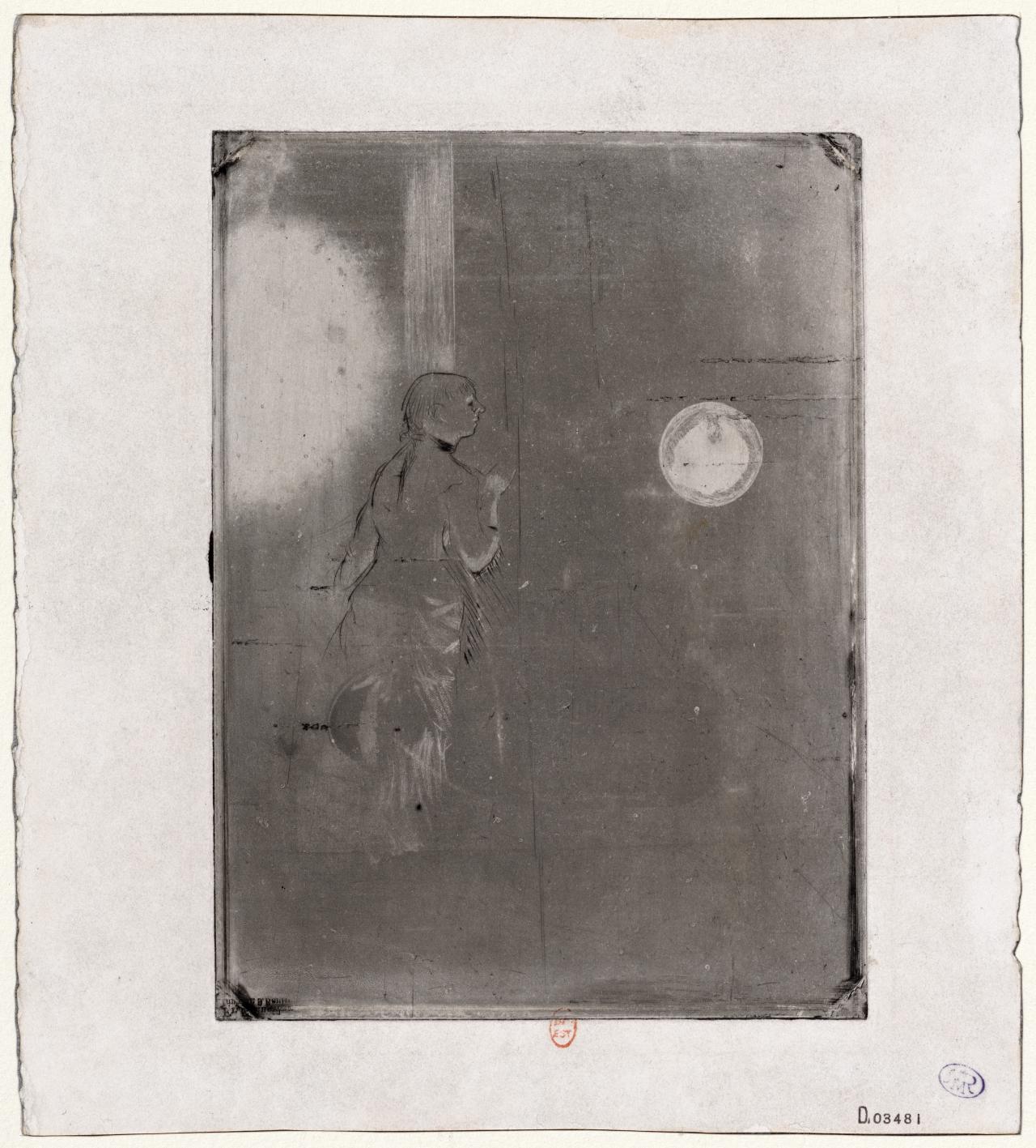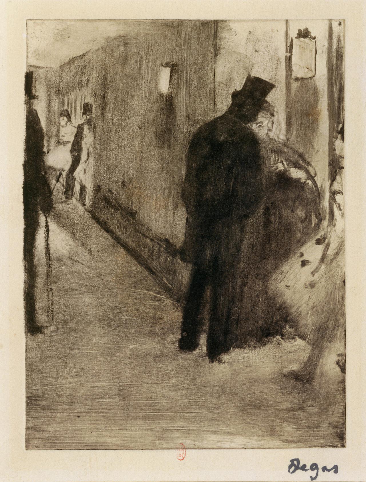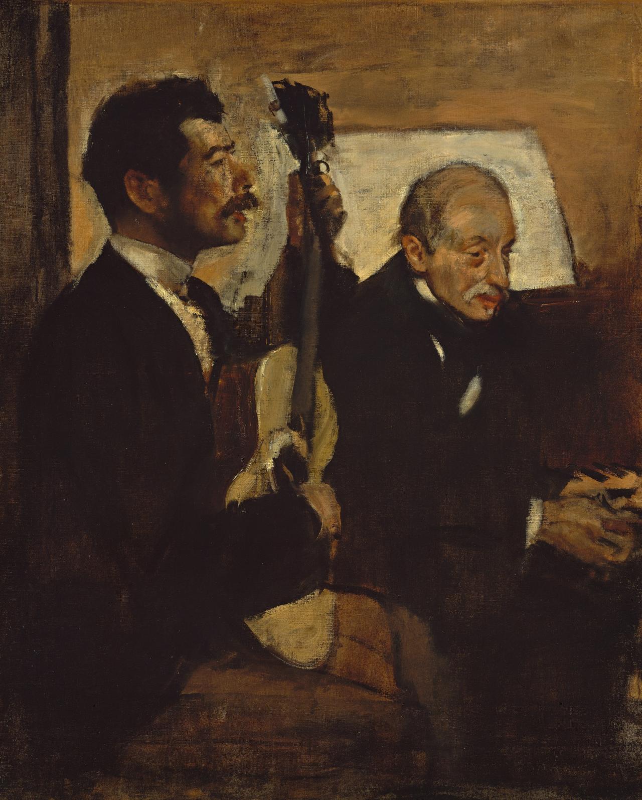 From his earliest days as an artist, Edgar Degas (1834–1917) experimented with a wide range of media. In the 1860s he sought to reconcile the teachings of both Jean-Auguste-Dominique Ingres and Eugène Delacroix to reinvent history painting and to illuminate, in the words of his art critic friend Edmond Duranty, ‘the fire of contemporary life’. Degas was preoccupied with subjects drawn from everyday life before these were taken up by Édouard Manet: horseracing, dance classes, laundry workers, the elegant night-life of the café-concert, and prostitution. He sought to add meaning to his portraits by placing his sitters in settings that indicated their professions and outlooks.