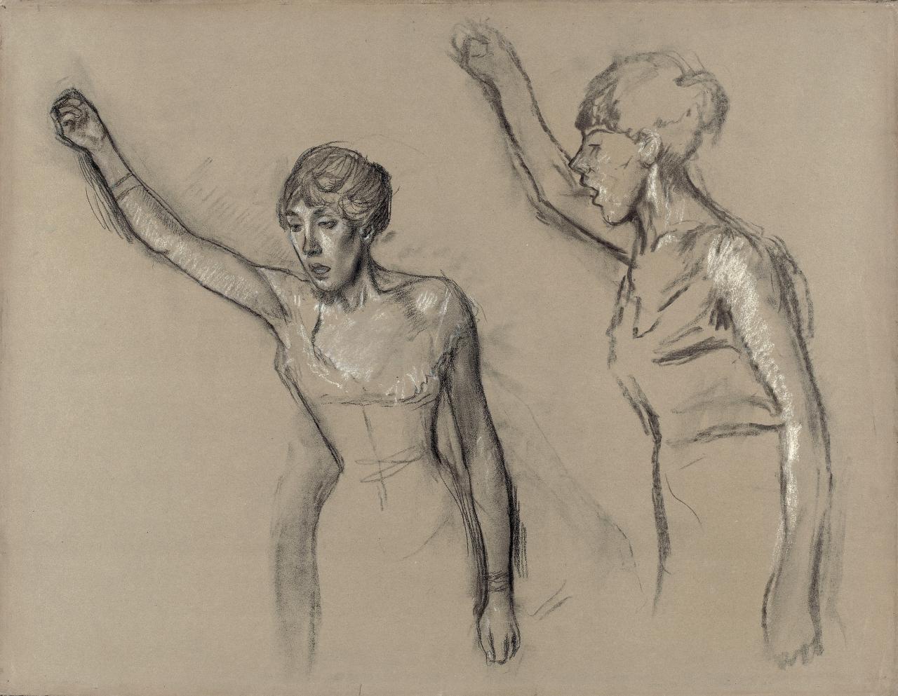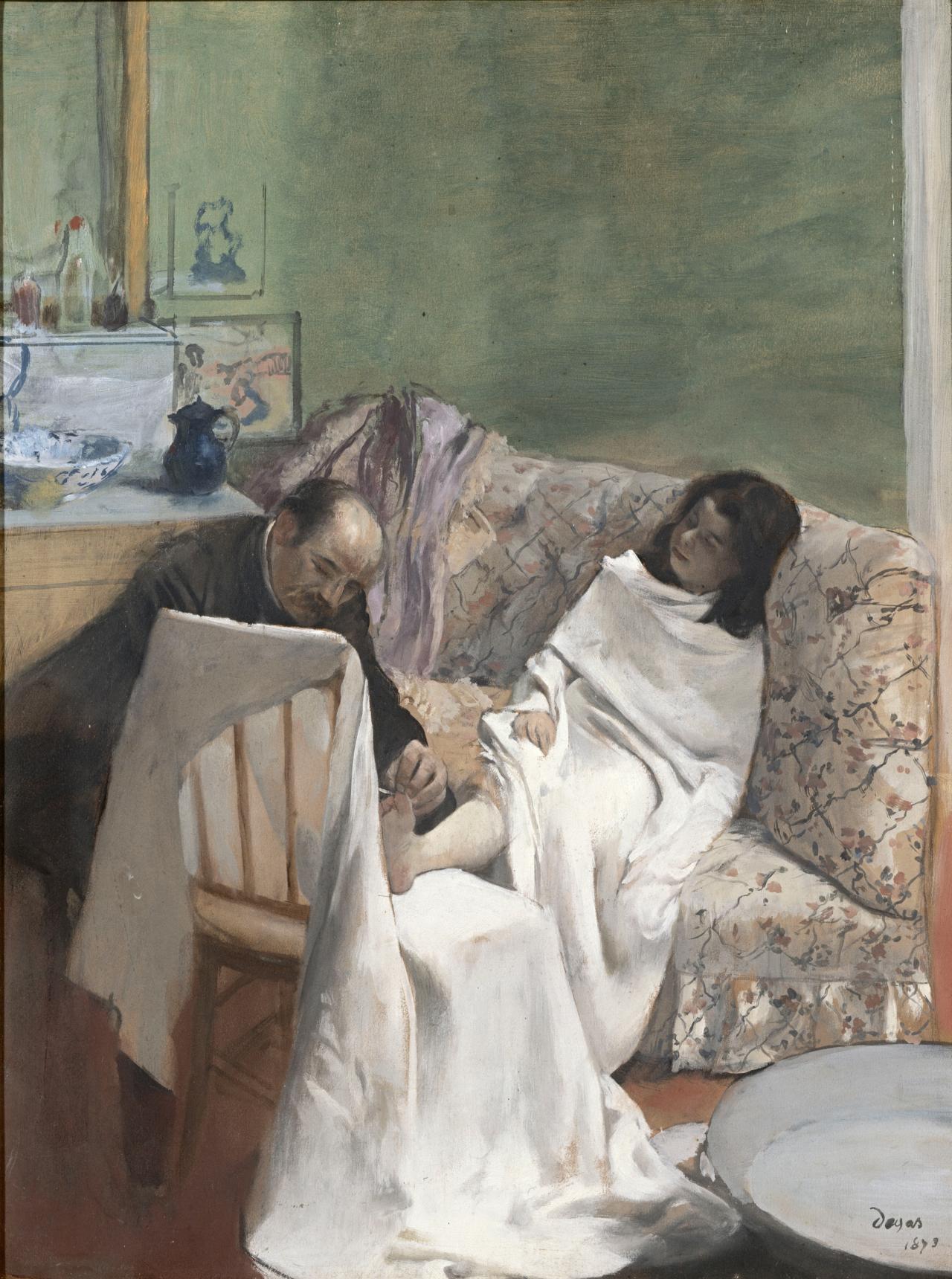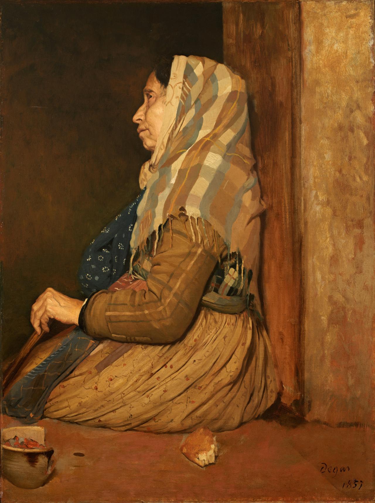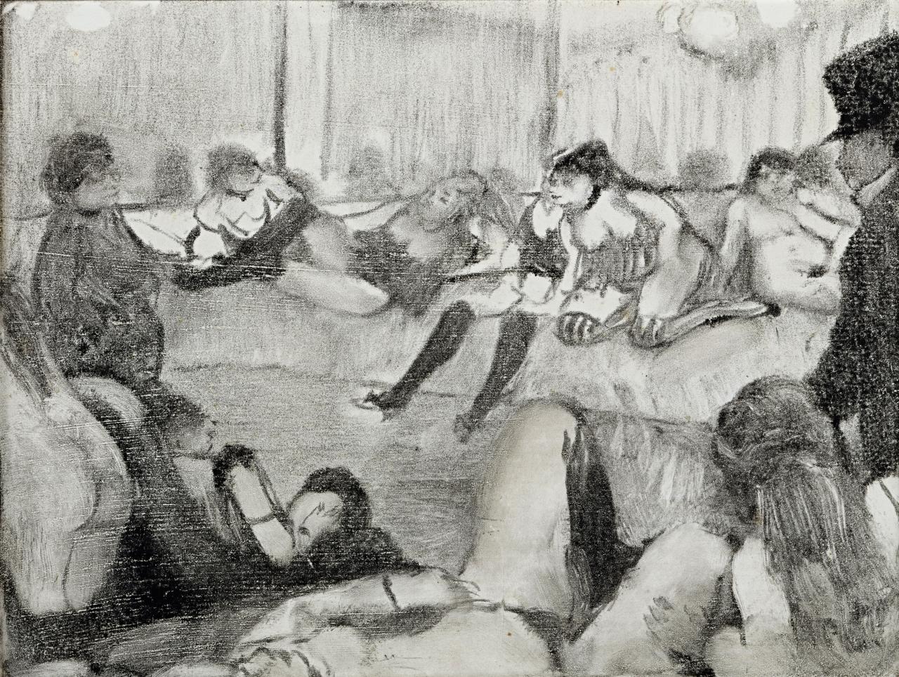 From his earliest days as an artist, Edgar Degas (1834–1917) experimented with a wide range of media. In the 1860s he sought to reconcile the teachings of both Jean-Auguste-Dominique Ingres and Eugène Delacroix to reinvent history painting and to illuminate, in the words of his art critic friend Edmond Duranty, ‘the fire of contemporary life’. Degas was preoccupied with subjects drawn from everyday life before these were taken up by Édouard Manet: horseracing, dance classes, laundry workers, the elegant night-life of the café-concert, and prostitution. He sought to add meaning to his portraits by placing his sitters in settings that indicated their professions and outlooks.