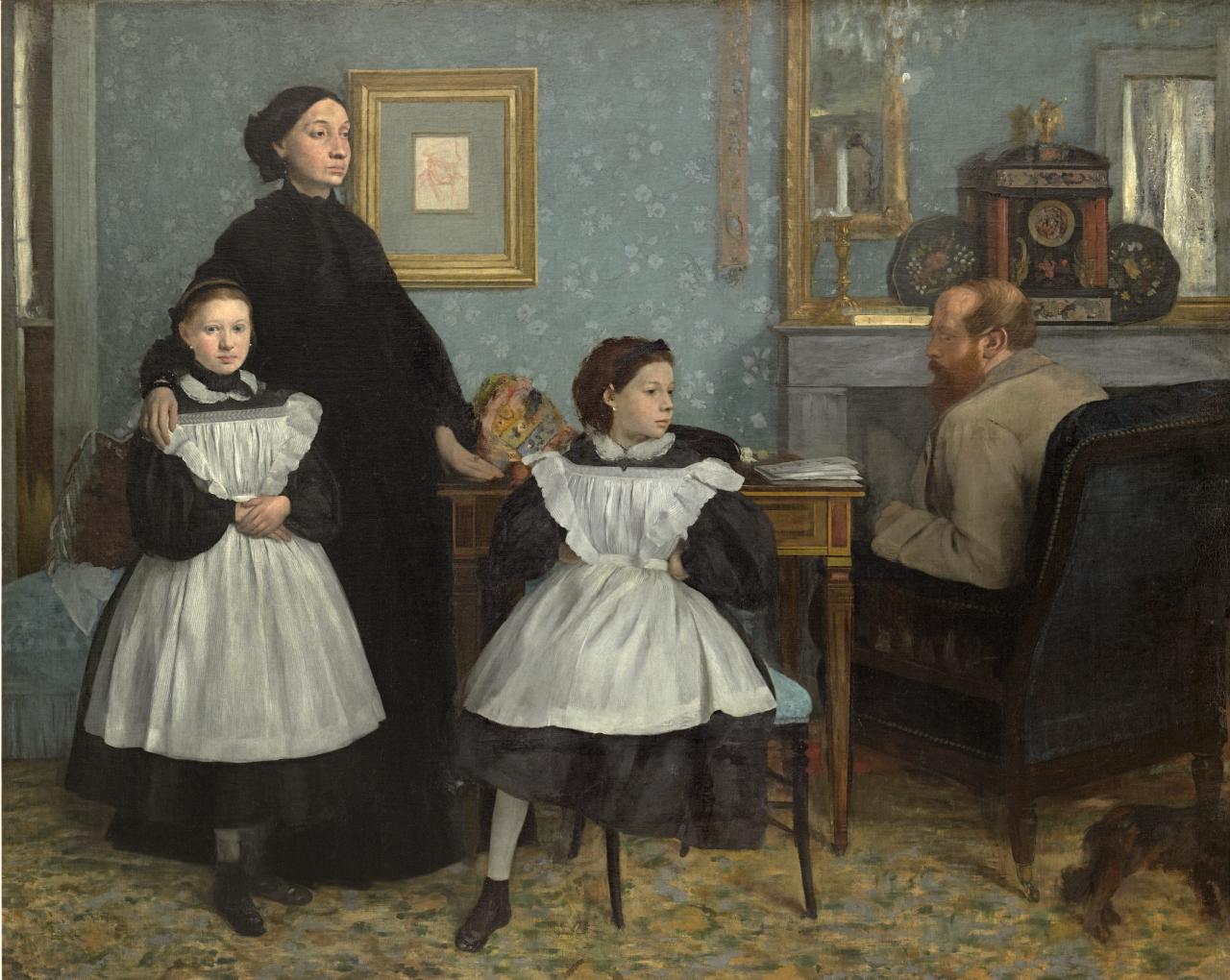 Hilaire-Germain-Edgar Degas belonged to an extended family that had branches in Italy and the United States, as well as France. His French-Italian father, Auguste, and Creole-American mother, Célestine, married in Paris in 1832 and Edgar was born two years later. Degas’s father was a keen musician, as well as a collector of eighteenth-century French art, who maintained friendships with a number of serious art collectors; consequently the young Degas, who spoke both French and Italian fluently, was raised in an atmosphere of cultural and intellectual aspiration. In 1847 Célestine died at the age of thirty-two, when Edgar was thirteen years old. The eldest child, he had two younger brothers, Achille and René, and two younger sisters, Thérèse and Marguerite.