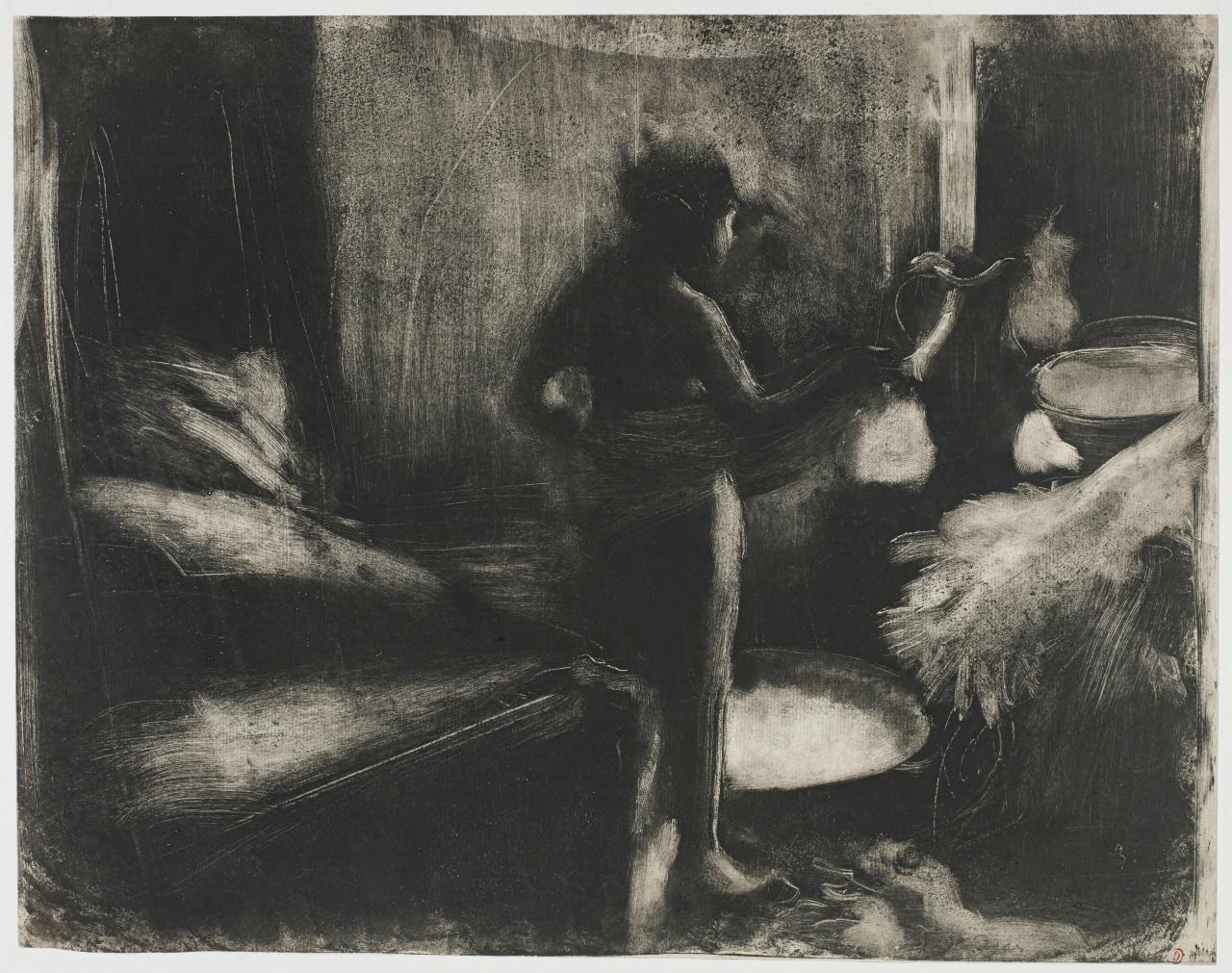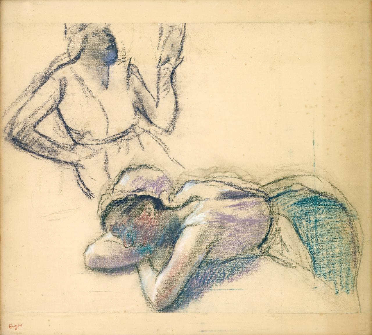 At the start of the 1860s Degas was still focused on creating elaborate and striking compositions destined for display at the Paris Salon in order to promote his career. However, his output soon became more open, fluid and continuous, a series of inexhaustible variations upon a single theme or gesture of the body. He did not find new horizons in exotic foreign travel, but rather through an ever deeper exploration of a few chosen motifs. His continual dissatisfaction or, as he put it, ‘a proper idea, not of what you are doing now but of what you may do one day’, drove him ceaselessly onwards. He measured his own progress in terms of new formats, technical innovation and experimentation, simplification of form and the rejection – indeed the impossibility – of what he called ‘exercises in precision’.
