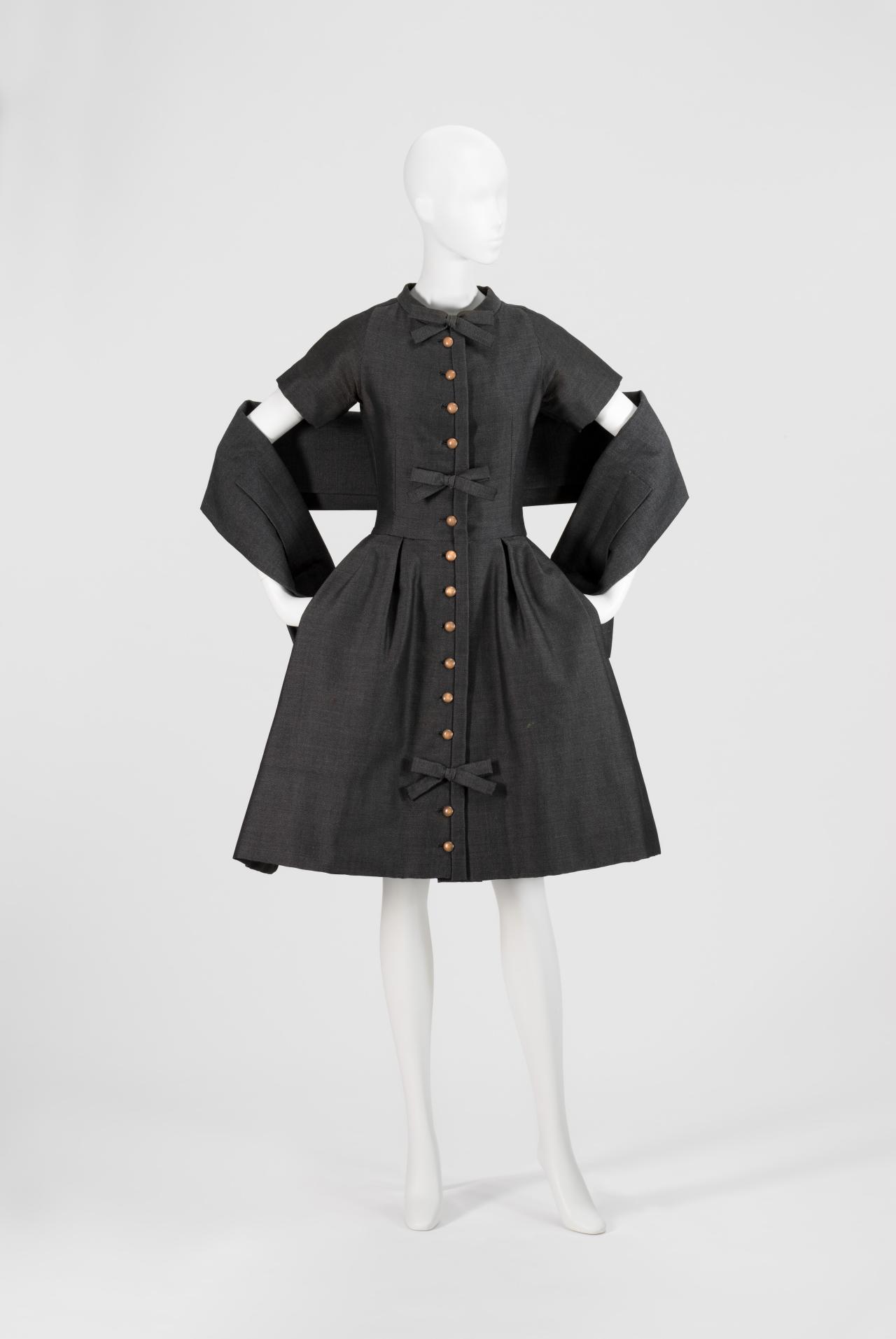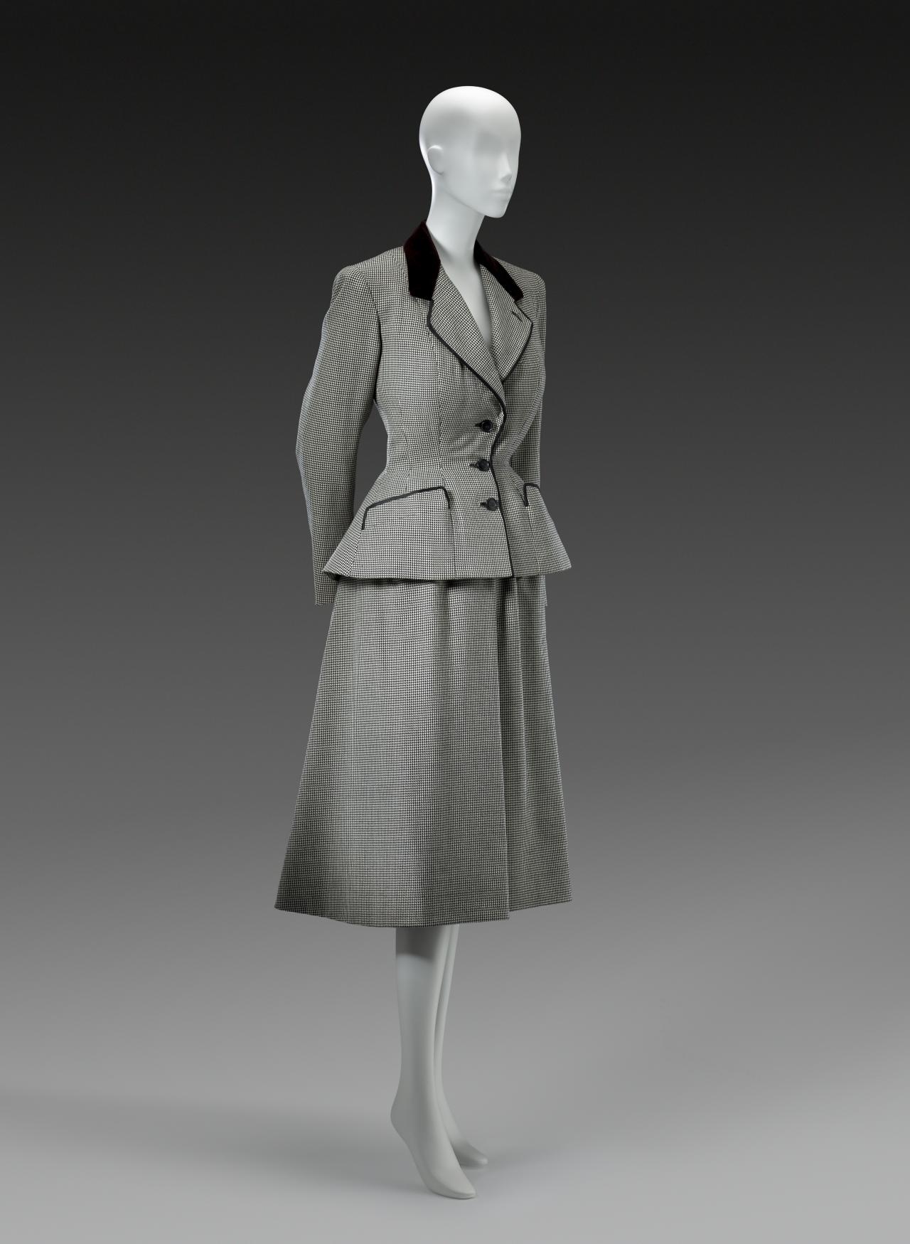 Founding his couture house in December 1946 at the age of forty-one, Dior presented his debut collection in February 1947. This collection revitalised an ailing postwar French fashion industry. Dubbed the ‘New Look’ by fashion journalist Carmel Snow, Dior’s silhouette – characterised by rounded shoulders, exaggerated padded hips and full skirts – transformed how women dressed, reasserting femininity, restored a sense of luxury and remains one of the most recognisable styles in fashion history.
