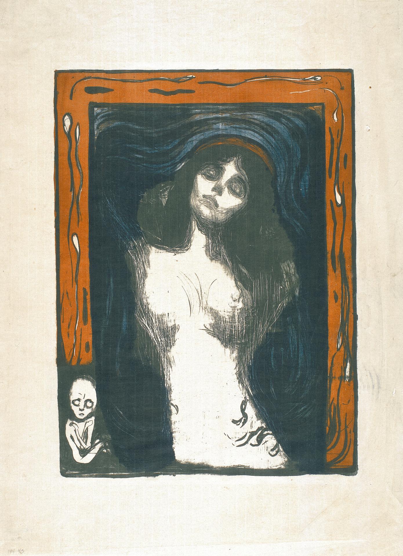 Munch’s imagery was always centred on the human condition. The emotional, and the psychological aspects of death, despair, genius, anxiety, loneliness, love and desire were his subjects. It was in capturing within the visual image these highly charged emotional states that Munch’s controversial reputation arose.