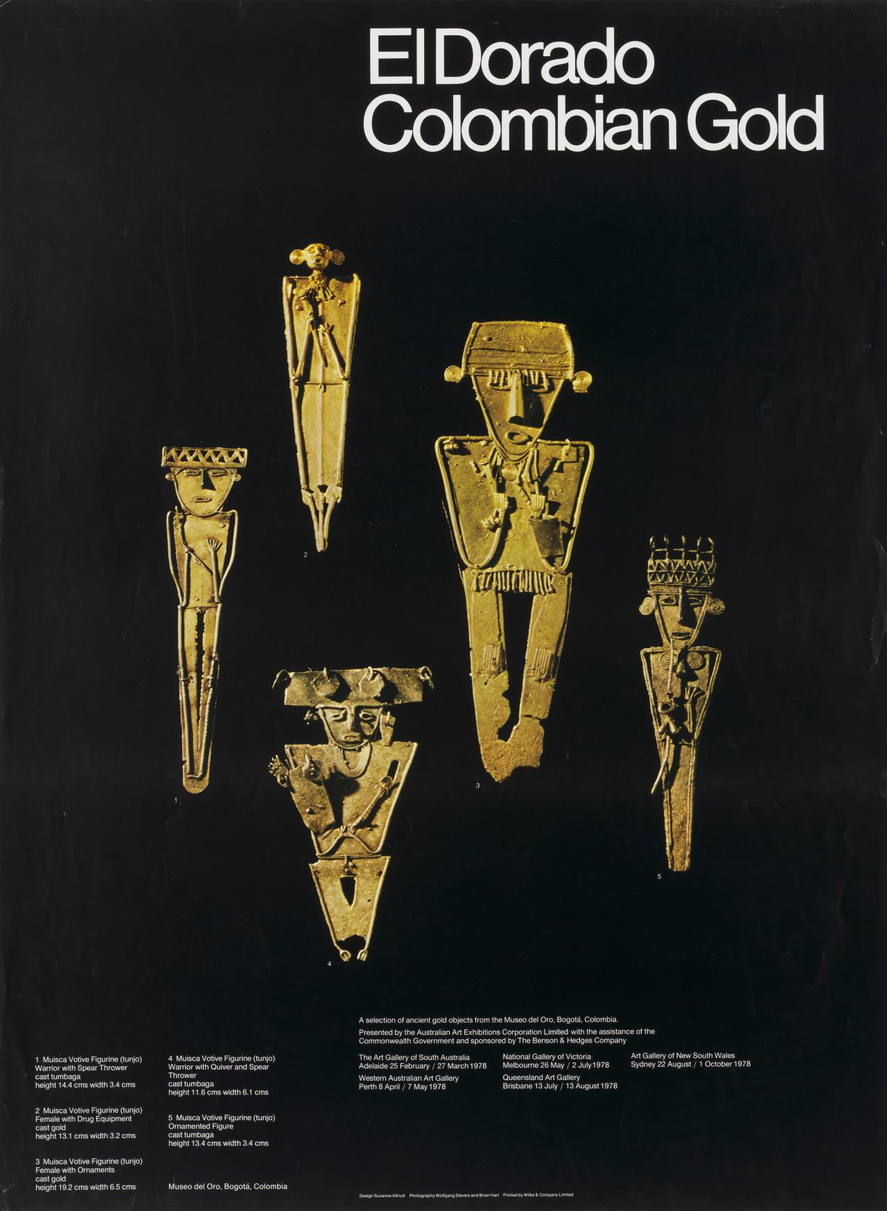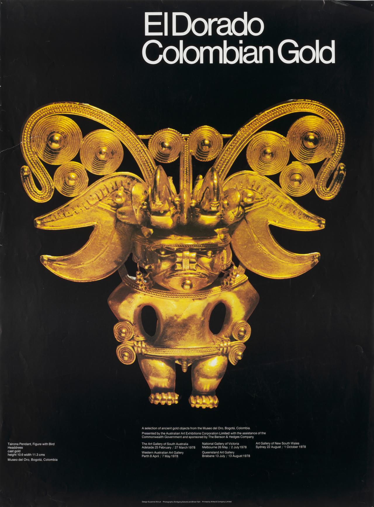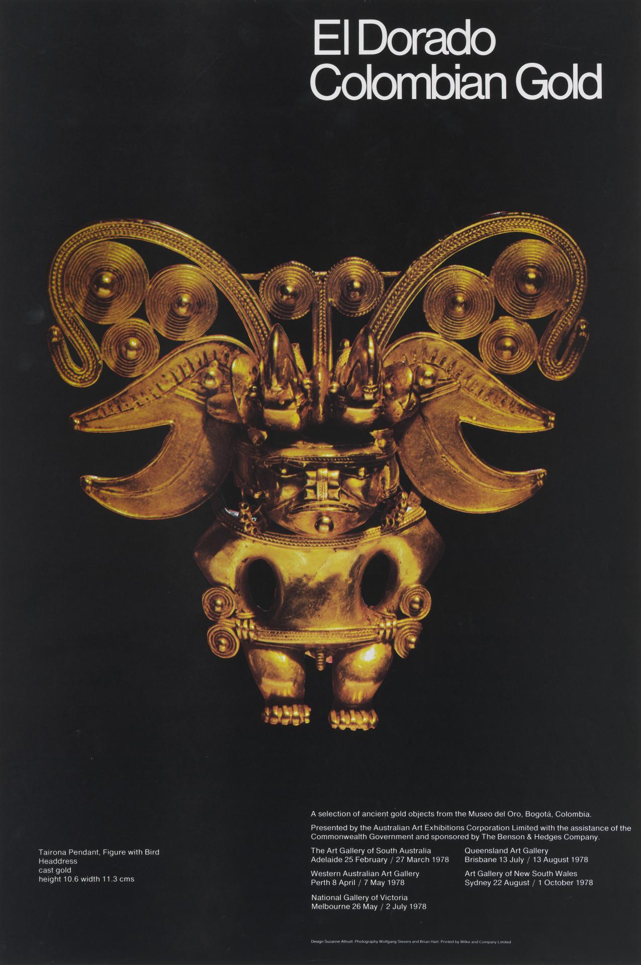 Sponsored by the Benson and Hedges Company and assisted by the Commonwealth Government, the exhibition … depicts aspects of the sixteenth century European explorers’ search for gold in the New World – for the land of the legendary El Dorado, king of a golden realm.