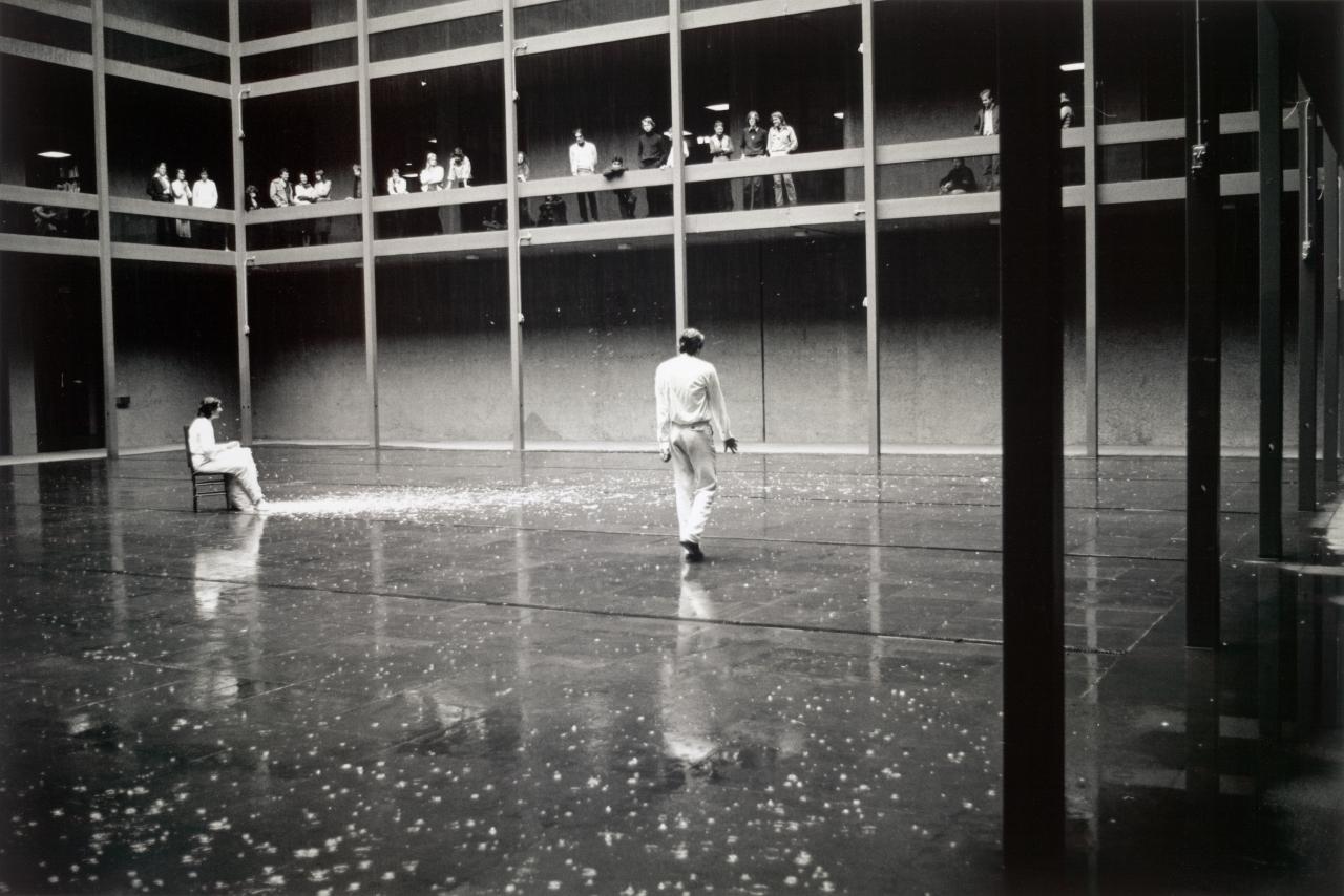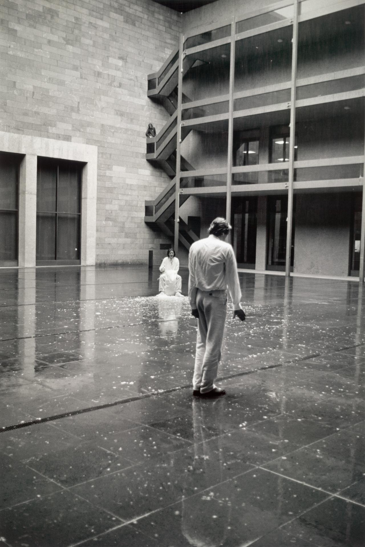 For Abramovic and Ulay, it was the performance art power couple’s first visit to Australia – they returned the following year and spent six months living in the Central Australian desert on Pitjantjatjara land. For the exhibition, they performed Go . . . Stop . . . Back . . . Stop, 1979, in which Ulay moved about the NGV foyer in response to random commands from his own voice recorded on tape while Abramovic sat in the middle of the space pulling feathers from a pillow and counting each one.